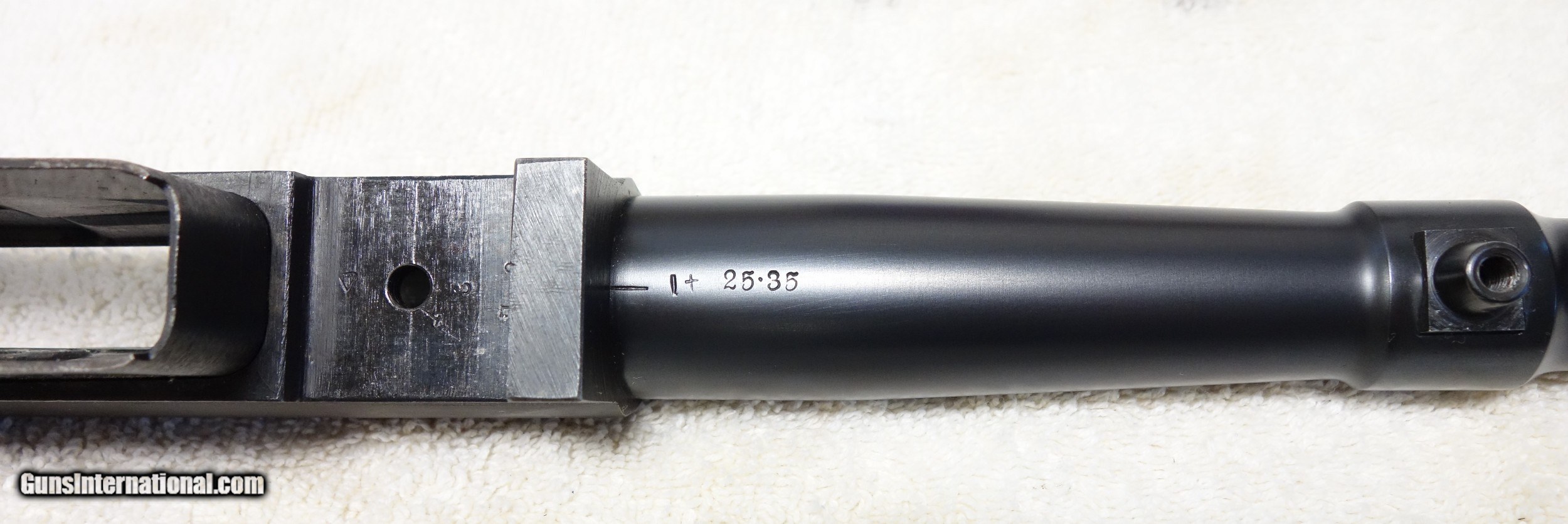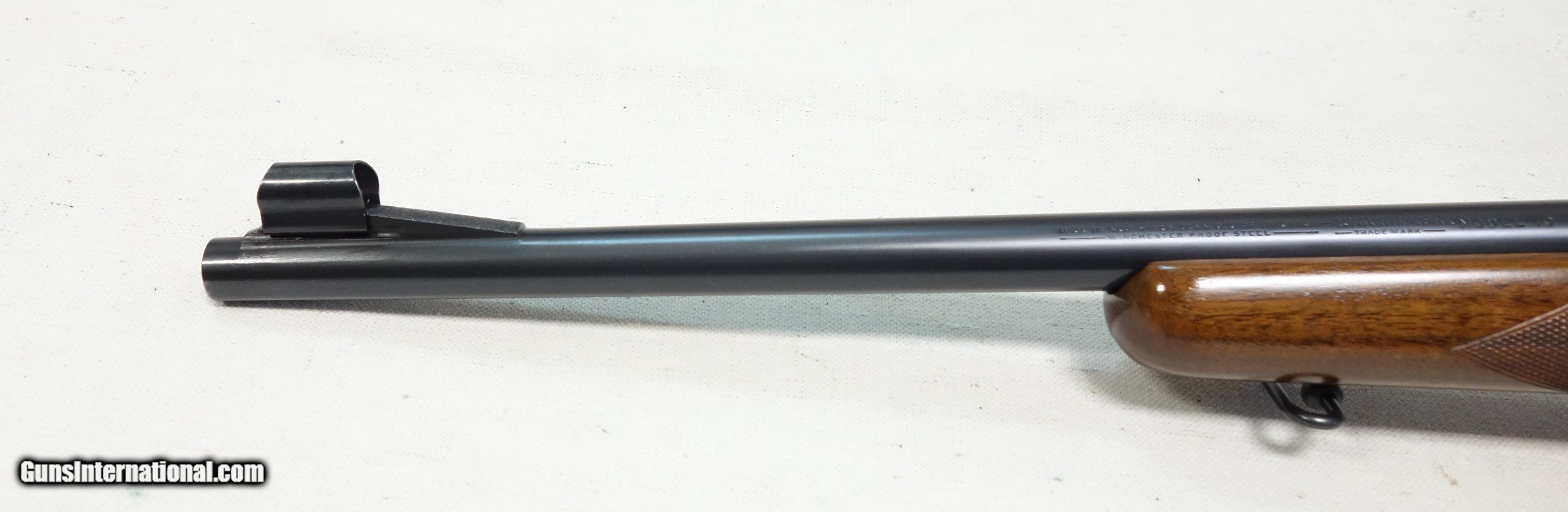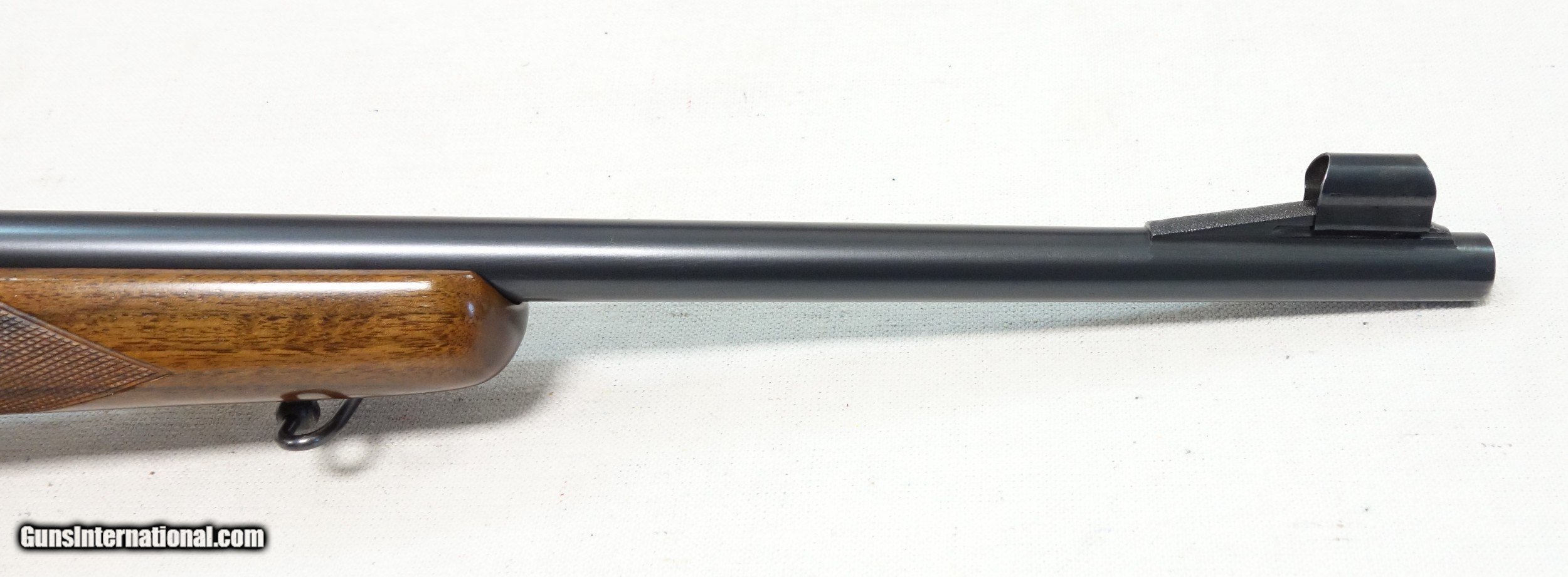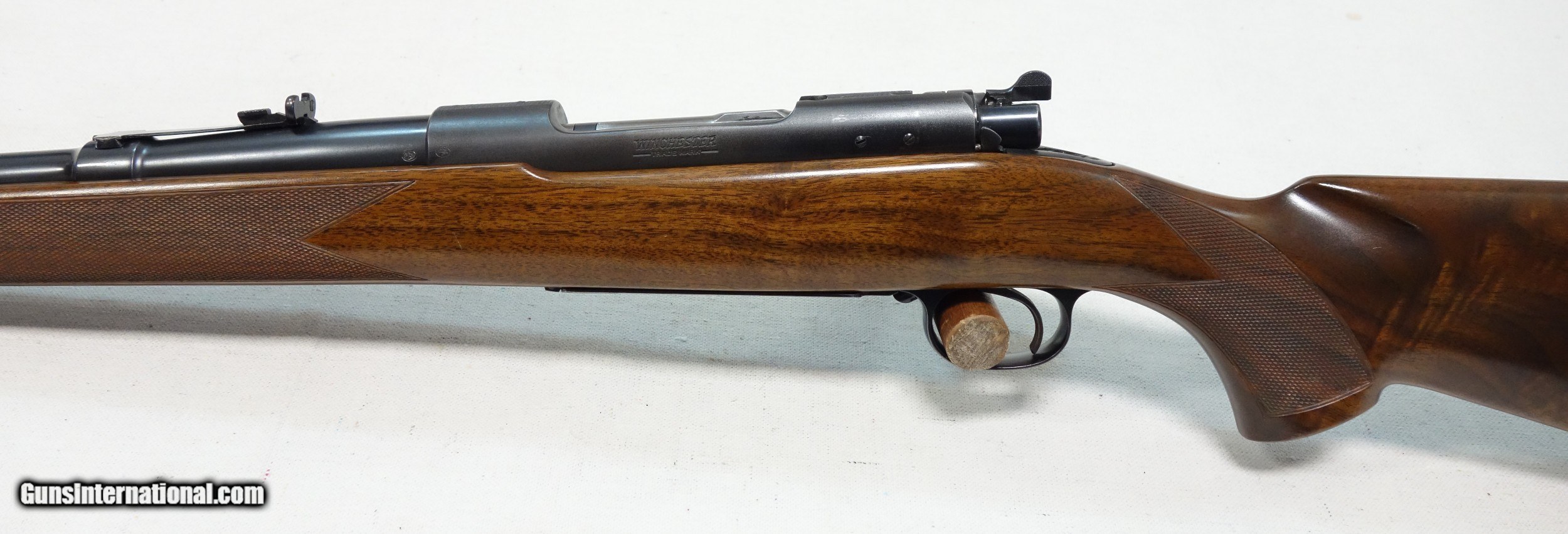Description: ***SOLD*** Quite possibly one of the rarest and most beautiful Model 70s you will ever lay eyes on. Class 4 Special Order non standard chambering CARBINE in 25-35 W.C.F. As if that were not enough, it has a breathtaking piece of factory wood which has flame grain showing throughout the buttstock. This is not a restock, so was presumably also special ordered. S/N 60*** with matching scribed bolt made in 1947, but of 100% Pre War components including clover leaf shaped receiver tang, matted and UNDRILLED rear receiver, rust bluing, etc. The chamber breech is FLAT to accommodate this rimmed cartridge. 20" carbine barrel has minty bore, perfect: stampings, ramp transitions, stippling, crown etc. Overall condition is better than 99%. This incredible firearm is surely destined to be the centerpiece of even the most advanced M70 carbine collection. Shipping from Alaska is $75 via Priority Mail with full insurance in a custom cut foam lined box for maximum protection. I have a few other ultra rare caliber 70s from this magnificent collection, please inquire. SOLD Curio/Relic: Yes |