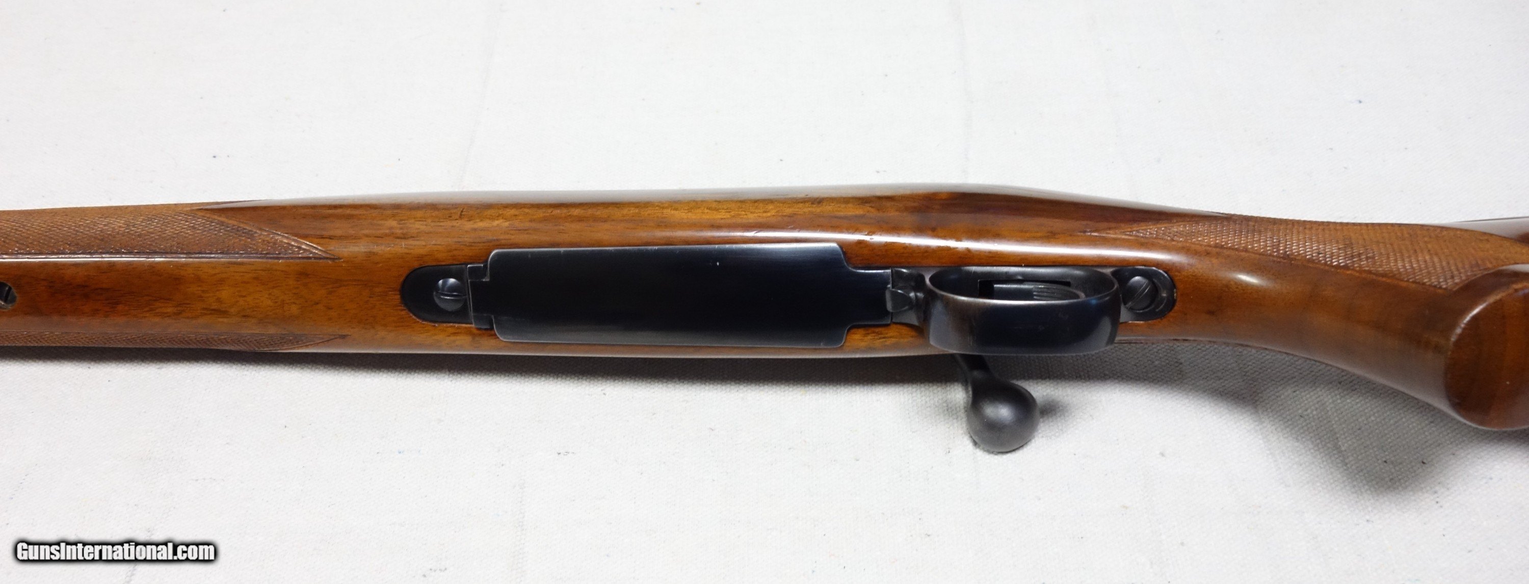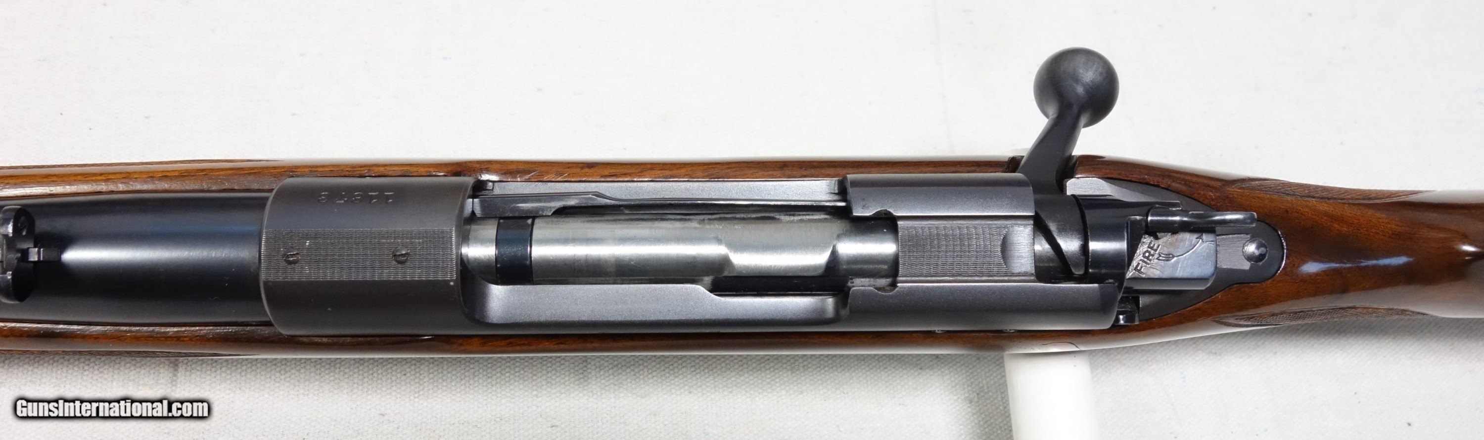 Description: A beautiful early Pre War 70 in very scarce 22 Hornet caliber. S/N 11*** with matching scribed bolt made in early 1938. The wood is remarkable with the brightness, tight grain, tone and streaking typically seen only on these first generation rifles. There are some scattered light scratches and swirls that do not all show in the pics, but a really remarkable 96%+ condition, considering its 85 years of circulation. The bluing is excellent throughout showing at least 97%. Perfect undrilled rear receiver bridge. The mechanical functions are like new, crisp and butter smooth as usual. The bore is excellent and the chamber has never been reamed to K. Expedited and fully insured shipping from Alaska to your FFL is an additional $100. SOLD Curio/Relic: Yes |