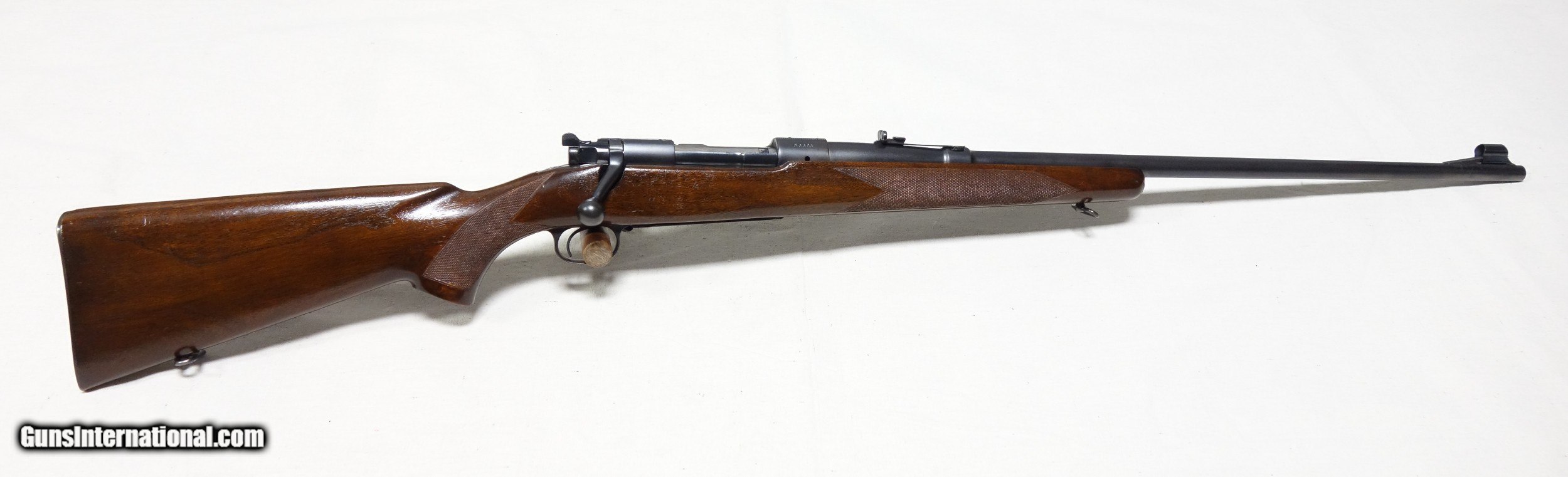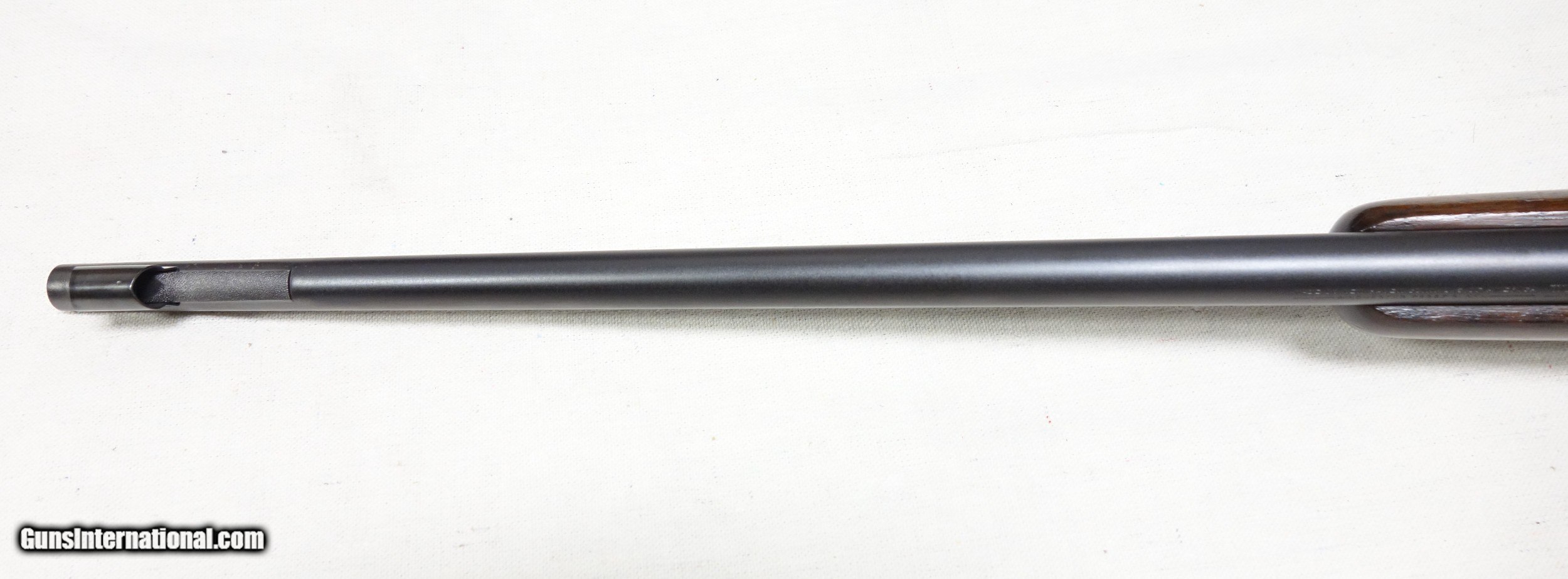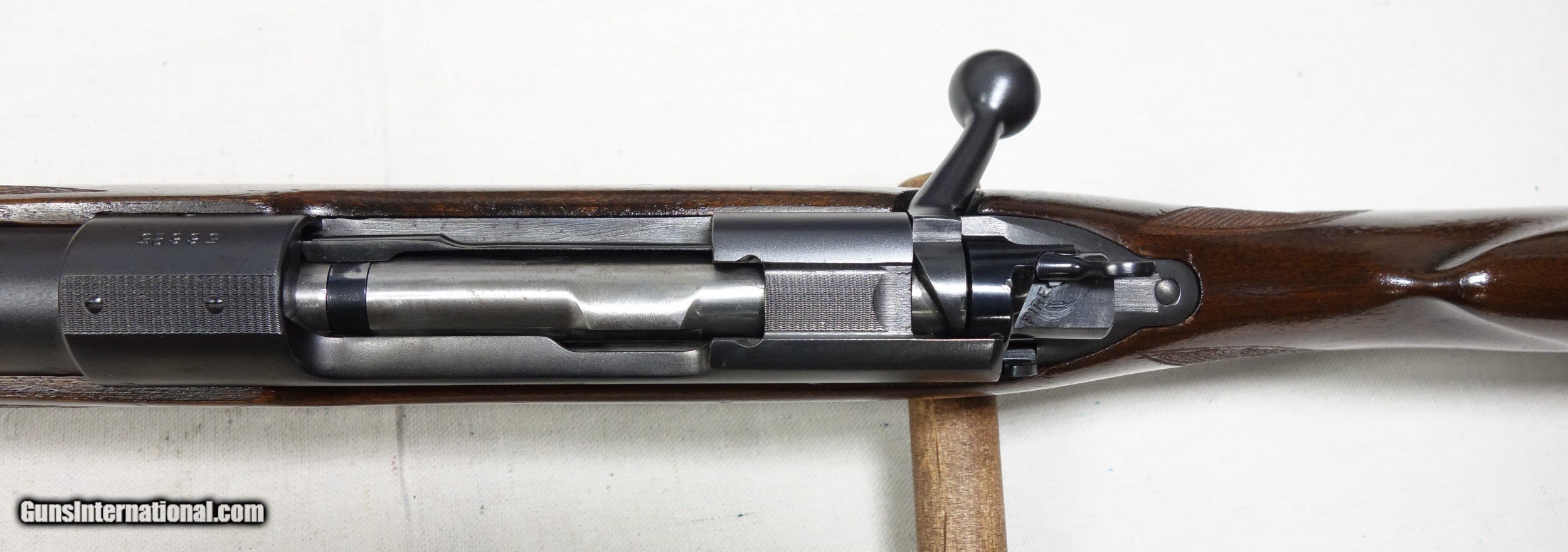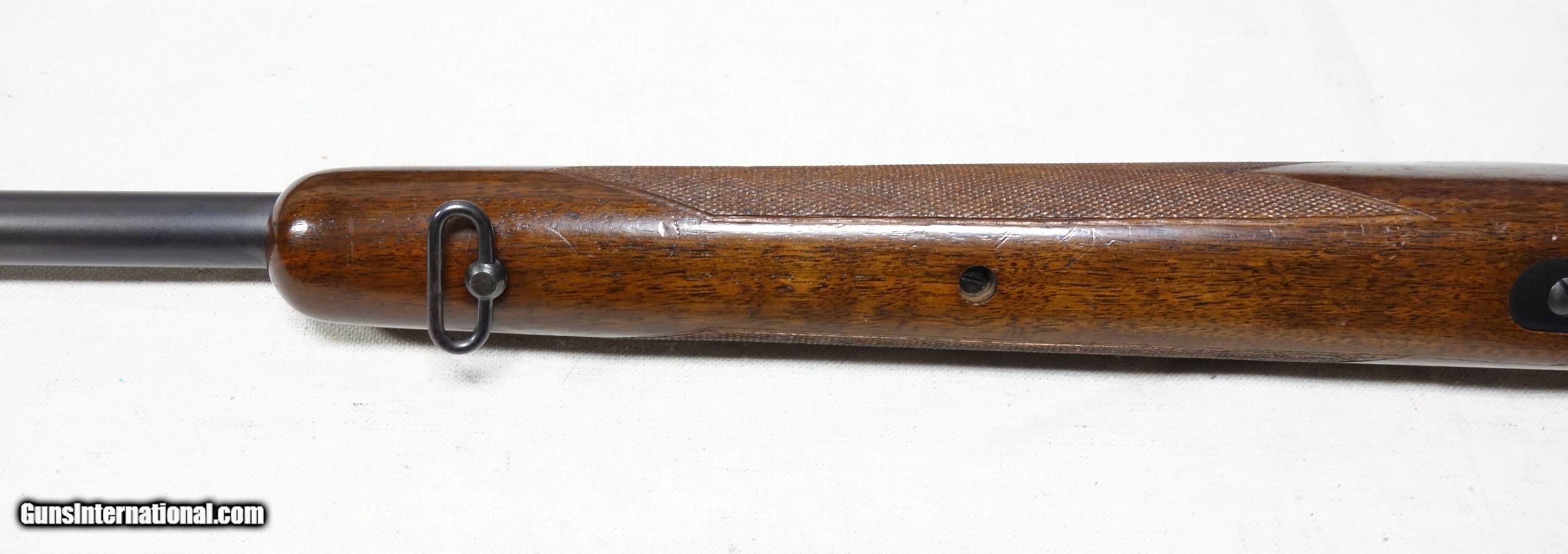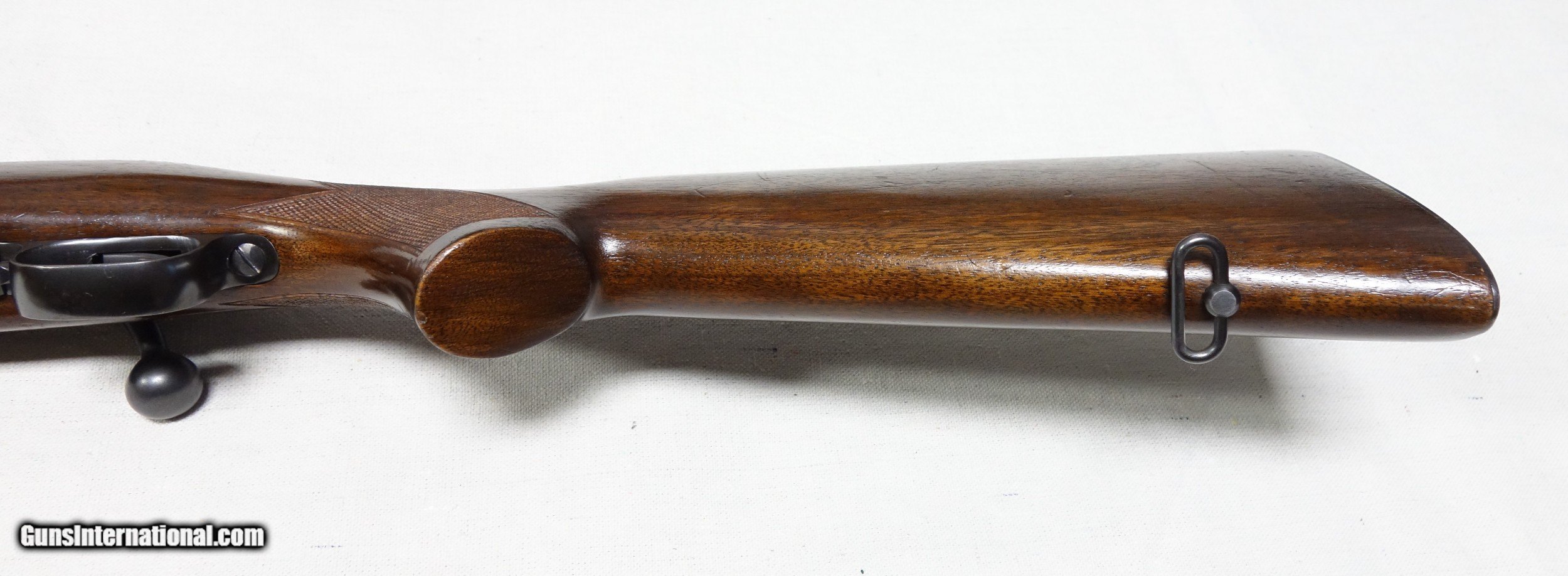 Description: Beautiful Pre War 70 in scarce 220 Swift caliber with an UNDRILLED rear receiver bridge! S/N 56*** with matching scribed bolt produced in 1946 of 100% Pre War components. 26" stainless steel barrel with excellent bore and throat. Mechanics are flawless. Condition is great considering its 75 years of circulation showing better than 95% original Blue and Varnish with only light handling throughout, but no mars or cracks anywhere. Insides are spotless and practically like new. Undrilled Pre Wars have become nearly impossible to find, and particularly so in this desirable 220 Swift caliber. SOLD Curio/Relic: Yes |