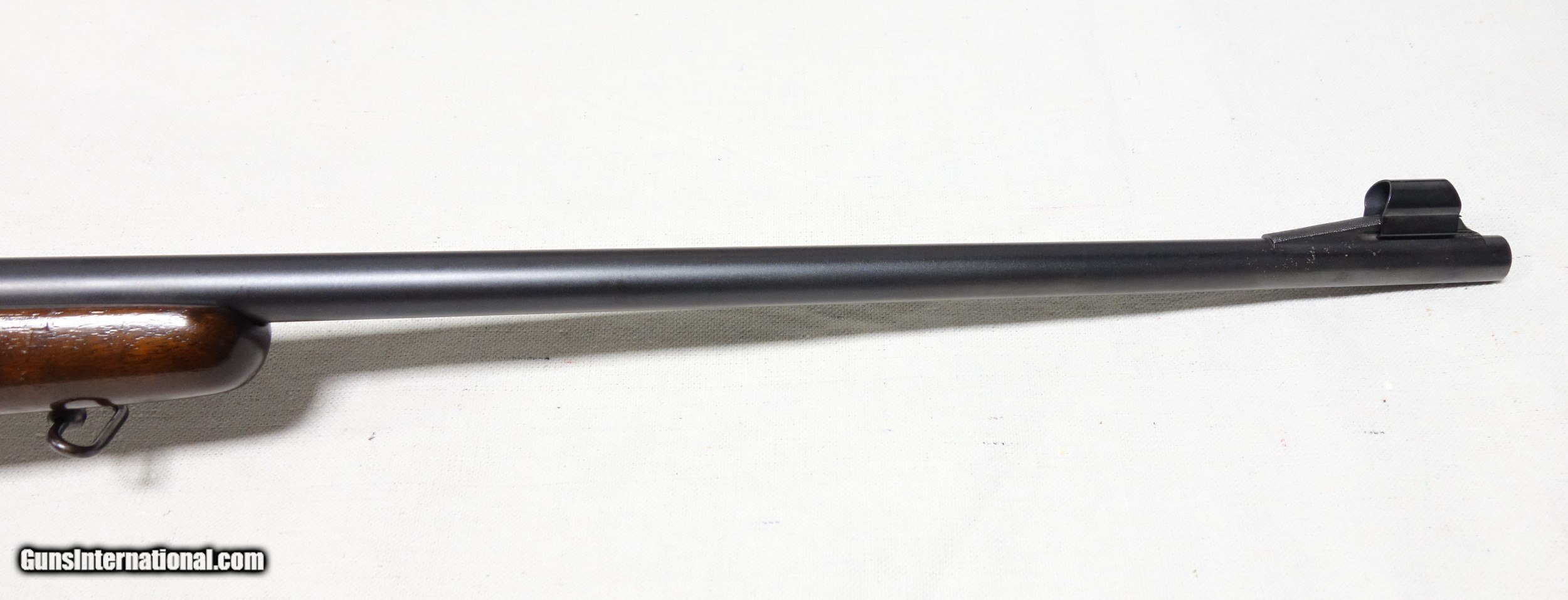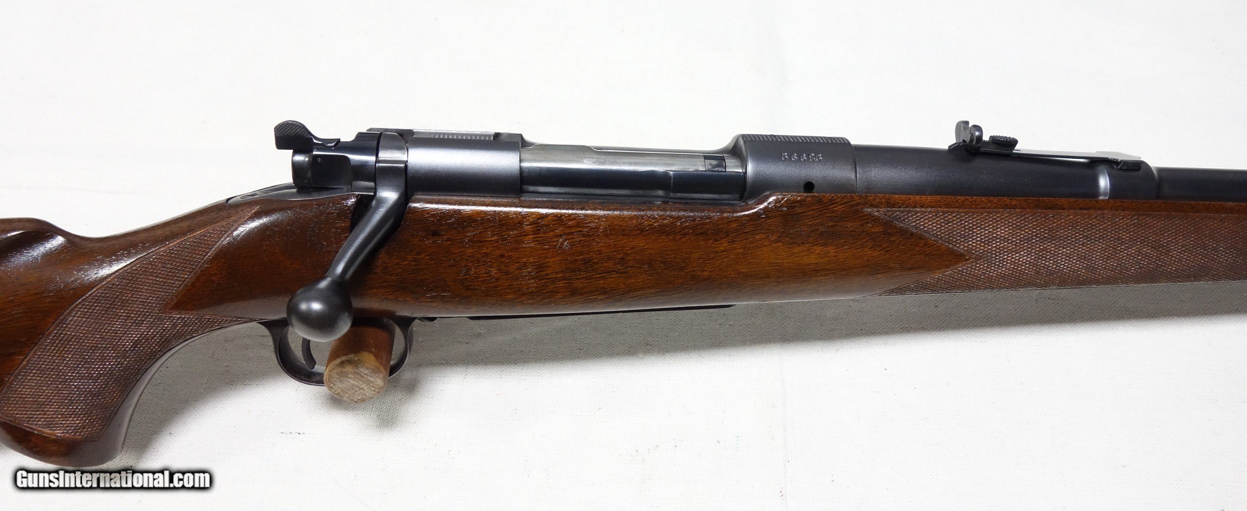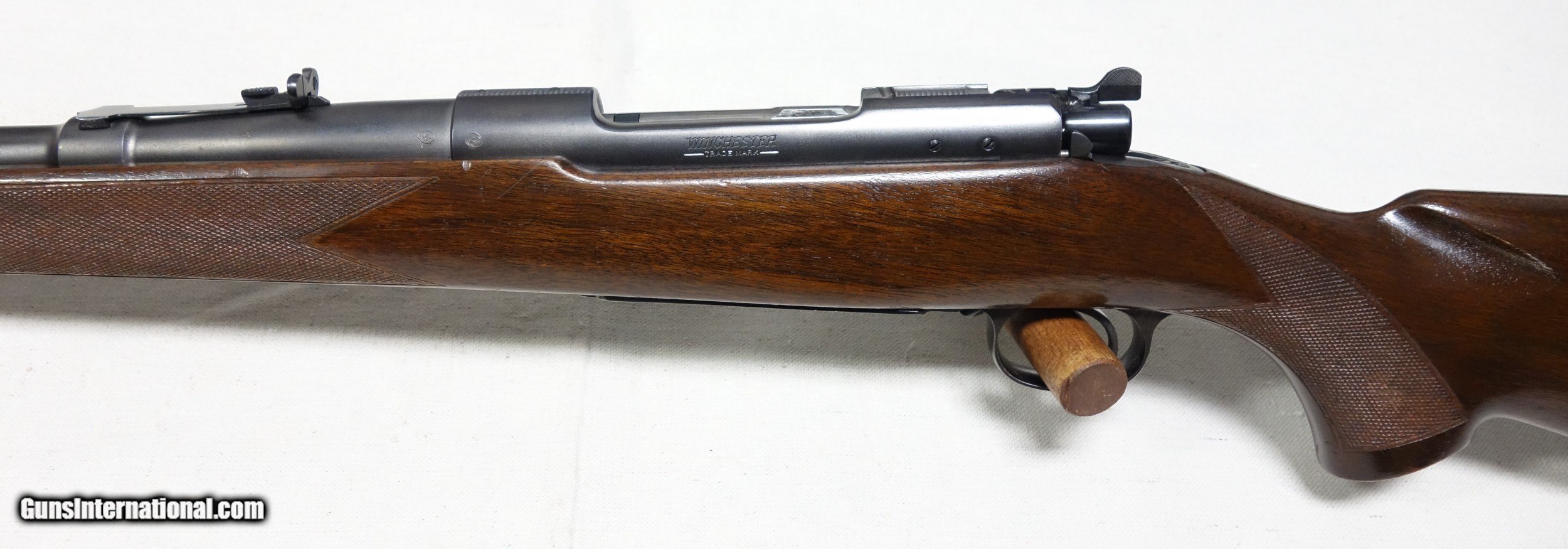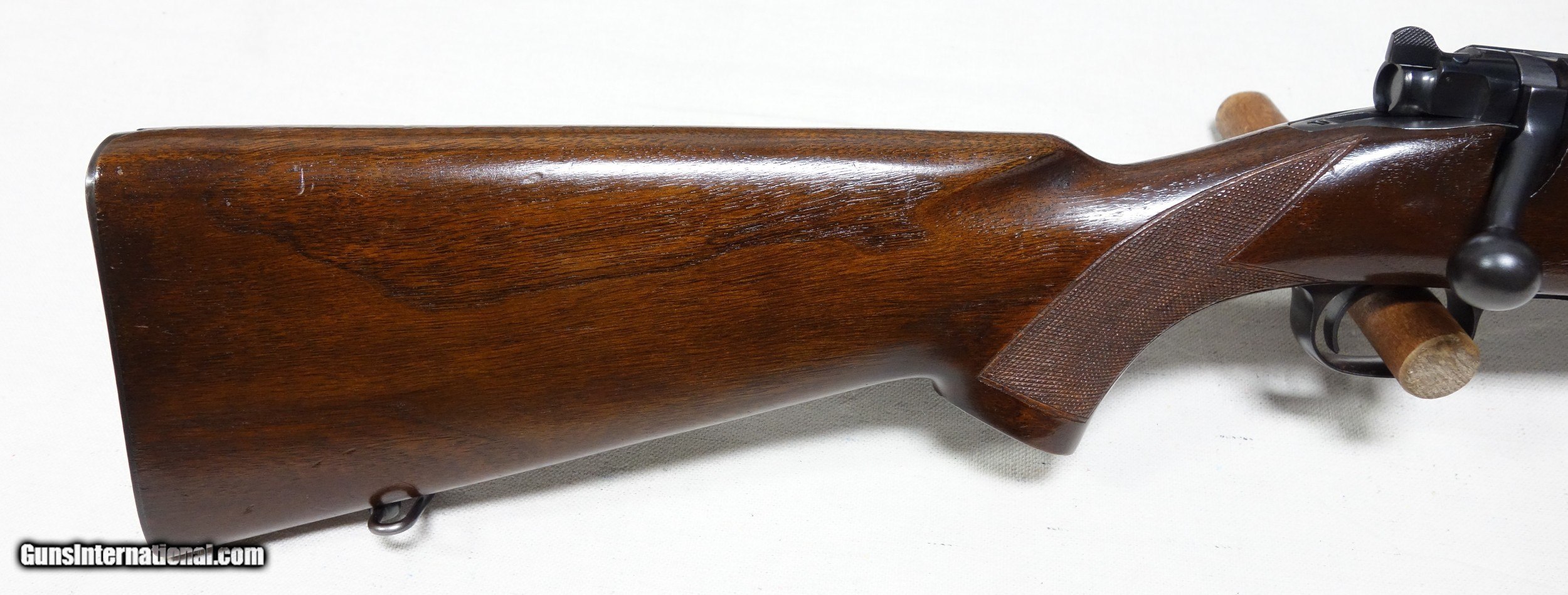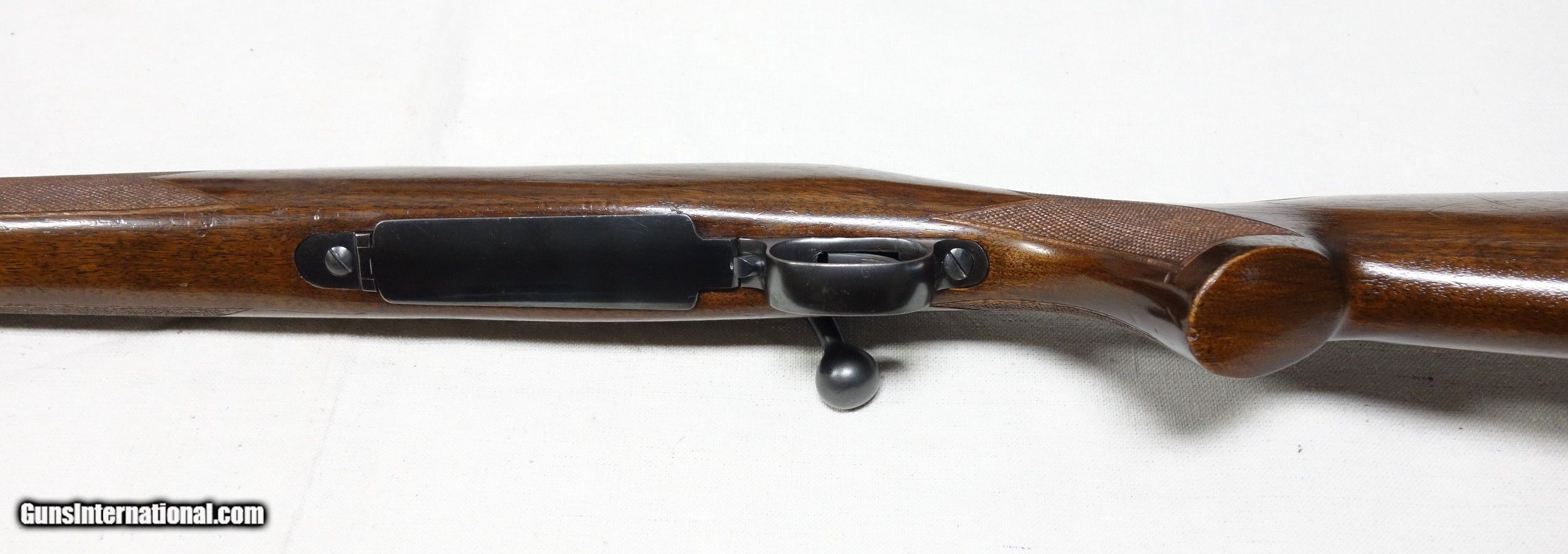 Description: Beautiful Pre War 70 in scarce 220 Swift caliber with an UNDRILLED rear receiver bridge! S/N 56*** with matching scribed bolt produced in 1946 of 100% Pre War components. 26" stainless steel barrel with excellent bore and throat. Mechanics are flawless. Condition is great considering its 75 years of circulation showing better than 95% original Blue and Varnish with only light handling throughout, but no mars or cracks anywhere. Insides are spotless and practically like new. Undrilled Pre Wars have become nearly impossible to find, and particularly so in this desirable 220 Swift caliber. SOLD Curio/Relic: Yes |