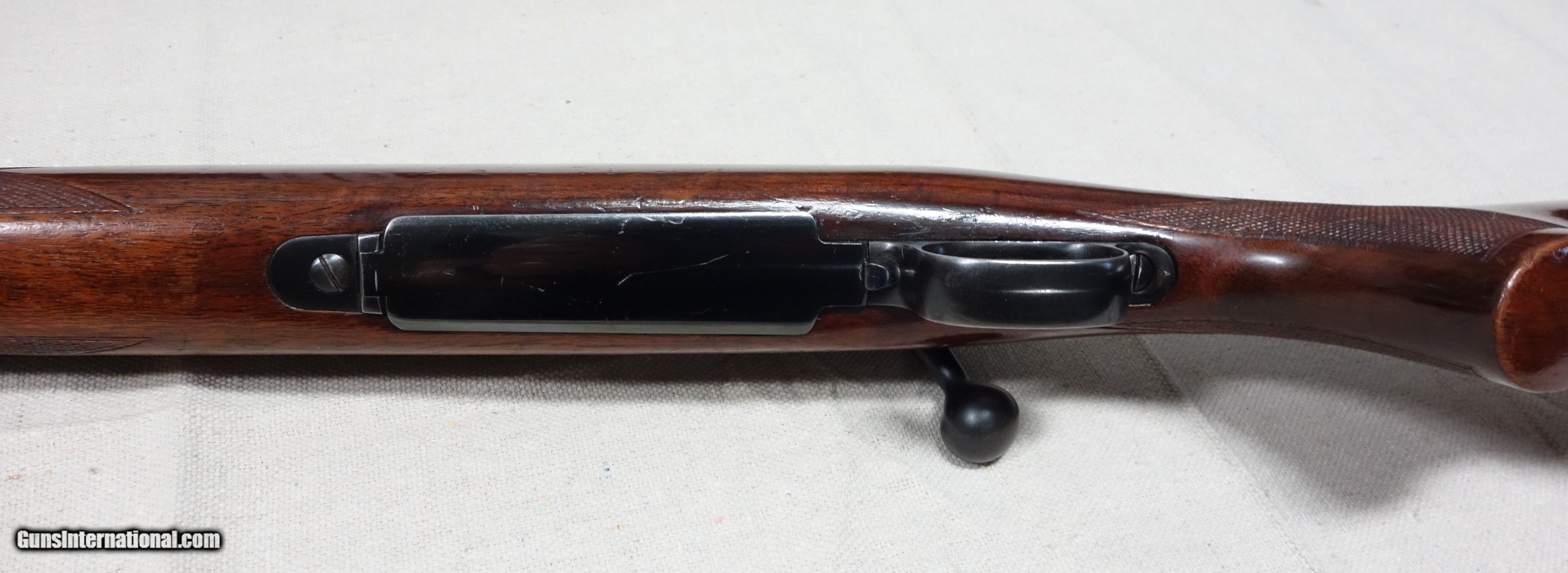 Description: ***SOLD*** Well cared for and sharp looking Pre War Model 70 in the difficult to find .270 caliber. S/N 39837 with matching scribed bolt made in 1941. Excellent original finishes throughout with some light handling marks. 97% overall. There are 2 added 6x48 holes in the rear receiver bridge for conventional scope mounting. 24" barrel with a minty bore. Mechanical functions are flawless. Perfect barrel channel with no bedding, routing, or cracks. Please add $100 for expedited and fully insured shipping from Alaska in a plastic hard case and new box. SOLD Curio/Relic: Yes |