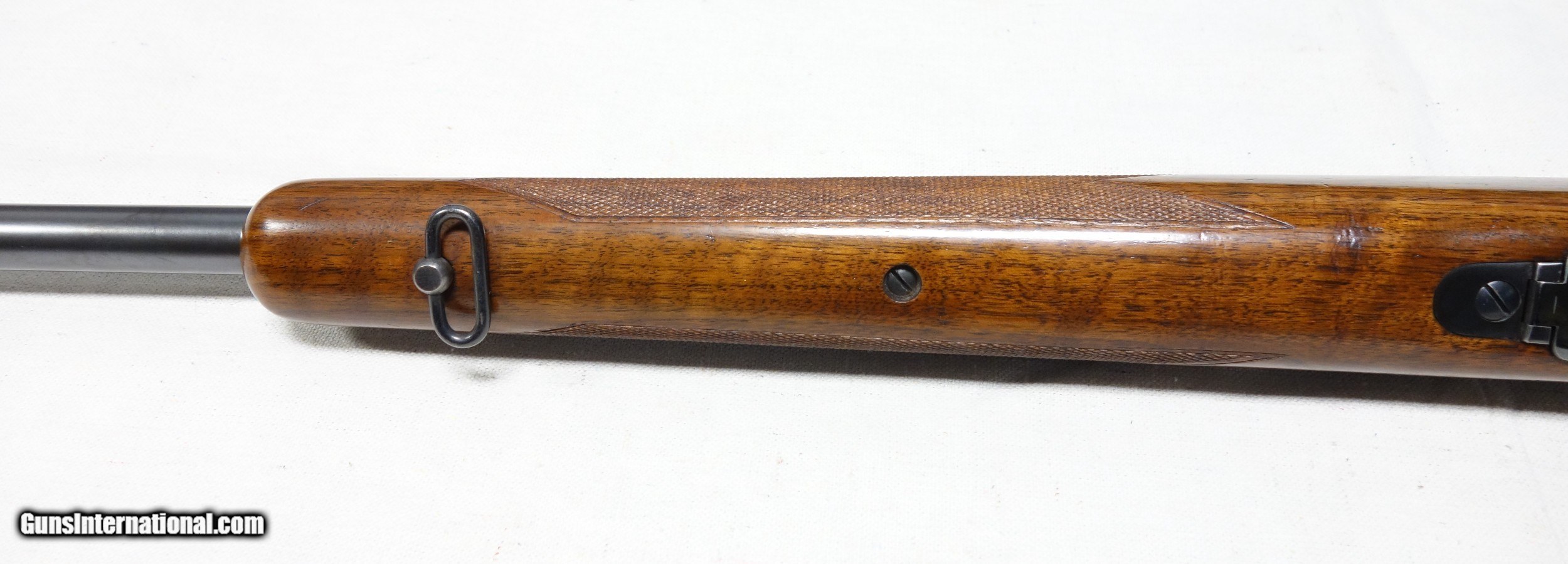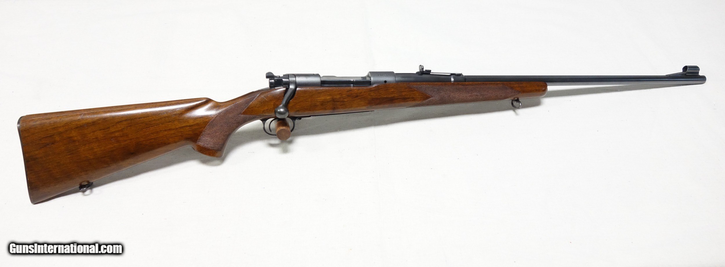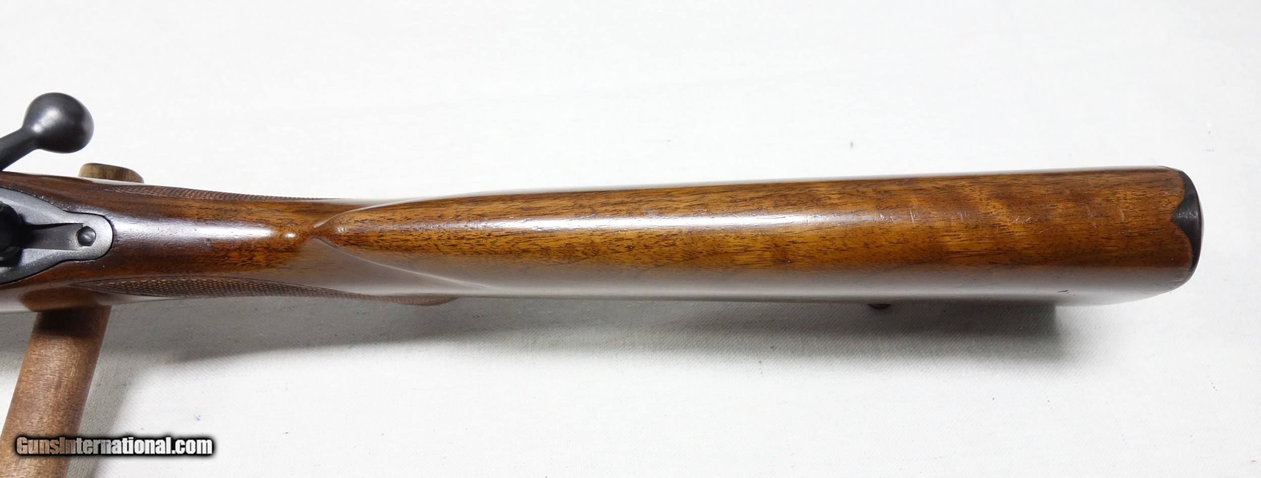 Description: Outstanding Pre War 70 in the venerable .30 GOV'T '06 (30-06) caliber with an UNDRILLED rear receiver bridge! S/N 41*** with matching scribed bolt produced in 1941. The barrel is 24" with an excellent bore. Mechanics are flawless. Condition is superb, especially considering its 80 years of circulation showing 98% Blue and 97% Varnish. The insides are spotless and practically like new. Undrilled Pre Wars have become nearly impossible to find, and this one is a real beauty. SOLD Curio/Relic: Yes |