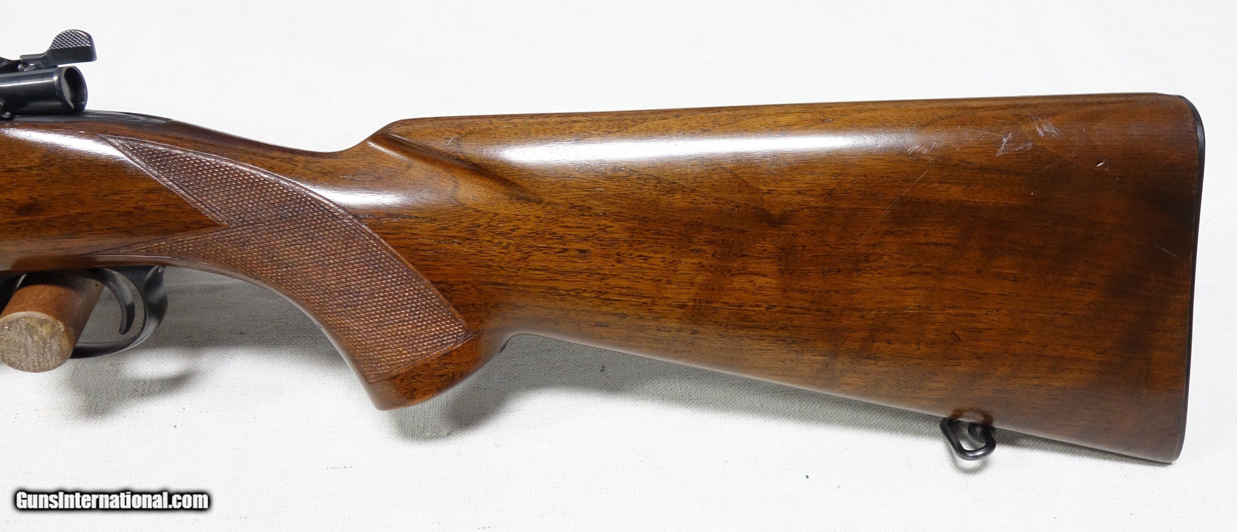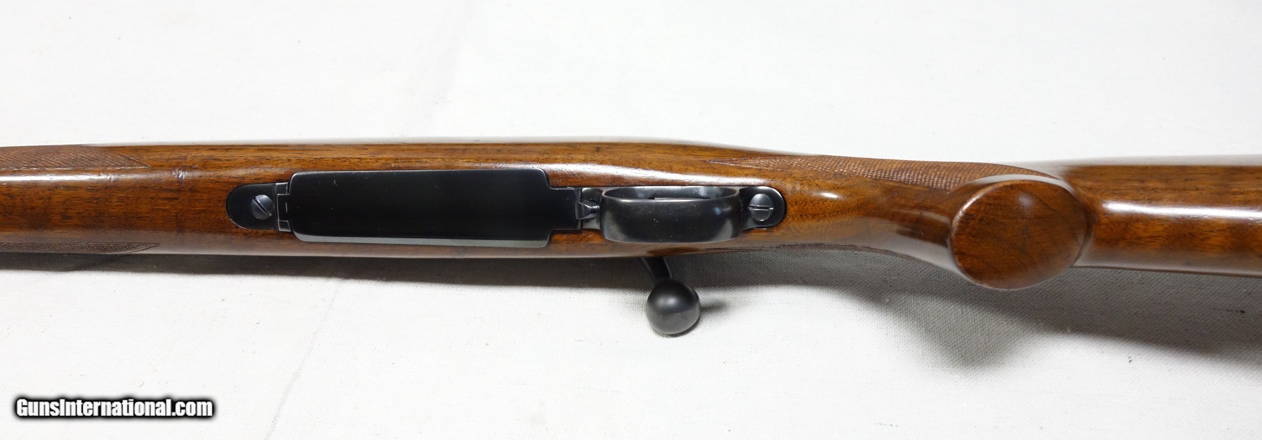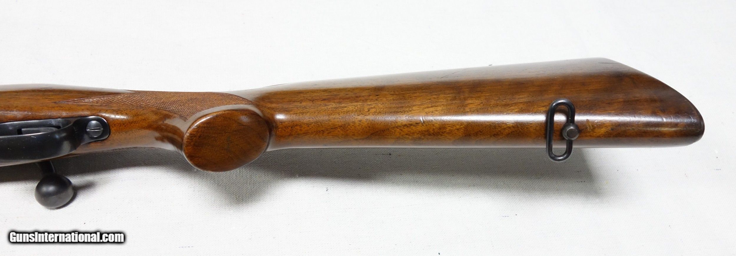 Description: Outstanding Pre War 70 in the venerable .30 GOV'T '06 (30-06) caliber with an UNDRILLED rear receiver bridge! S/N 41*** with matching scribed bolt produced in 1941. The barrel is 24" with an excellent bore. Mechanics are flawless. Condition is superb, especially considering its 80 years of circulation showing 98% Blue and 97% Varnish. The insides are spotless and practically like new. Undrilled Pre Wars have become nearly impossible to find, and this one is a real beauty. SOLD Curio/Relic: Yes |
