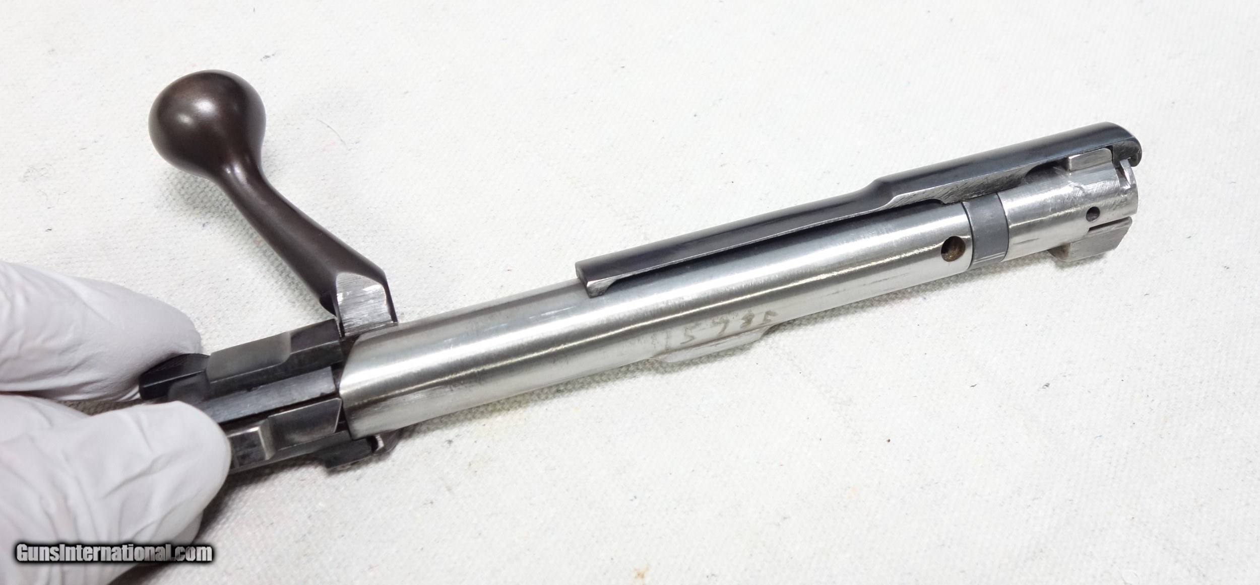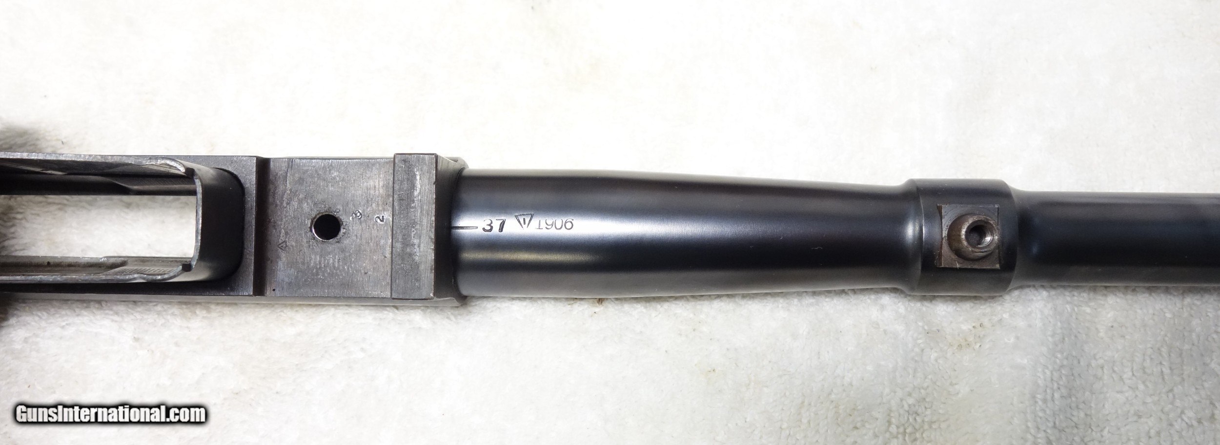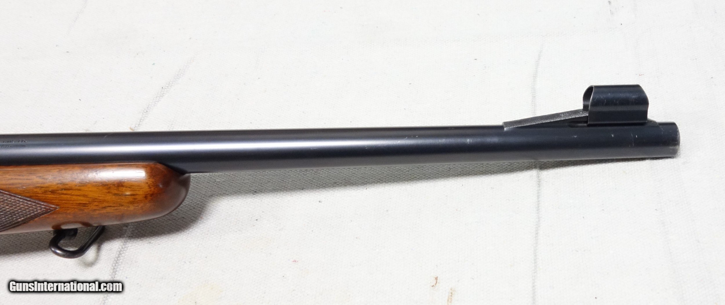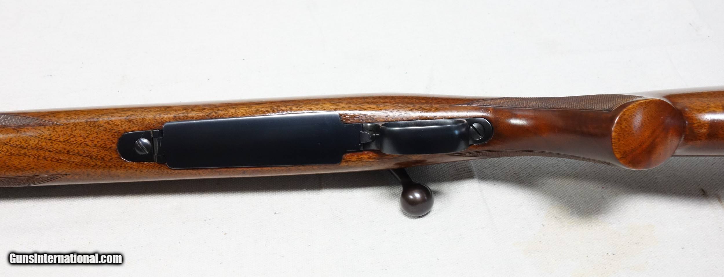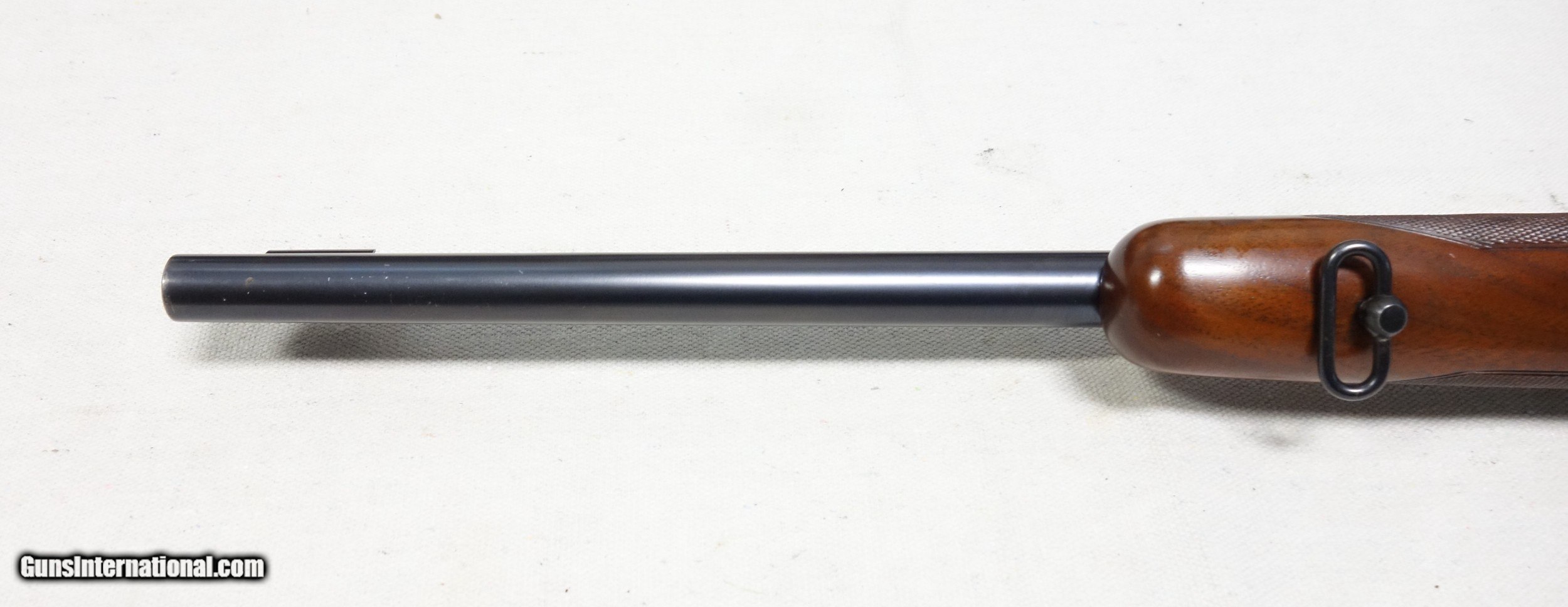 Description: ***SOLD, pending pmt.*** Beautiful, genuine, and rare Pre War 70 short rifle aka "Carbine" in the versatile and popular 30-06 caliber. S/N 15*** with matching scribed bolt made in 1938. The bluing is excellent showing 97% or better over most, other than the barrel which shows more wear due to some light use marks/scratches and a bit of wear at the sharp edge of the muzzle. Early frost blued extractor. 20" barrel with integral front sight ramp, no monkey business of a chopped and fabricated or fake barrel, this is the REAL deal with perfect ramp transitions, stippling, crown, etc.! The wood is also excellent with original lacquer showing only a few scattered impressions. There are NO cracks, gouges or discoloration anywhere. The beautiful polished carbonum blued receiver worn only by these earliest and finest rifles remains UNDRILLED, making this rifle particularly valuable and highly collectible. The bore and mechanics are superb and crisp as usual. This is a really nice and difficult to find rifle. Expedited and fully insured shipping from Alaska to your FFL is an additional $80. SOLD Curio/Relic: Yes |