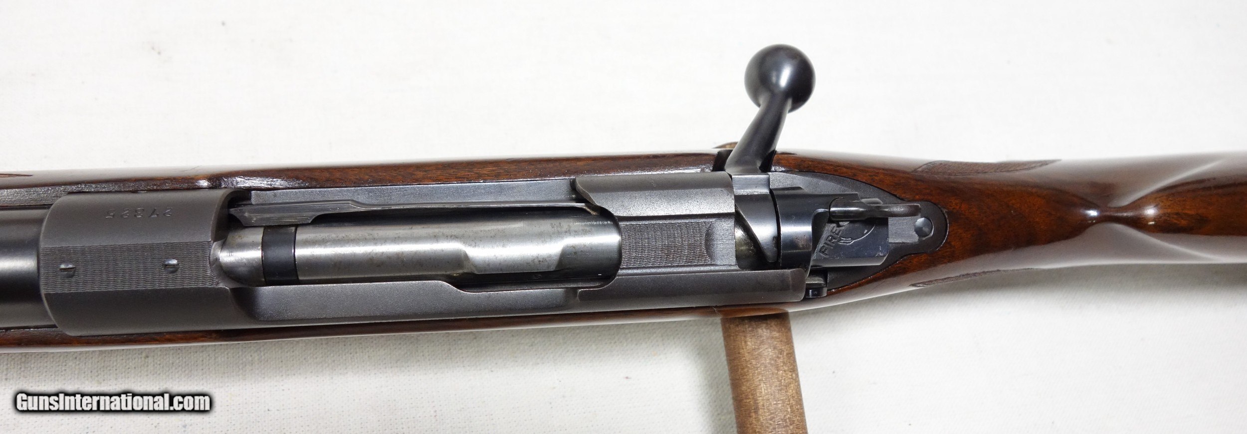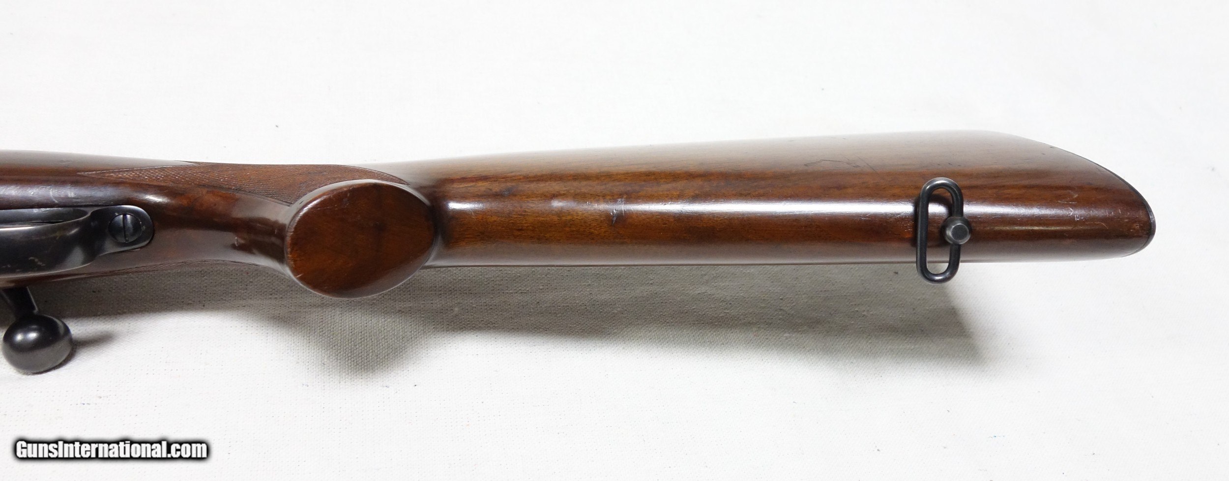 Description: Easily my most requested caliber this year and an exceedingly difficult rifle to find in an unmolested/undrilled Pre War! This is the highly coveted Pre War 300 H&H mag designated only as "300 Magnum" on the barrel stamping since it was the only one at the time. S/N 27*** with matching scribed bolt made in 1939. At 83 years old, this rifle remains in incredible condition showing 96-97% original finishes with no cracks or gouges and an undrilled rear receiver bridge. The bore and mechanical functions are flawless. 26" Barrel. All original early features and components including finely checkered stock and frost blued extractor. A highly desirable and collectible firearm that doesn't come along too often. Shipping from Alaska is $75 via Priority Mail with full insurance in a custom cut foam lined box for maximum protection. Credit card users please add 3%. SOLD Curio/Relic: Yes |