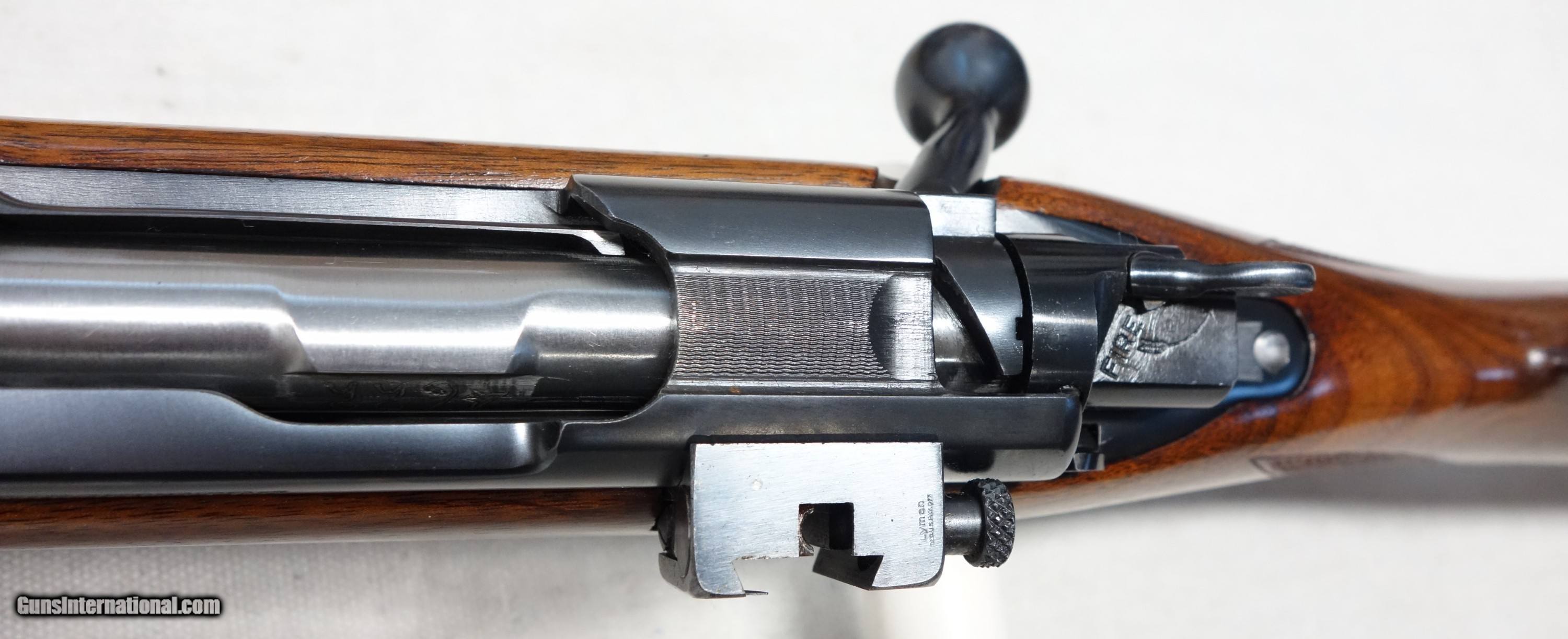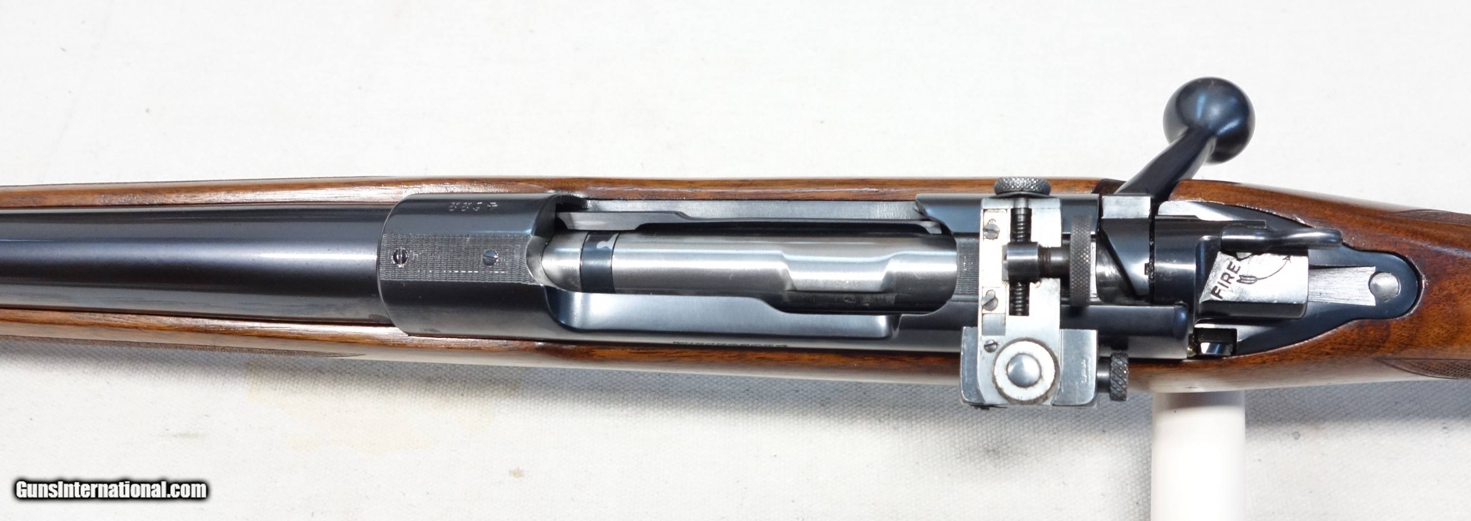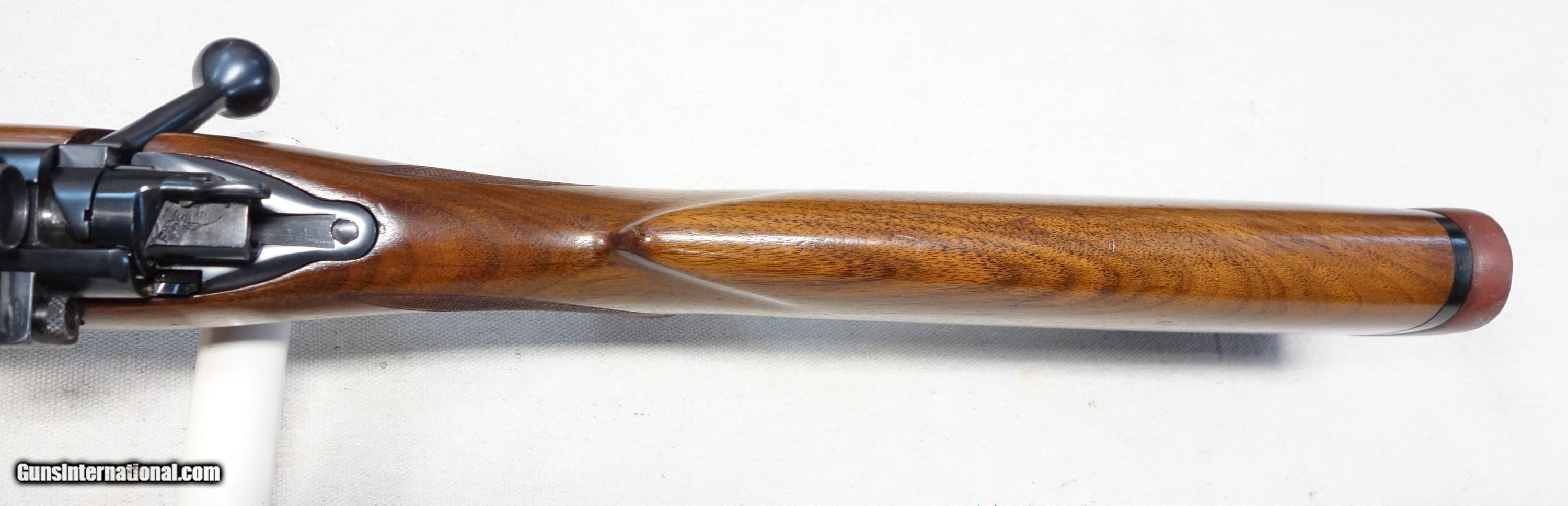 Description: ***SOLD*** Among the best of the best! Here's a highly coveted, outstanding and rare early production Model 70 chambered in the powerhouse 375 Magnum (375 H&H). 4 digit S/N 4622 with matching scribed bolt made in 1937! It wears the rare 24" medium heavy straight taper barrel which was only available during this first year of public offering, soon to be replaced by the 25" C-1 profile barrel in 1938. This rifle was made during the supreme era of Model 70 production, representing the very finest components and precision craftsmanship throughout. All Pre 64 Model 70s are a marvel to behold, but these early Pre War guns take it to another level: Beautiful honey colored and tight grained woods, silky rust blued barrels and polished carbonum blued receivers are some of the typical features, along with butter smooth and ultra crisp mechanics. This rifle has all of that and more. Superb condition for its 87 years showing 98% original Blue and Varnish with only scattered light handling marks. Barrel channel is like new. Bore and mechanics are flawless. Factory issued recoil pad as on all 375s which remains supple. There is the usual factory inletted and installed Lyman 48 long slide receiver sight which has all correct and matching component numbers, original aperture disc, and works perfectly. There are also standard factory drilled holes in the front receiver ring and in the barrel for scope blocks of the day. The matted rear receiver bridge remains UNDRILLED as it should be. After 112 years, the 375 H&H Magnum continues to reign above all other magnums in popularity and practicality for those who deal with dangerous game, and is the parent case for most that followed. It is what I have used very effectively for nearly 40 years of guiding Grizzly hunters here in Alaska, and continues to be the favorite of a majority of African game cullers. This is an exceedingly scarce, unaltered and high condition rifle which would be very difficult to upgrade. Please add $100 for expedited and fully insured shipping from Alaska. SOLD Curio/Relic: Yes |