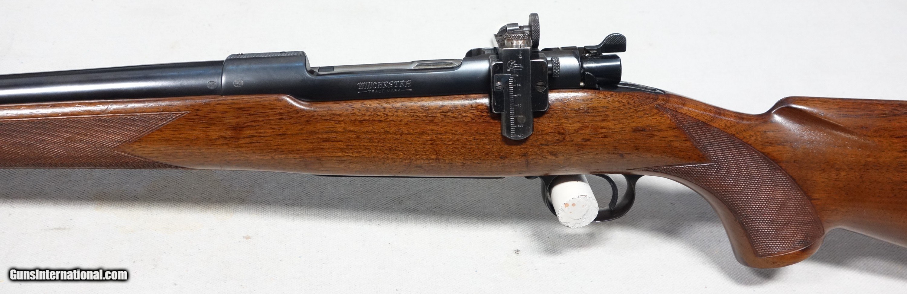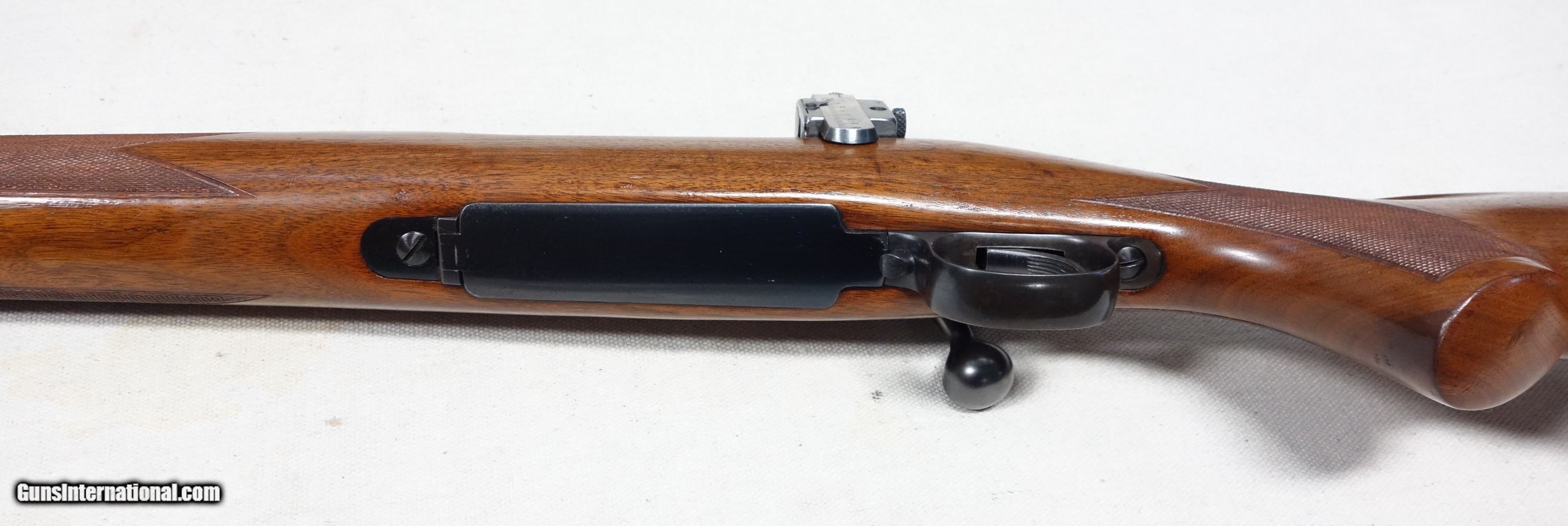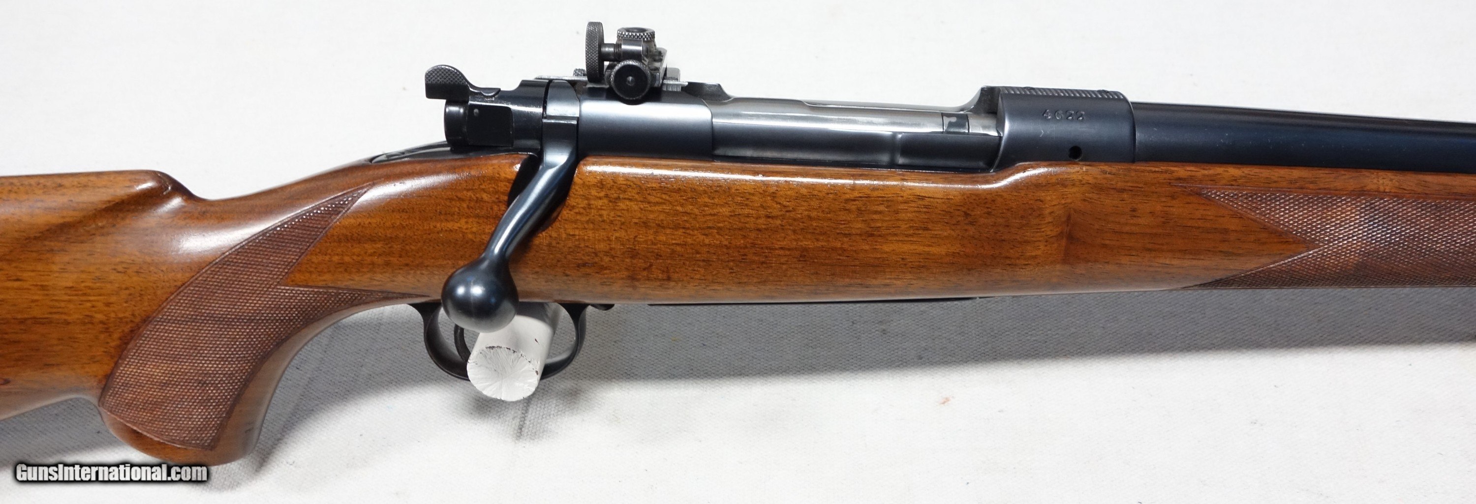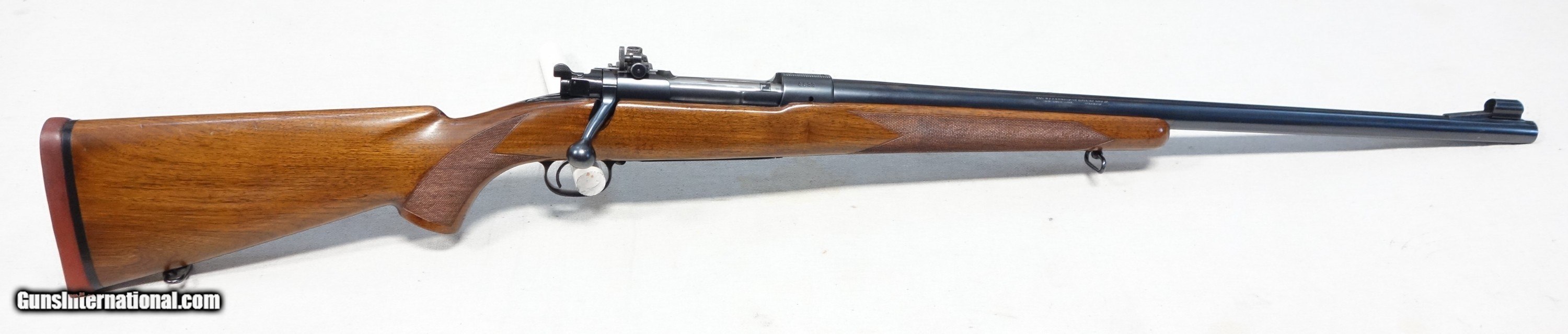 Description: ***SOLD*** Among the best of the best! Here's a highly coveted, outstanding and rare early production Model 70 chambered in the powerhouse 375 Magnum (375 H&H). 4 digit S/N 4622 with matching scribed bolt made in 1937! It wears the rare 24" medium heavy straight taper barrel which was only available during this first year of public offering, soon to be replaced by the 25" C-1 profile barrel in 1938. This rifle was made during the supreme era of Model 70 production, representing the very finest components and precision craftsmanship throughout. All Pre 64 Model 70s are a marvel to behold, but these early Pre War guns take it to another level: Beautiful honey colored and tight grained woods, silky rust blued barrels and polished carbonum blued receivers are some of the typical features, along with butter smooth and ultra crisp mechanics. This rifle has all of that and more. Superb condition for its 87 years showing 98% original Blue and Varnish with only scattered light handling marks. Barrel channel is like new. Bore and mechanics are flawless. Factory issued recoil pad as on all 375s which remains supple. There is the usual factory inletted and installed Lyman 48 long slide receiver sight which has all correct and matching component numbers, original aperture disc, and works perfectly. There are also standard factory drilled holes in the front receiver ring and in the barrel for scope blocks of the day. The matted rear receiver bridge remains UNDRILLED as it should be. After 112 years, the 375 H&H Magnum continues to reign above all other magnums in popularity and practicality for those who deal with dangerous game, and is the parent case for most that followed. It is what I have used very effectively for nearly 40 years of guiding Grizzly hunters here in Alaska, and continues to be the favorite of a majority of African game cullers. This is an exceedingly scarce, unaltered and high condition rifle which would be very difficult to upgrade. Please add $100 for expedited and fully insured shipping from Alaska. SOLD Curio/Relic: Yes |