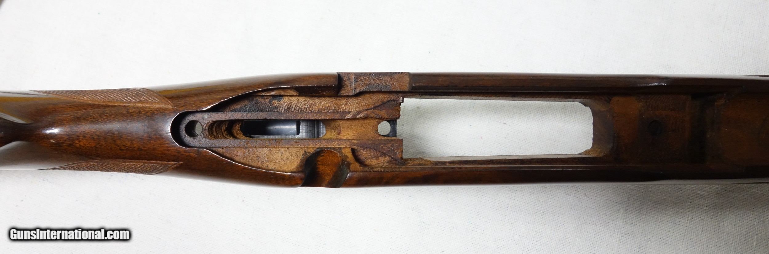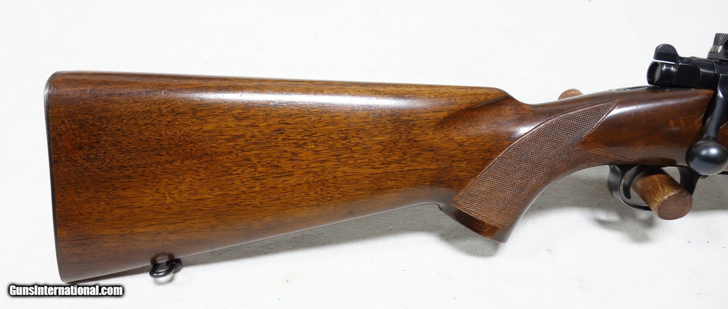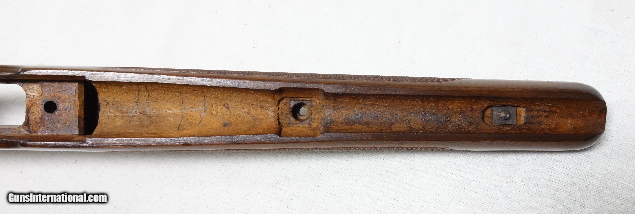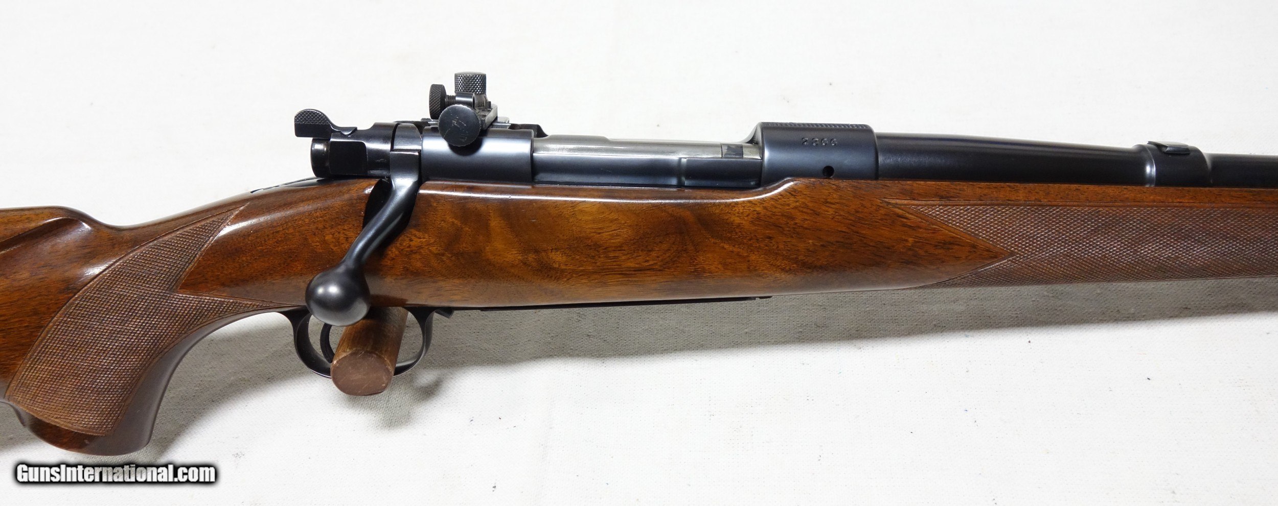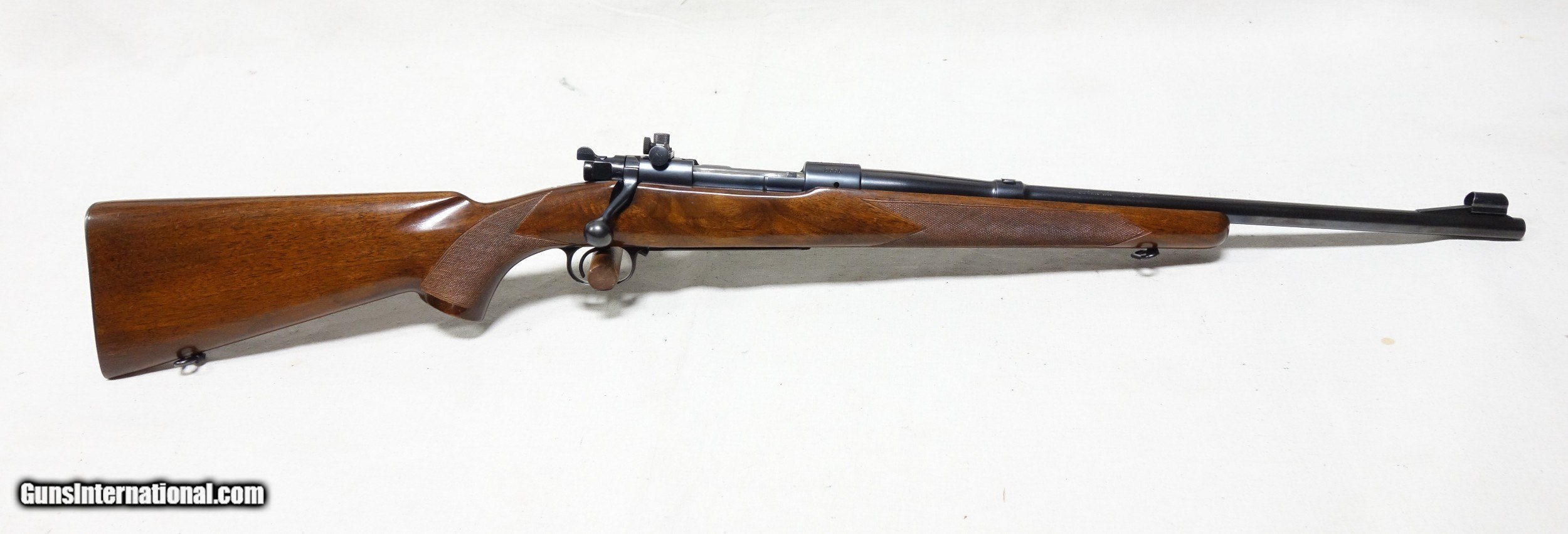 Description: Here's a TRUE 1st year Model 70 Carbine in .30 GOV'T. '06 (30-06) made in 1936, and in about as good of a condition as you will ever see. S/N 2366 with matching scribed bolt. 20" carbine barrel with excellent bore, perfect integral front sight ramp transition and crown. Mechanical function is flawless. A really great example showing about 97% original finishes with all of the desirable early features: polished carbonum blued receiver, frost blued extractor, rust blued barrel, square faced magazine release plunger, fine line checkering on stock, etc. The rear receiver bridge remains undrilled. There is a factory installed 1st generation Lyman 48 receiver sight with all matching inner component numbers and the thimble type adjustment knobs. A rare gun in this condition, configuration and vintage. Shipping from Alaska is $75 via Priority Mail with full insurance in a custom cut foam lined box for maximum protection. Credit card users please add 3%. SOLD Curio/Relic: Yes |