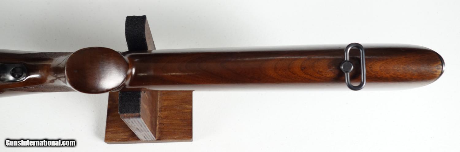 Description: Exceptionally nice Pre War Winchester Model 70 in 30/06 Caliber. S/N 17xxx Mfg. 1939. 24" rust blued barrel with excellent bore. 98% Bluing with a few scattered light freckles on barrel. 98% Varnish. 100% original in all regards of configuration, components, finishes, barrel channel, etc. with undrilled rear receiver bridge. A beautiful collector piece. SOLD Curio/Relic: Yes |