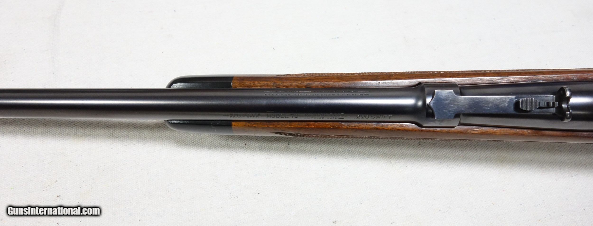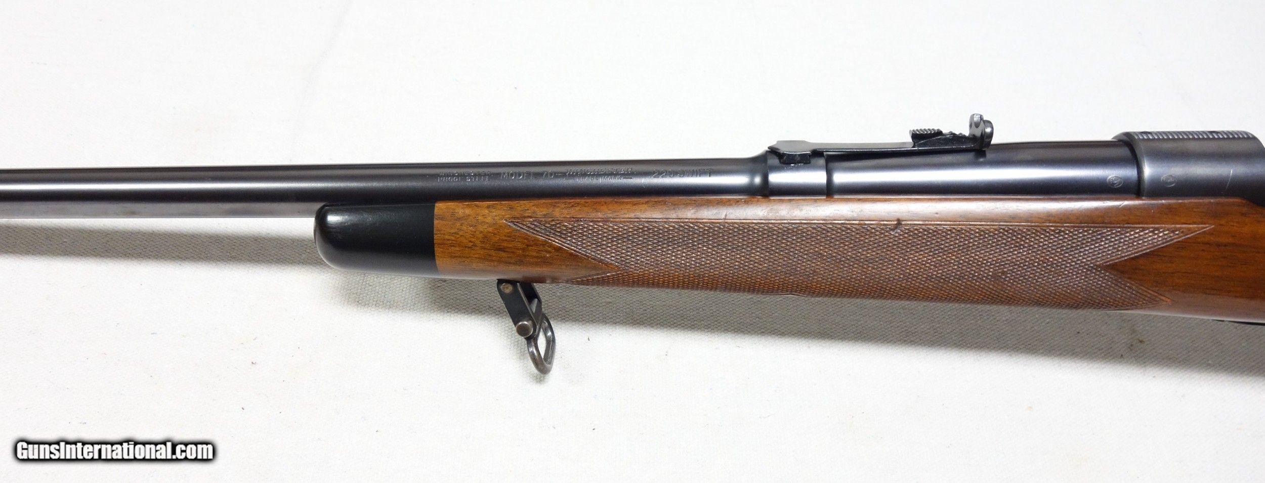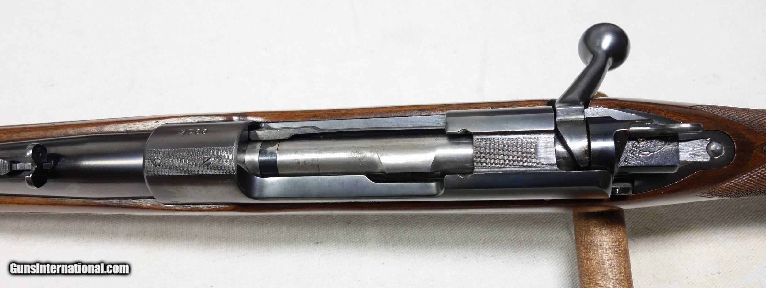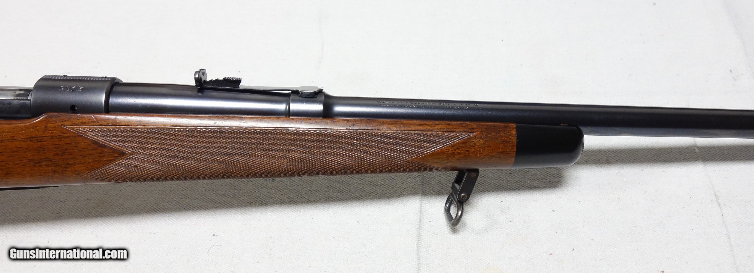 Description: ***SOLD*** Incredible and very rare Pre War 220 Swift Super Grade. This is a very early 4 digit S/N 9915 with matching bolt made in 1937. This rifle wears the desirable early rust blued carbon steel barrel with 1936 date stamp! Pre War Swift Supers have been even harder for me to find than the rarest of calibers. They are very elusive! The condition of this one is simply superb for an 85 year old rifle with all original finishes showing an honest 98% Blue everywhere except the buttplate, which shows typical light patina. The wood is also excellent with only scattered light handling marks/impressions one would expect. There are no significant dents, nor any gouges or cracks anywhere. The rear receiver bridge remains undrilled! The bore and throat are excellent and the mechanical functions are flawless. All of the correct era Super Grade components are present including the Redfield front sight, properly stamped floor plate, and the proper Pre War era detachable swivels. This is a beautiful, highly desirable and highly collectible Model 70 by any standard. Expedited and fully insured shipping from Alaska to your FFL in a custom cut foam lined box is $100. SOLD Curio/Relic: Yes |