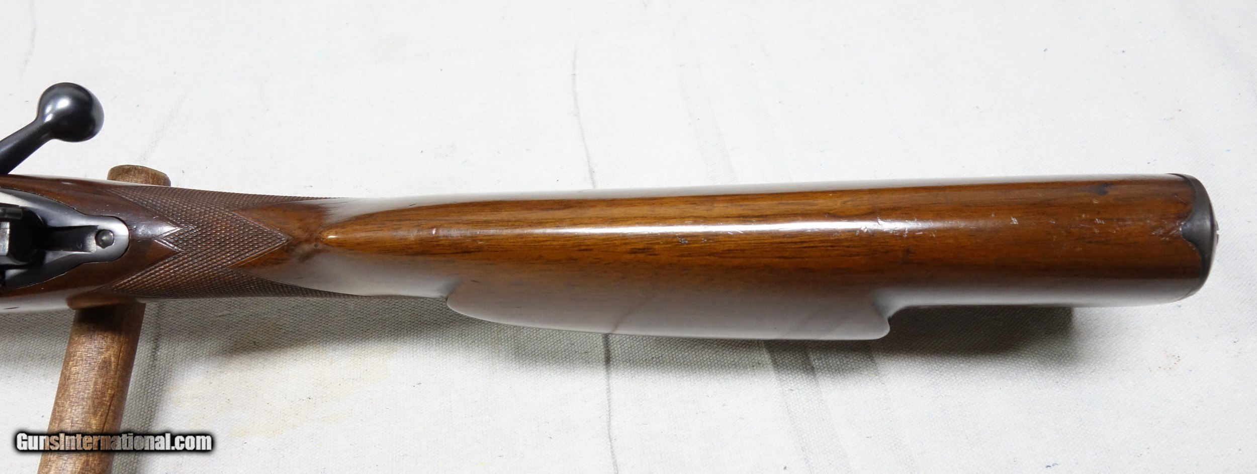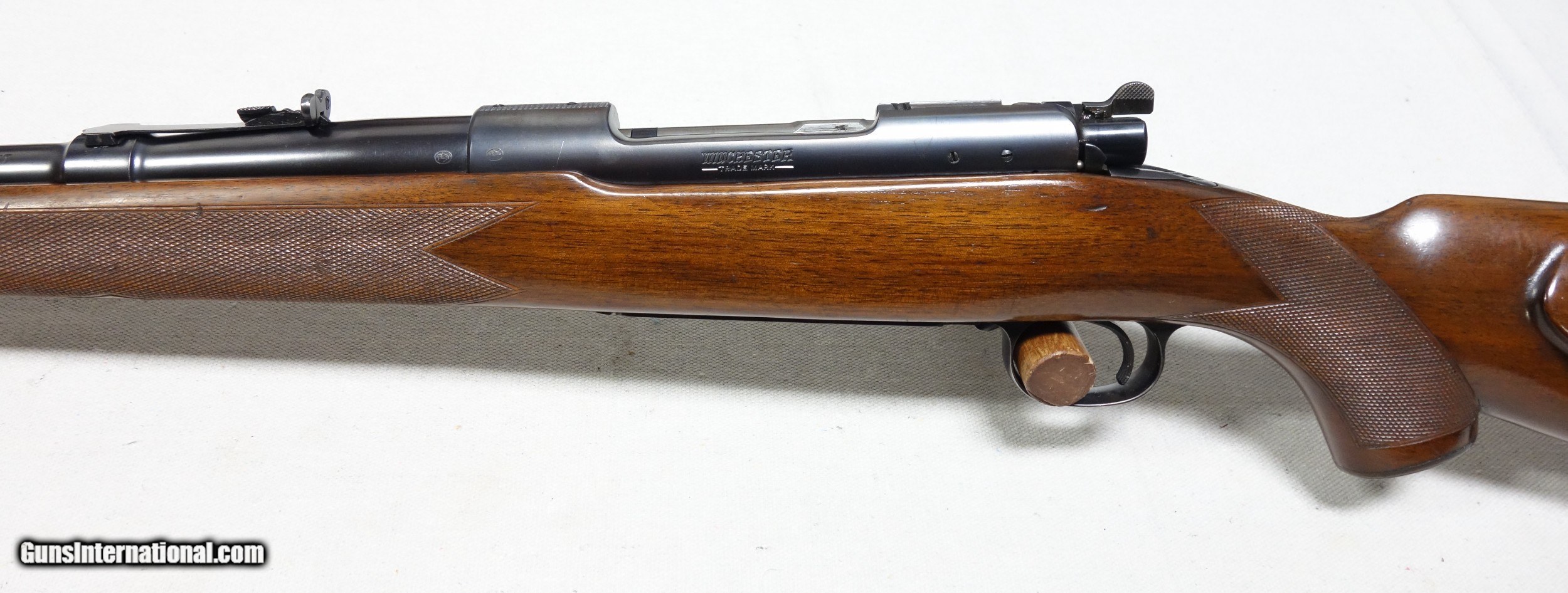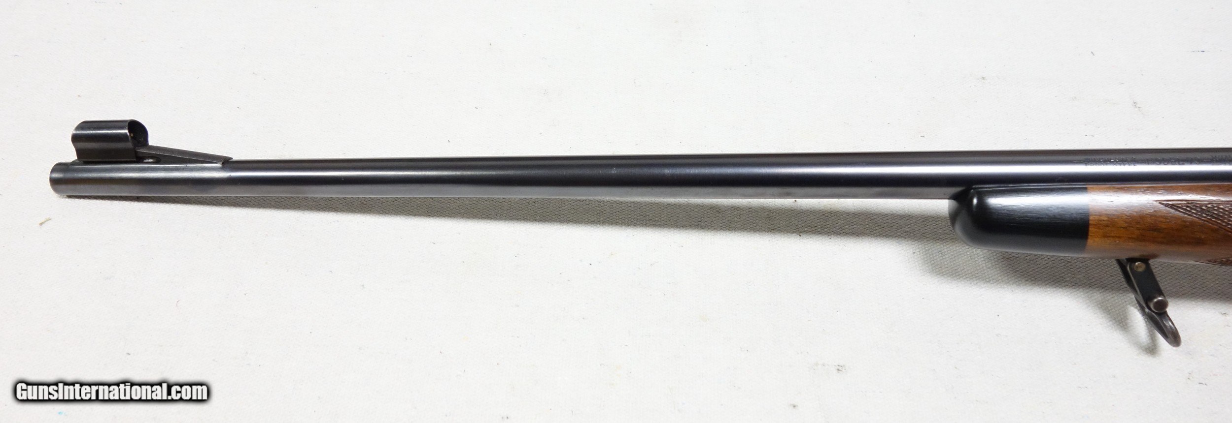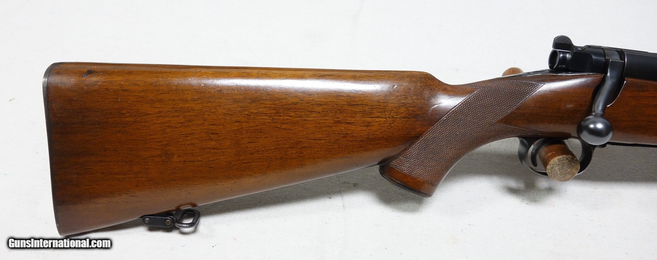Description: ***SOLD*** Incredible and very rare Pre War 220 Swift Super Grade. This is a very early 4 digit S/N 9915 with matching bolt made in 1937. This rifle wears the desirable early rust blued carbon steel barrel with 1936 date stamp! Pre War Swift Supers have been even harder for me to find than the rarest of calibers. They are very elusive! The condition of this one is simply superb for an 85 year old rifle with all original finishes showing an honest 98% Blue everywhere except the buttplate, which shows typical light patina. The wood is also excellent with only scattered light handling marks/impressions one would expect. There are no significant dents, nor any gouges or cracks anywhere. The rear receiver bridge remains undrilled! The bore and throat are excellent and the mechanical functions are flawless. All of the correct era Super Grade components are present including the Redfield front sight, properly stamped floor plate, and the proper Pre War era detachable swivels. This is a beautiful, highly desirable and highly collectible Model 70 by any standard. Expedited and fully insured shipping from Alaska to your FFL in a custom cut foam lined box is $100. SOLD Curio/Relic: Yes |