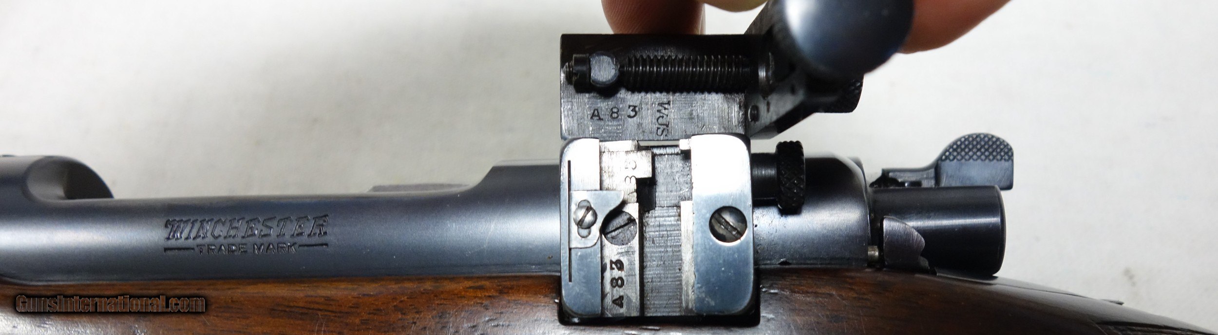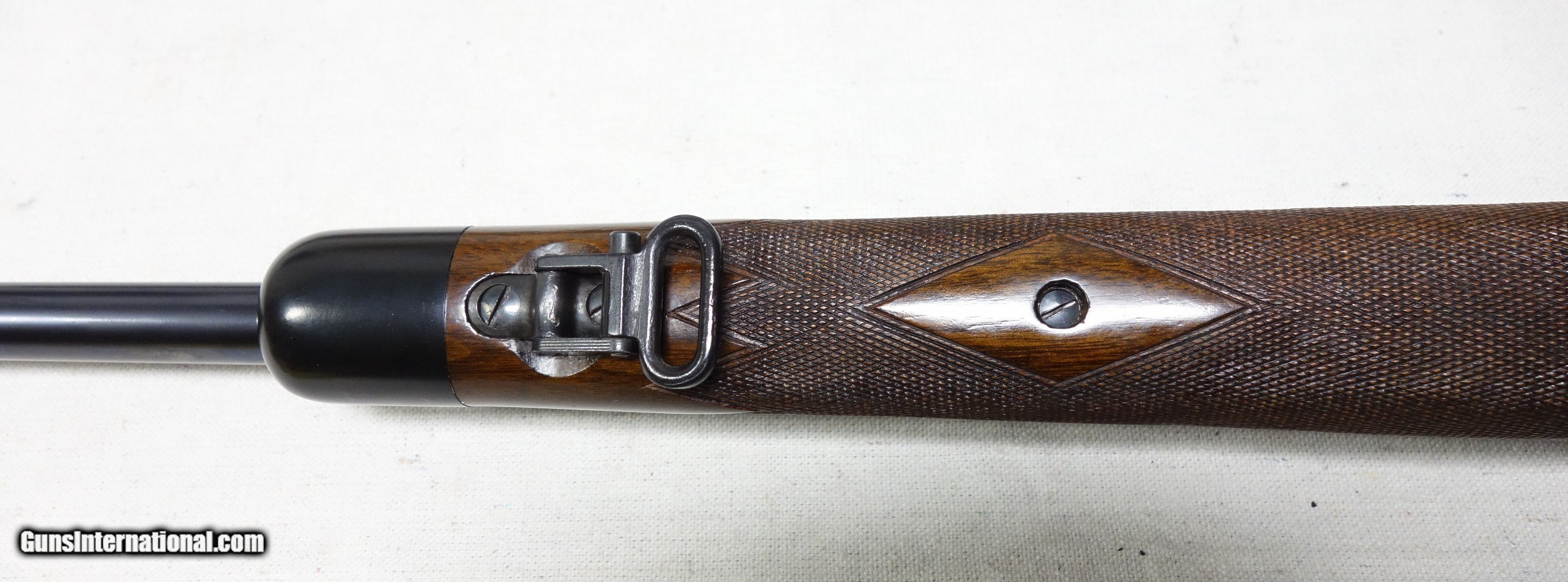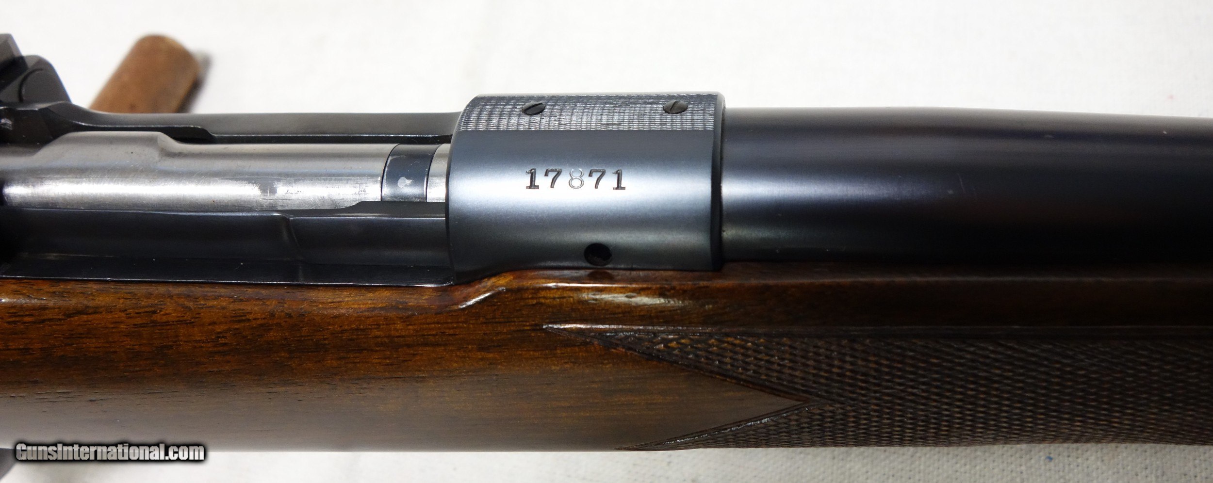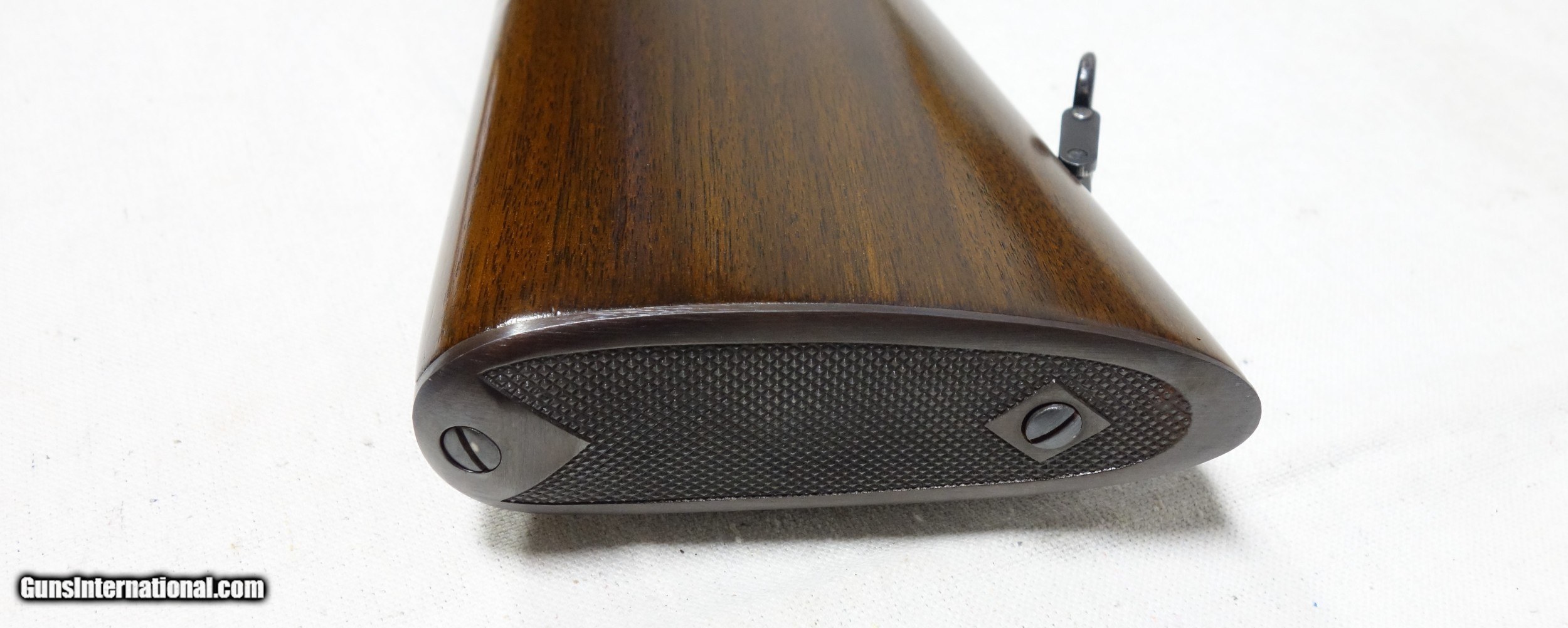 Description: Beautiful early Pre War Model 70 Super Grade in all time favorite 30-06 caliber. S/N 17*** with matching scribed bolt made in 1938. Overall 97-98% Blue and Varnish. 24" barrel with excellent bore and flawless mechanics. Great early features include a polished carbonum blued receiver, rust blued barrel, undrilled rear receiver bridge, frost blued extractor, etc. There is a factory installed Lyman 48 receiver sight with the early thimble style knob and all matching component numbers throughout. All unique Super Grade components are also present including the deluxe stock with contrasting fore end tip/ elevated cheek rest/ and extensive wrap around checkering, Redfield 254 gold bead front sight, SUPER GRADE stamped floorplate, robust detachable swivels, etc. It has become QUITE RARE to see a Pre War 30-06 Super Grade that has not been stripped of its key parts and this is a nice one! Shipping from Alaska is $75 via Priority Mail with full insurance in a custom cut foam lined box for maximum protection. Credit card users please add 3%. SOLD Curio/Relic: Yes |
