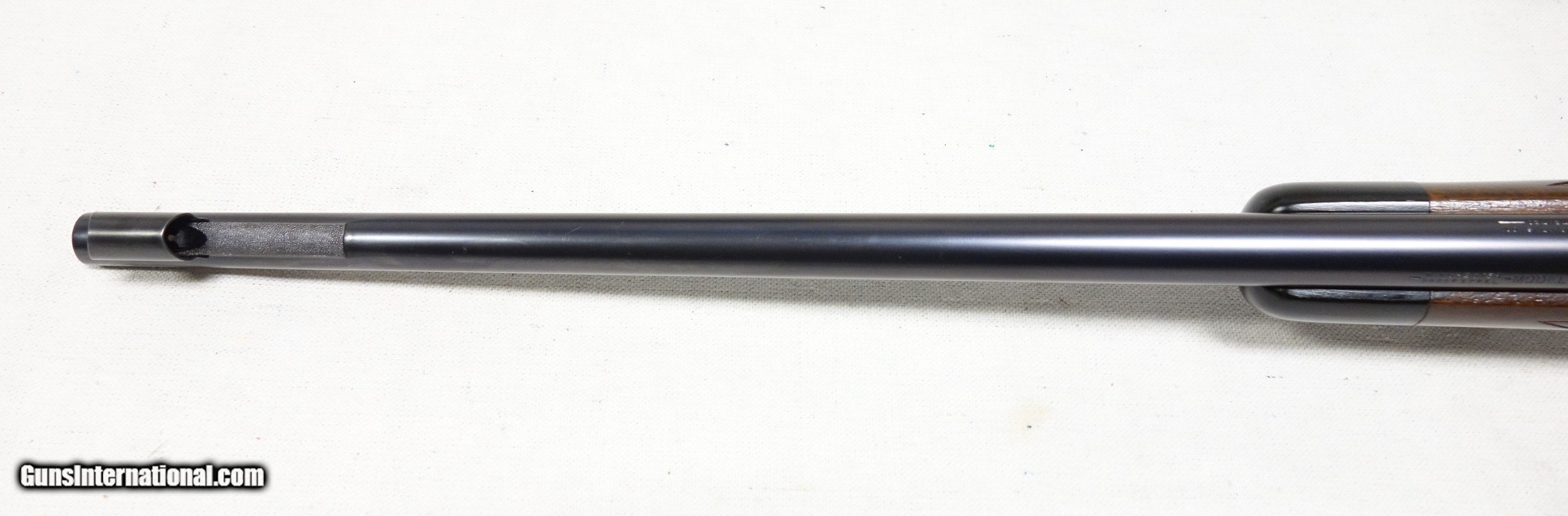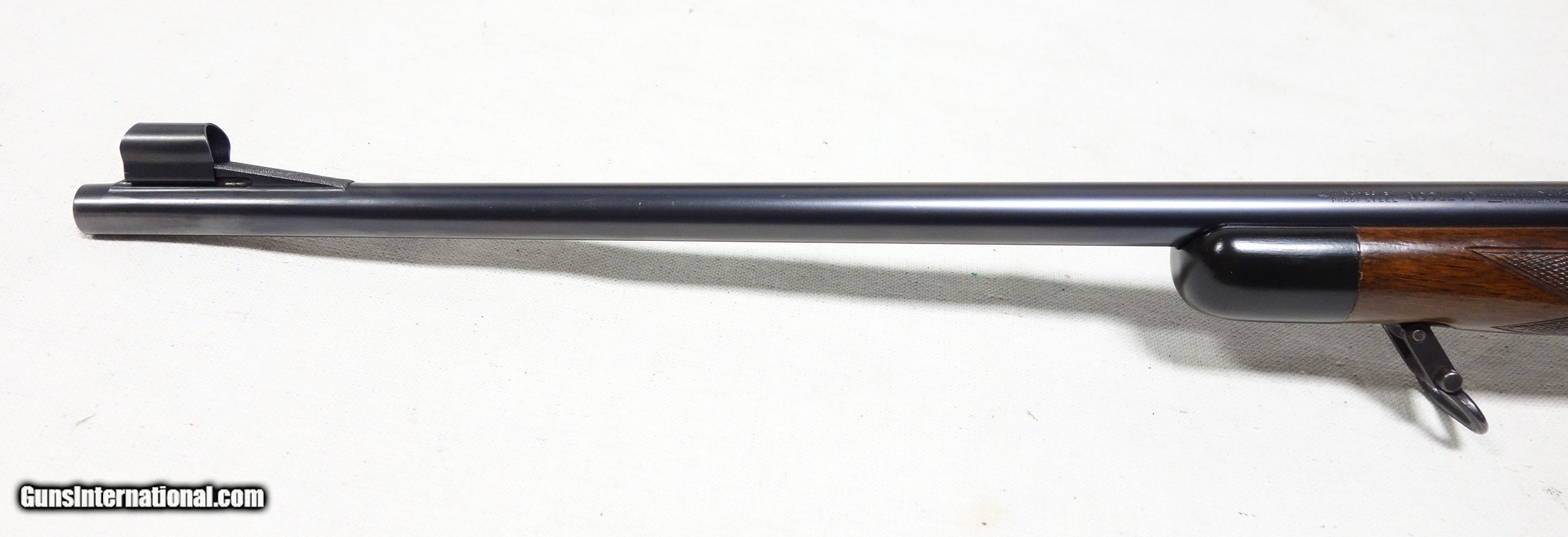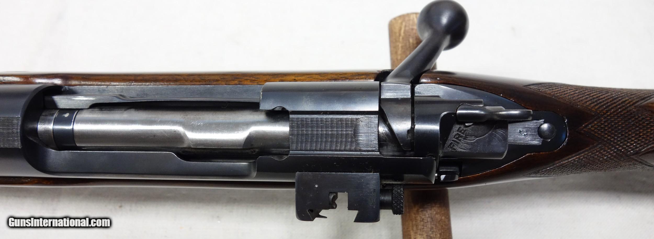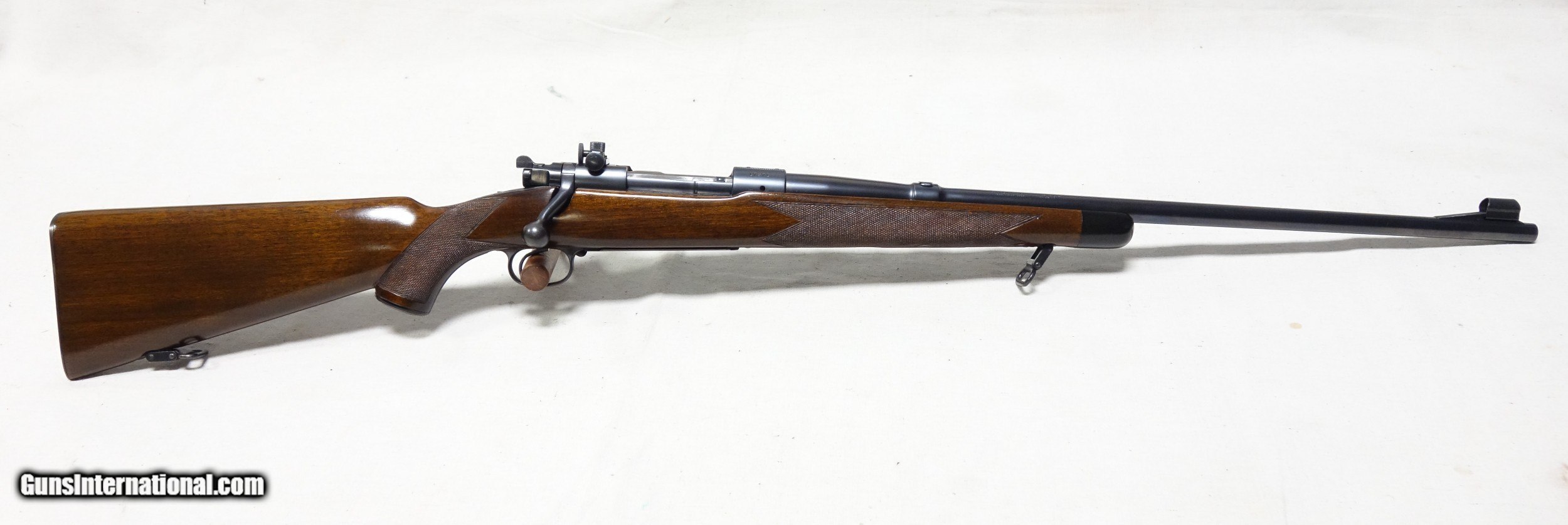 Description: Beautiful early Pre War Model 70 Super Grade in all time favorite 30-06 caliber. S/N 17*** with matching scribed bolt made in 1938. Overall 97-98% Blue and Varnish. 24" barrel with excellent bore and flawless mechanics. Great early features include a polished carbonum blued receiver, rust blued barrel, undrilled rear receiver bridge, frost blued extractor, etc. There is a factory installed Lyman 48 receiver sight with the early thimble style knob and all matching component numbers throughout. All unique Super Grade components are also present including the deluxe stock with contrasting fore end tip/ elevated cheek rest/ and extensive wrap around checkering, Redfield 254 gold bead front sight, SUPER GRADE stamped floorplate, robust detachable swivels, etc. It has become QUITE RARE to see a Pre War 30-06 Super Grade that has not been stripped of its key parts and this is a nice one! Shipping from Alaska is $75 via Priority Mail with full insurance in a custom cut foam lined box for maximum protection. Credit card users please add 3%. SOLD Curio/Relic: Yes |
