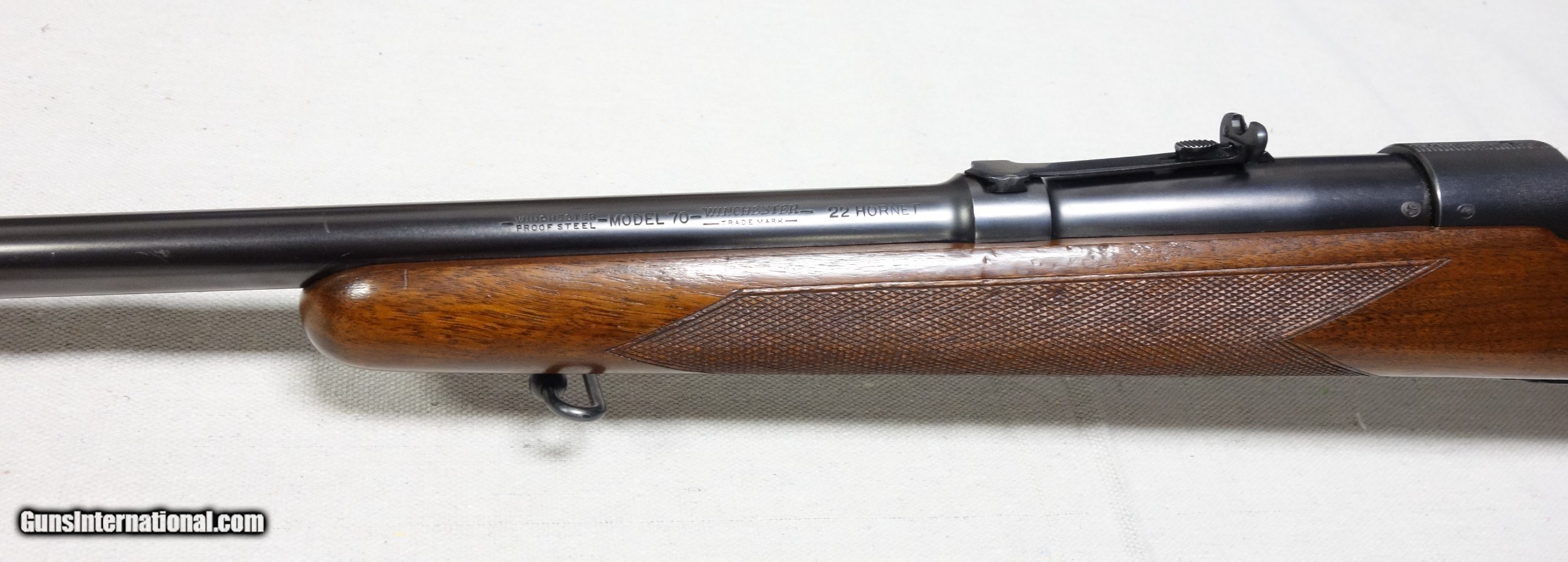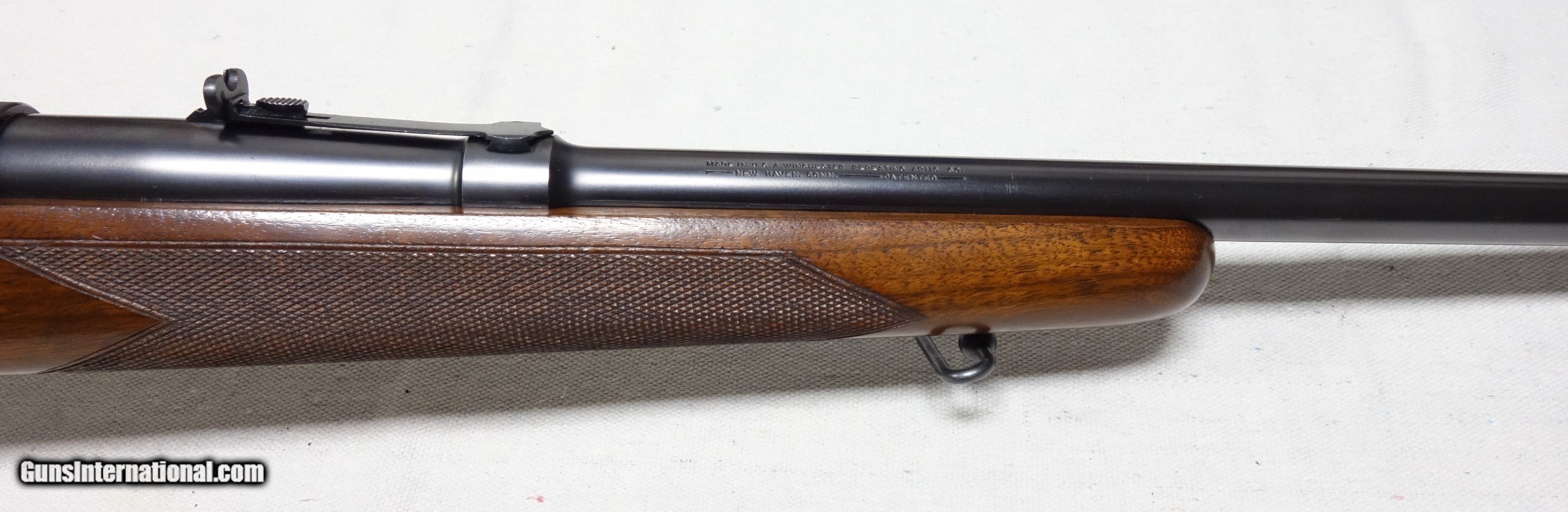 Description: ***SOLD, pending pmt.*** Super clean and undrilled Pre War 70 in very scarce 22 Hornet caliber. S/N 44*** with matching bolt made 1942. 97% Blue and Varnish. Excellent bore and mechanical function. Chamber has been verified as original 22 Hornet, never reamed to K. Please add $75 for expedited and fully insured shipping from Alaska to your FFL. SOLD Curio/Relic: Yes |