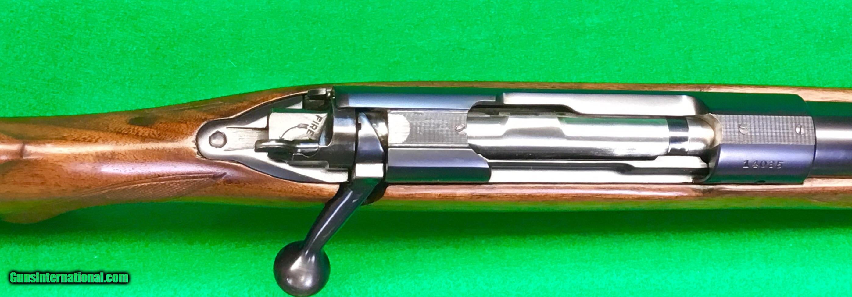 Description: Reduced in price // It pains me to part with Pre-War model 70’s, especially a magnum actioned 300 H&H. This one has one non factory scope mount hole in the rear receiver ring, and a minor repair at the toe of the stock. That repair is so minor it had to be pointed out to me. These early pre-war Model 70’s have a lustrous cold rust factory blue. This is a beauty with a mirror bore. See photos. $1998 plus $50 shipping in hard case. Lay-a-way available, no credit cards and no trades. C&R ok. More photos on request. Be sure to take a look at my other listings. SOLD Curio/Relic: Yes |