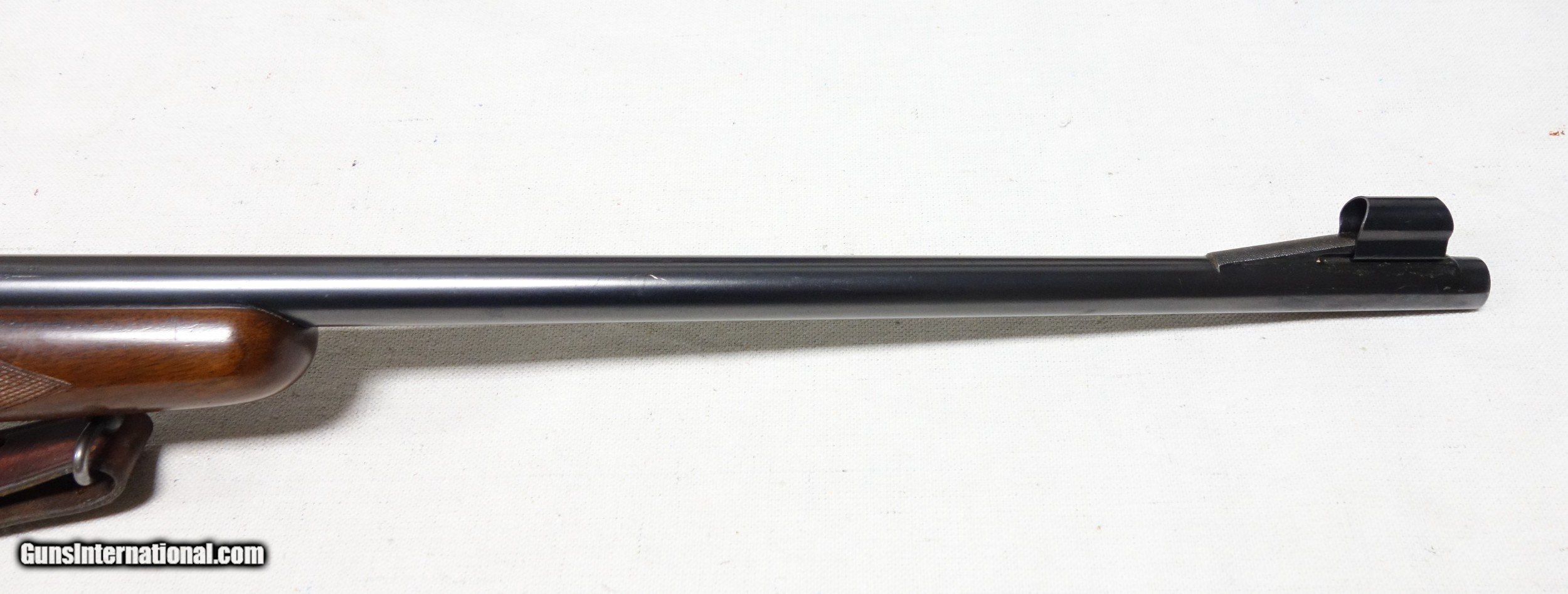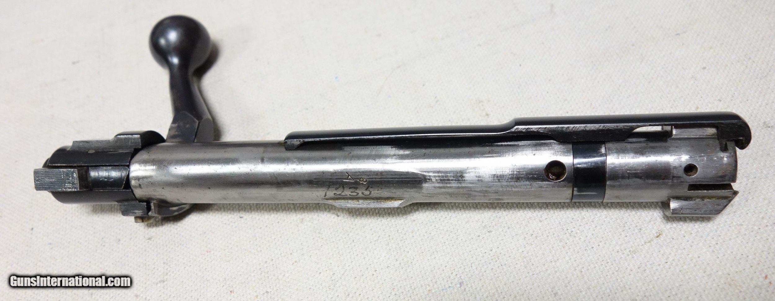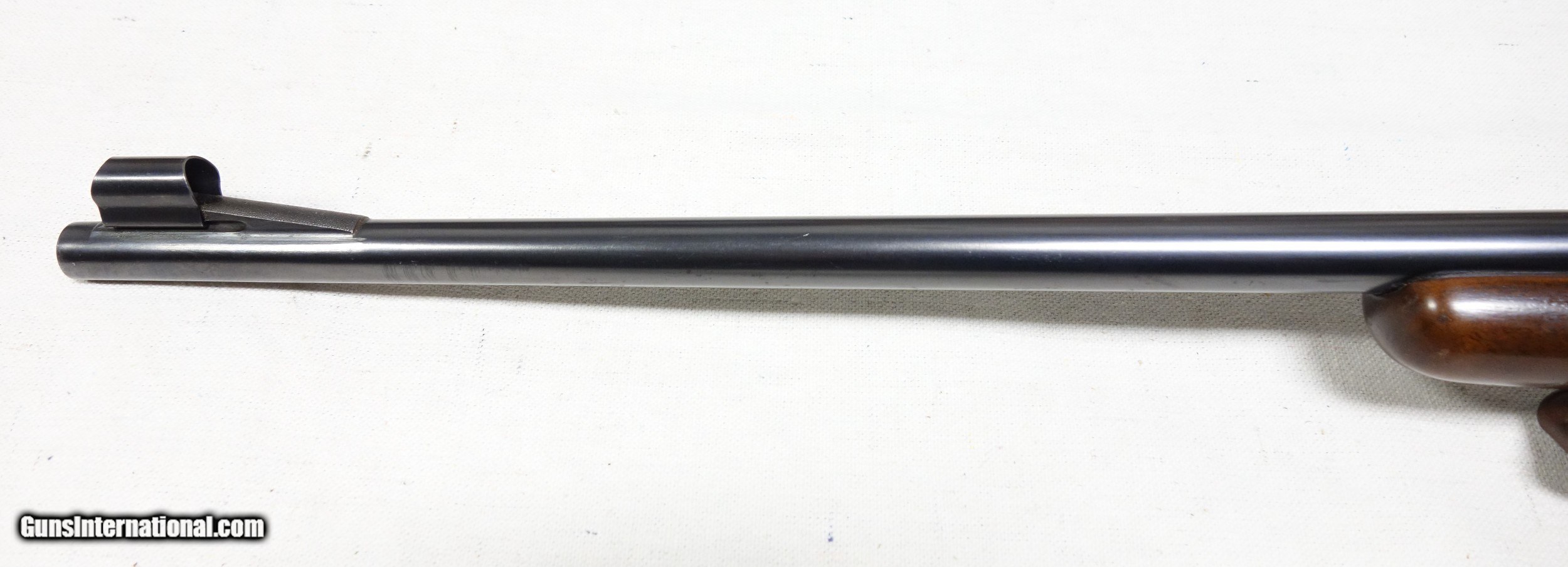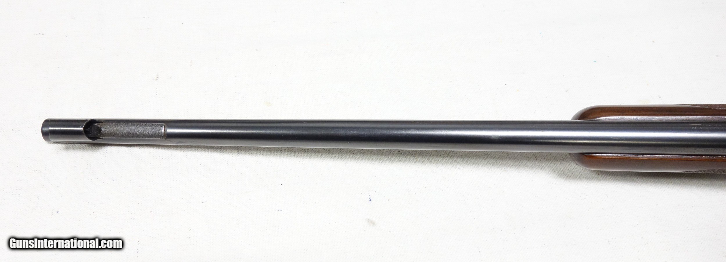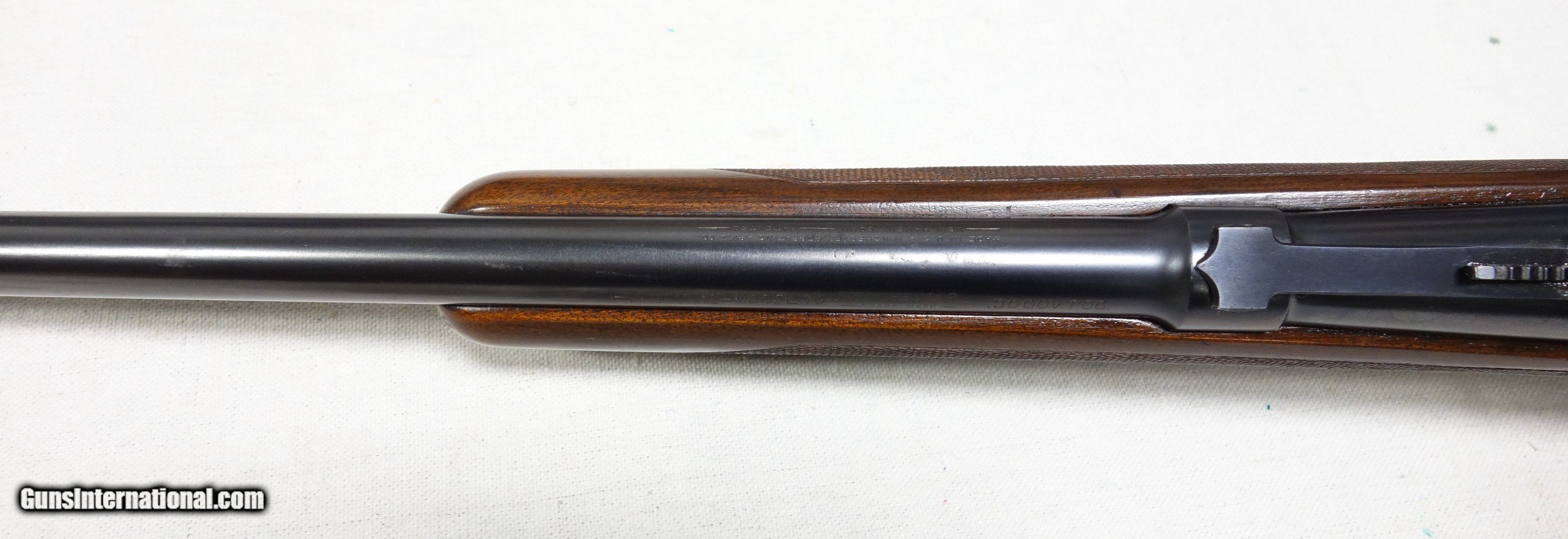 Description: Ultra scarce and beautiful 1st year Pre War 70 in 30-06. This is a true 1st year gun with 4 digit S/N 1235 and matching scribed bolt made in 1936! The original Blue and Varnish rates about 96%, amazing for an 85 year old gun. Beautifully grained wood. Beautiful polished Carbonum Blue receiver seen only on the earliest rifles. Seldom seen rare square faced magazine release botton! Period sling is still in good shape so I left it on, may be original? 24" barrel. There is one somewhat heartbreaking but all too common non original drill hole in the matted rear receiver bridge. Still a fantastic rifle overall. The bore is like a mirror and mechanical functions are typically butter smooth and precise. Not perfect, but you will likely have a very long wait to see another like it. SOLD Curio/Relic: Yes |