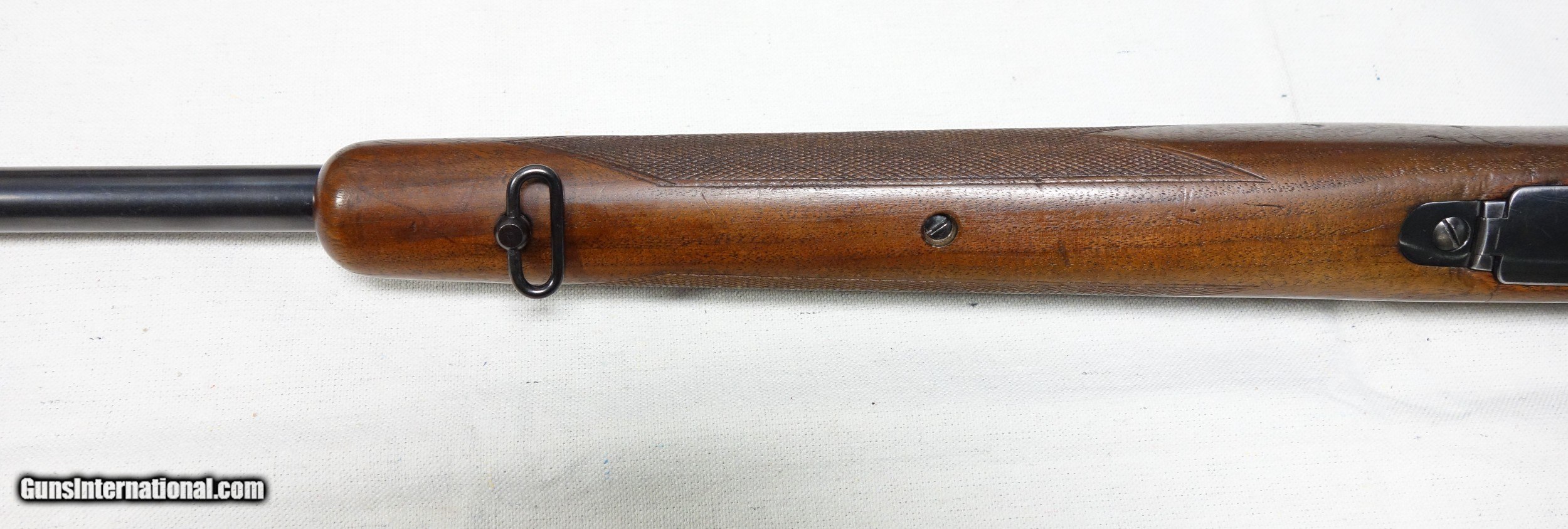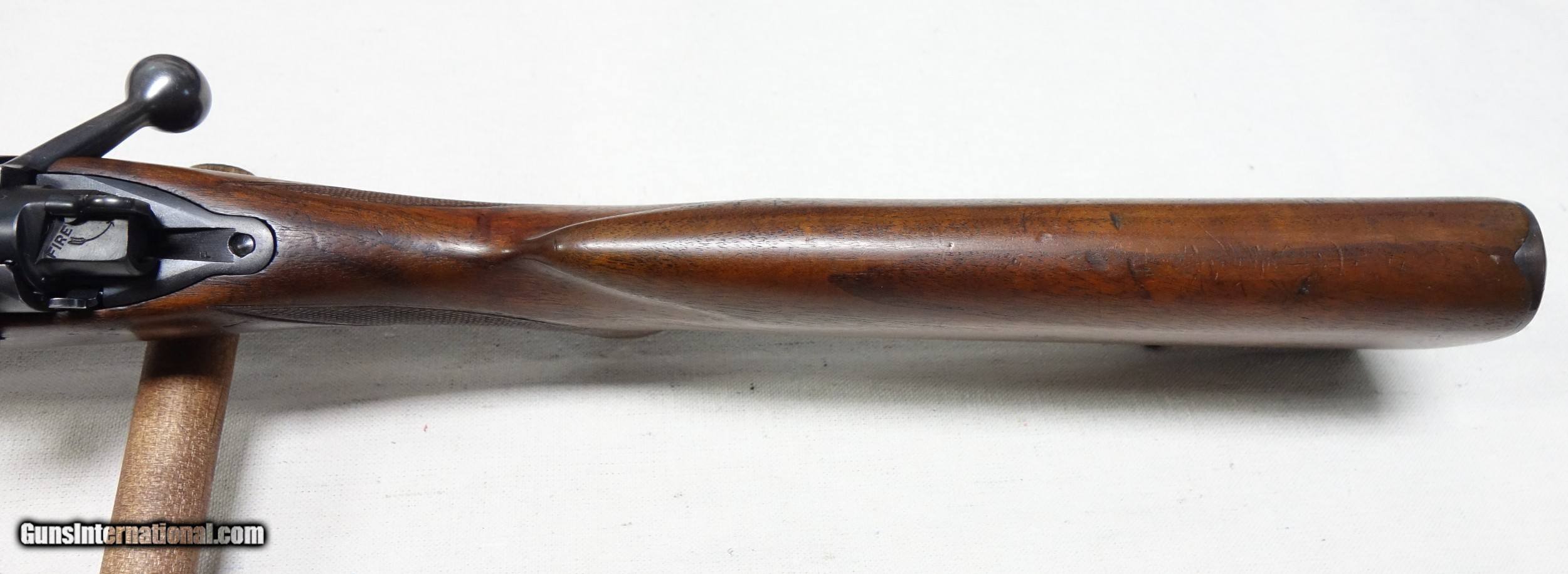 Description: Highly desirable and exceedingly difficult to find PRE WAR 300 Magnum (H&H) with UNDRILLED rear receiver bridge. S/N 44*** with matching scribed bolt made in 1941. 26" Barrel. This rifle is all original and in very good condition showing about 90% Blue and Varnish with overall light handling marks and some scattered deeper dings. As mentioned, the rear receiver bridge is miraculously original and undrilled! The rear sight is the correct vintage Lyman 48 WJS with its full inletted base and the proper Lyman 12S filler in the rear sight dovetail slot. This receiver sight is in superb condition with positive clicks and all matching component numbers throughout. I have personally verified that this chamber has never been reamed out to 300 Weatherby. The bore is mint and the mechanical function flawless and butter smooth in typical Pre War fashion. A fine and rare rifle that has seen its share of use, but remains perfectly intact and ready for several more lifetimes of stellar service! SOLD Curio/Relic: Yes |