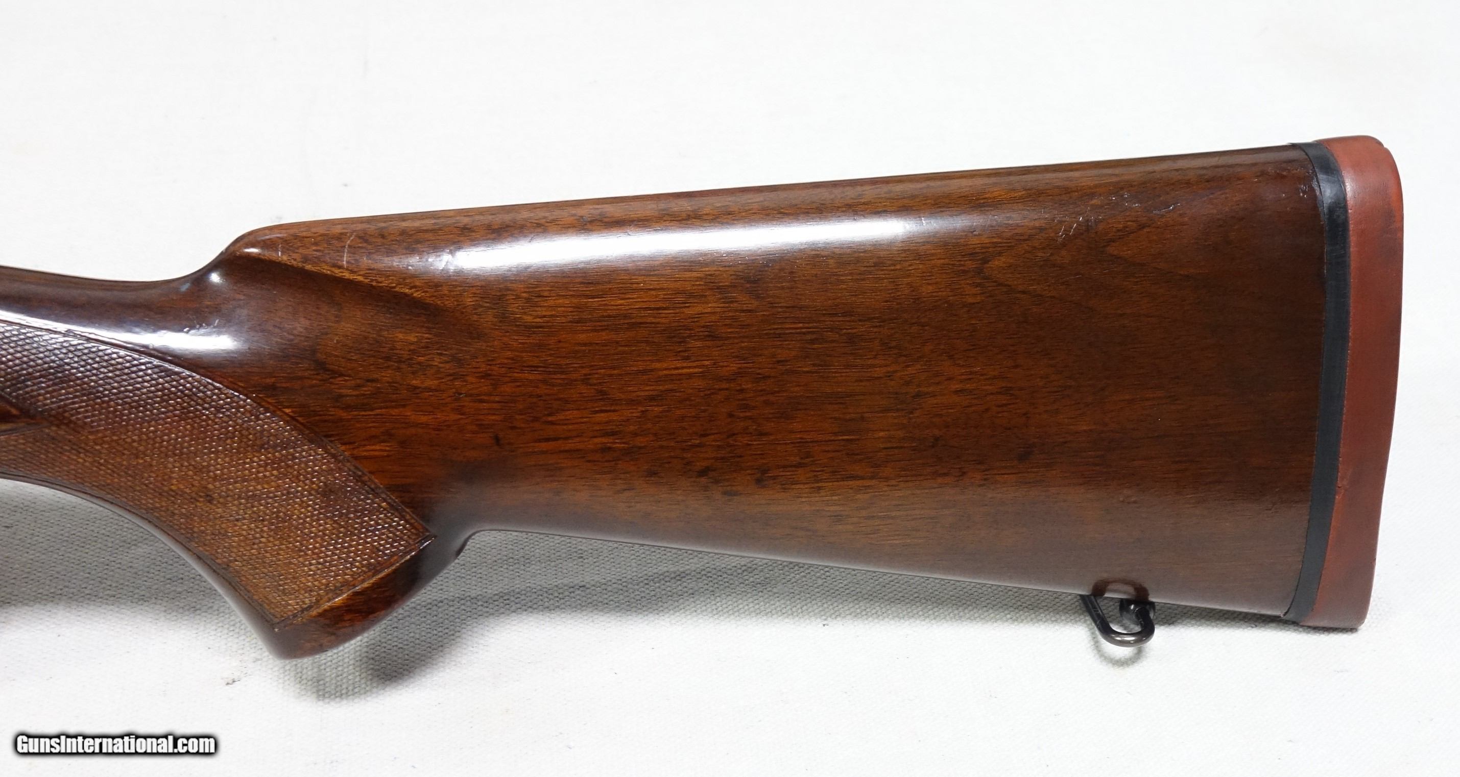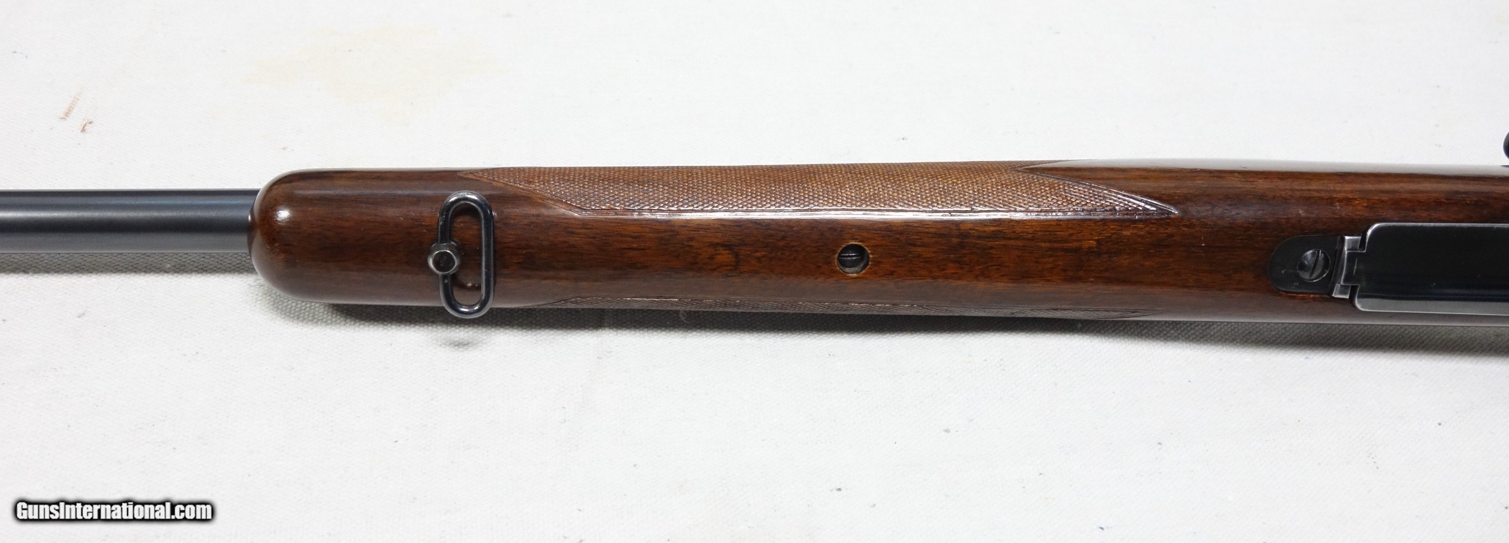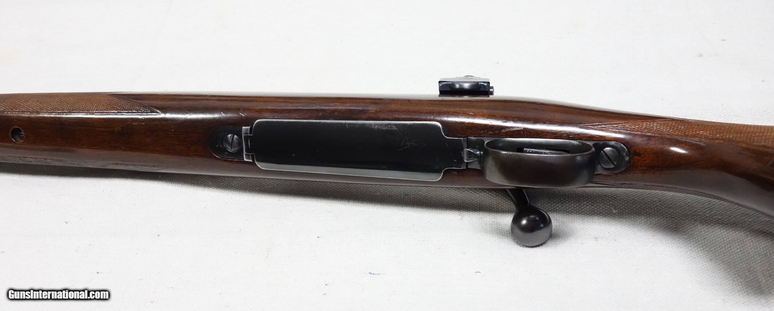 Description: EXTREMELY RARE Pre War Winchester Model 70 "Pencil Barrel" 375 H&H with 4 digit S/N 8418 sold in 1937. It has been stated in Roger Rule's superb reference book that fewer than ten .375s were ever made with this standard weight barrel. Dean Whitaker's book suggested that up to 100 may have been assembled onto actions. My extensive experience with this model over many years would tend to have me leaning more toward Mr. Rule's estimate! Whatever the number, it is at least among the very rarest possible Model 70s cataloged, if not the rarest. Nearly all subsequent 375s sold after these first few in 1937 had much heavier barrels. The metal condition on this rifle is superb given its age, showing about 97% original blue throughout. The rear receiver bridge is undrilled. The wood shows numerous light handling marks, but nothing distracting and no cracks inside or out. I think 95% would be a fair estimate of wood finish. The standard weight barrel channel is free of any alteration and the stock wears an original and still soft factory recoil pad as issued on all 375s. The rear sight provision is the early and rare Lyman 57W receiver sight which was a factory option at the time. This sight was designed to clear the wood completely so there is none of the usual damage underneath it from the base or elevation screw. It is apparent that there has never been a 22g rear sight installed as evidenced by the lack of any elevator track whatsoever on top of the barrel. The barrel's rear sight dovetail has a factory correct Lyman 12S filler blank, although this one is of somewhat later production with the rounded and more streamlined edges. The barrel is 24" with an excellent bore. All mechanical functions are silky smooth and working correctly. A very special and conservatively priced rifle for the advanced collector. Please add $100 for expedited and fully insured shipping from Alaska to your receiving FFL dealer. SOLD Curio/Relic: Yes |