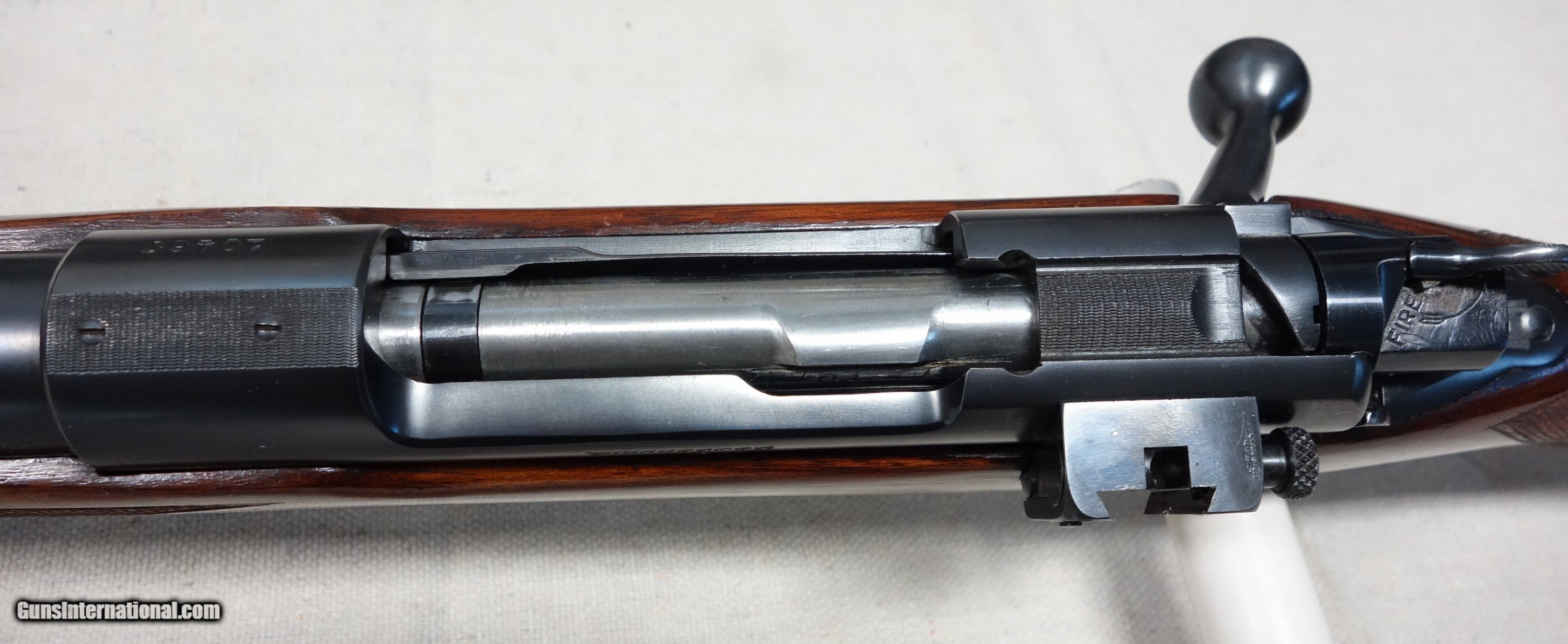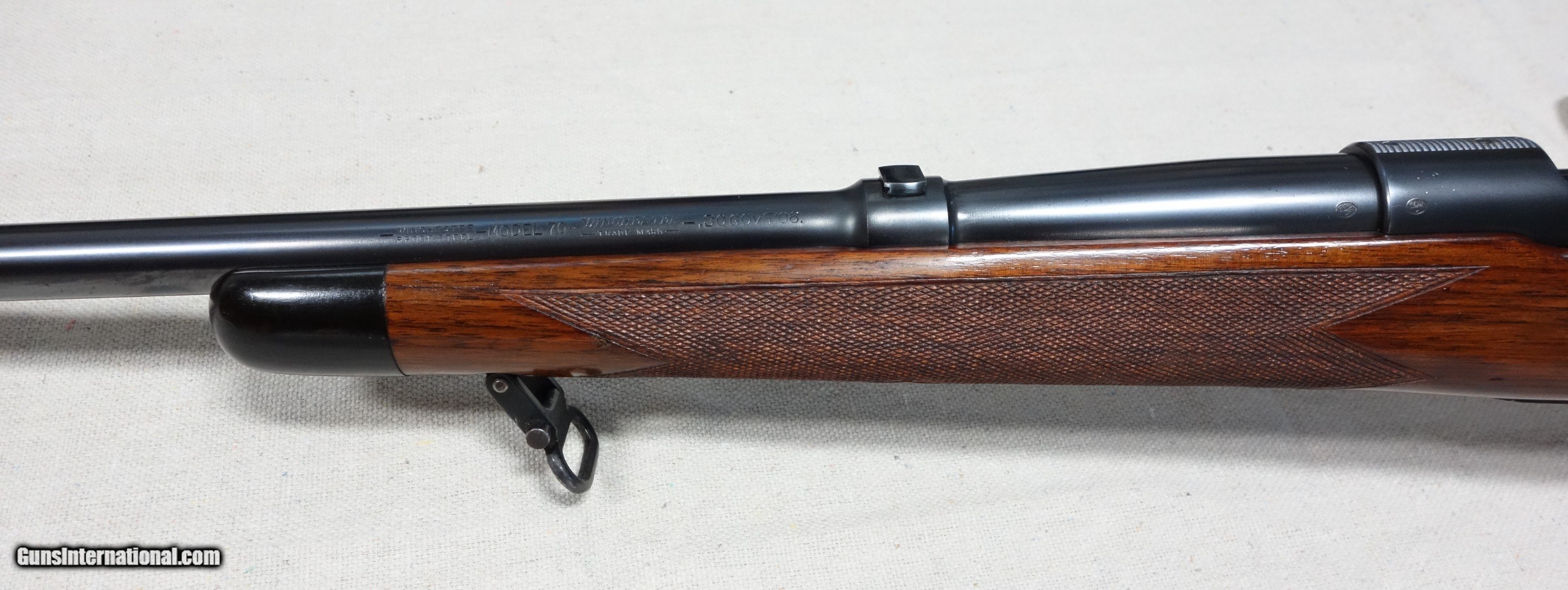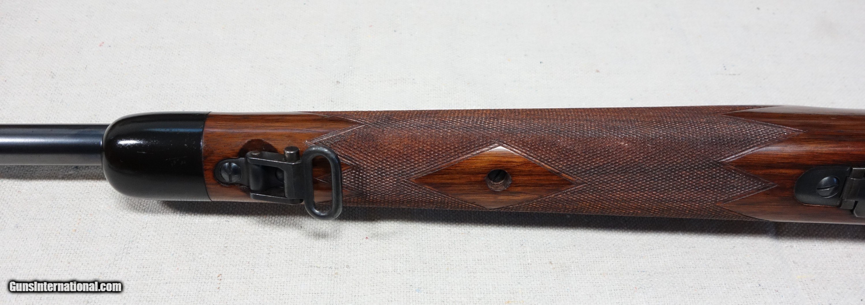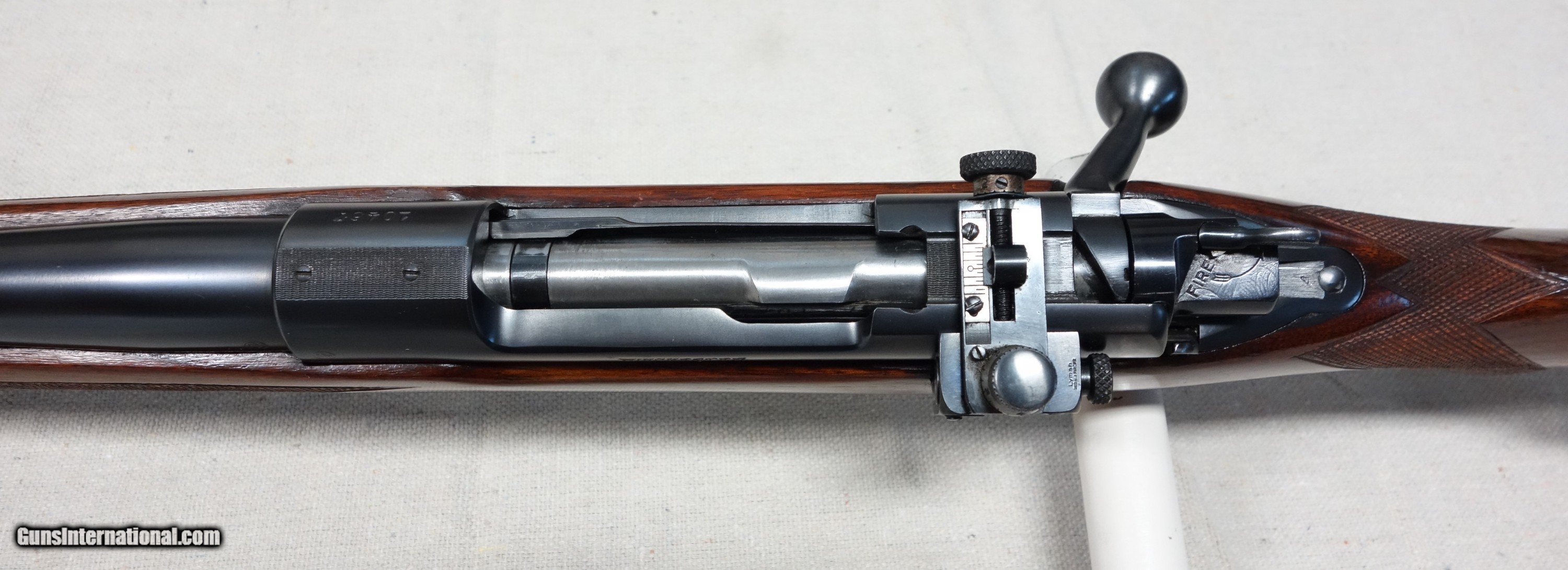 Description: ***SOLD*** Fantastic early S/N Pre War Model 70 Super Grade in 30-06 caliber. S/N 10467 with matching scribed bolt made in 1937. Superb condition throughout with lustrous original finishes showing 97-98% and only minimal handling marks. Incredible workmanship and details on these first guns with a gorgeous rust blued barrel and polished carbonum blued receiver, along with the beautiful deluxe stock. All special Super Grade appointments and small details are present, original and correct, including the issued Redfield front sight, and the uniquely profiled Pre War detachable swivels. The rear sight consists of the correct factory installed early Lyman 48 WJS with thimble knobs. All component #s are matching on this sight. There is also the proper Lyman 12S filler in the rear sight barrel dovetail. 24" barrel with minty bore and perfect, crisp mechanics as usual. Regarded by those who would know as the finest production sporting rifle ever conceived, this is precisely the rifle so often envisioned, and the one to which all others are compared. Surely among the very best of the few genuine examples you will ever see offered! Expedited and fully insured shipping from Alaska is an additional $100 SOLD Curio/Relic: Yes |