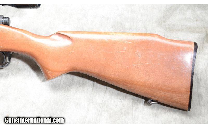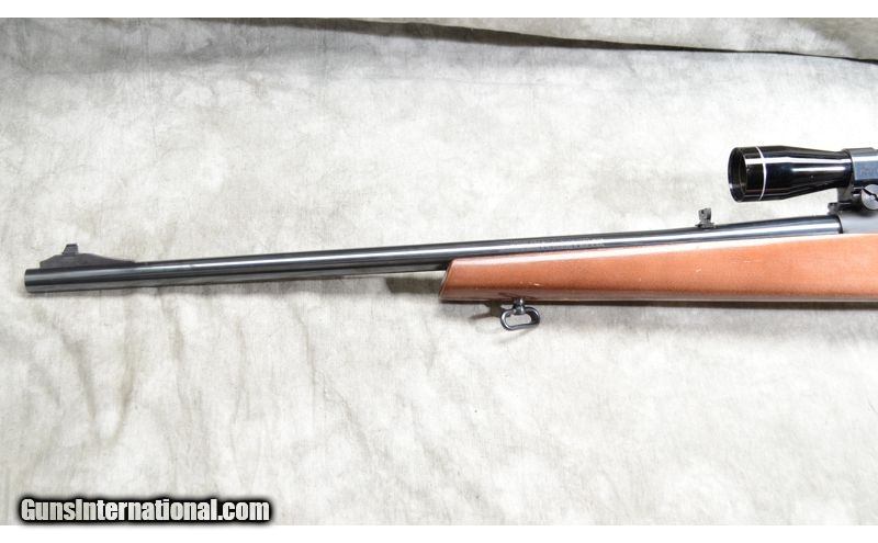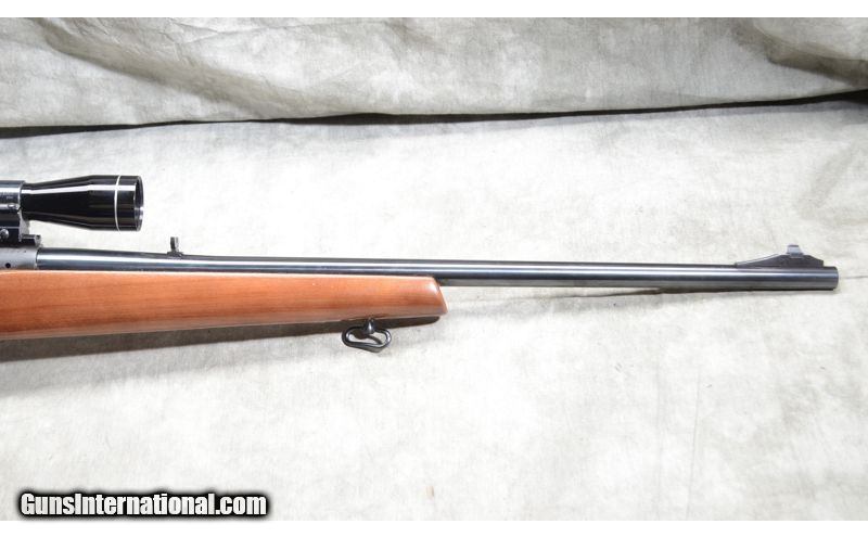 Description: .30-06 Springfield SOLD Chambers: 3 - round internal magazine. Metal Condition: Very good. Wood Condition: Good. Barrels: 22 Inch - blue, with open sights. Triggers: Factory trigger. Stock Dimensions: 13 - 3/8 inch LOP. Butt Pad: Black plate. Sights: Gold bead and notch open sights. Drilled and tapped for your choice of scope. Outfitted with a Tasco 3-9x scope. Item Location: Rogers |
