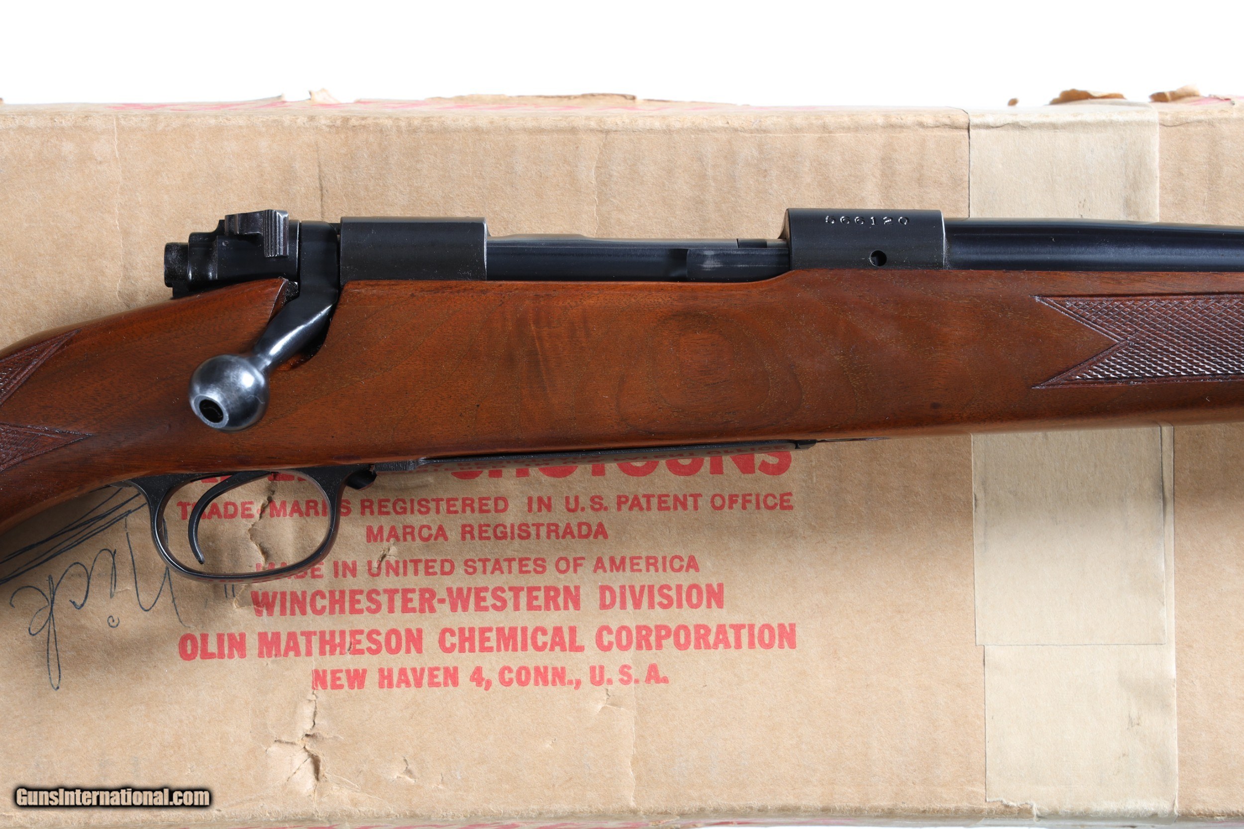 Description: Excellent plus overall condition with factory box. • Free Shipping, No Credit Card Fees. • Lay-a-way available for this firearm. • 1/3 Down, a 1/3 in 30 Days 1/3 in 60 Days. SOLD Curio/Relic: Yes Manufacturer: Winchester Model: 70 Serial Number: 566120 Barrel Length: 24 |