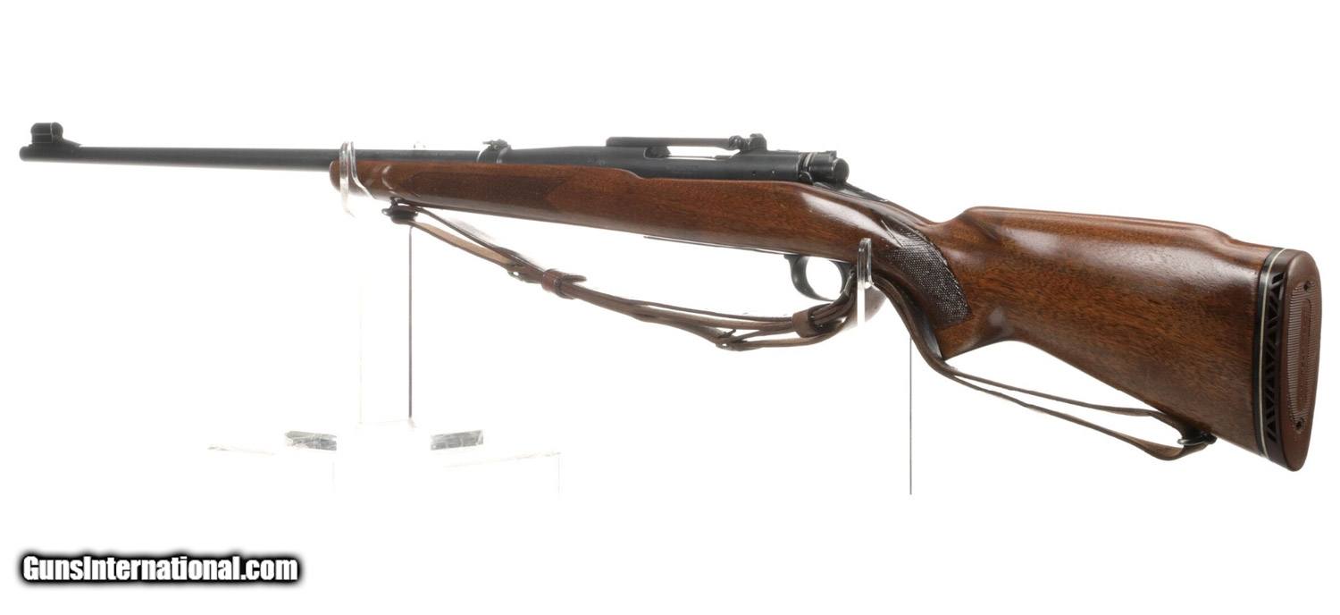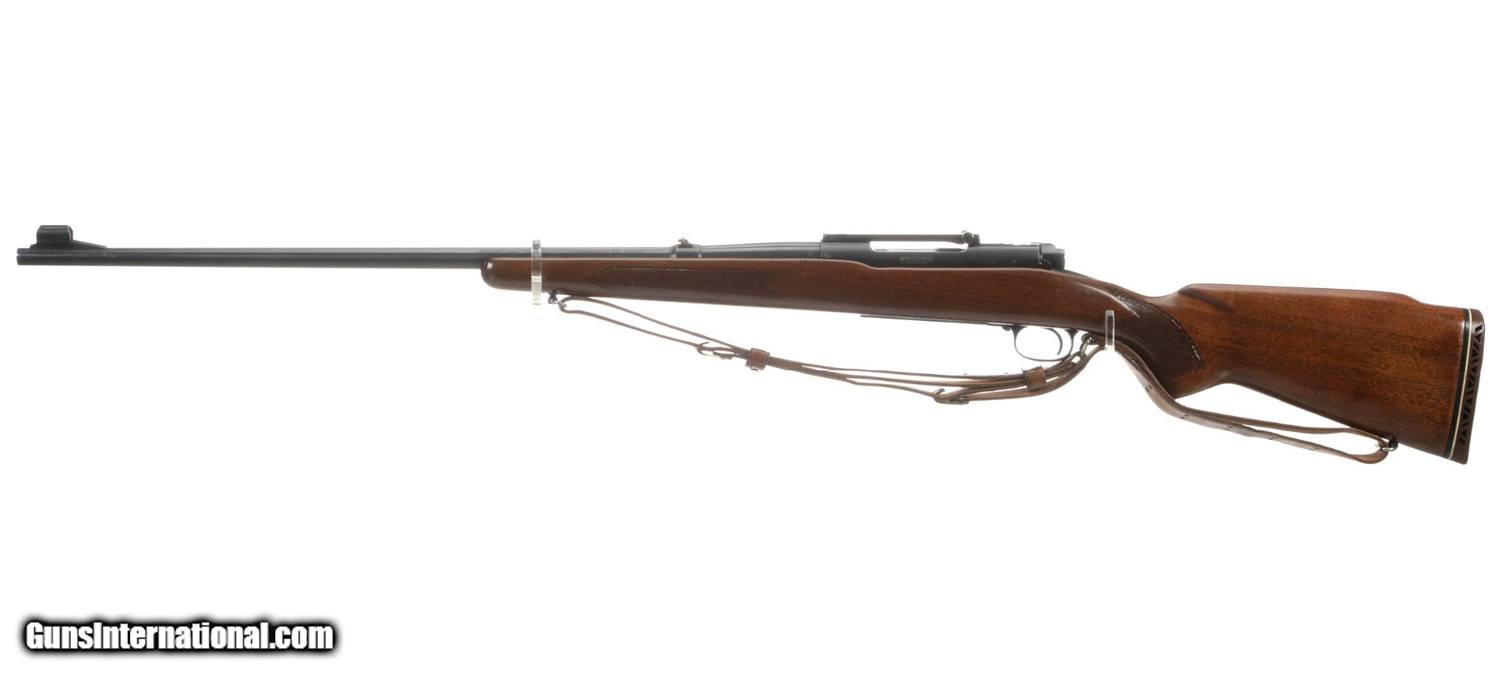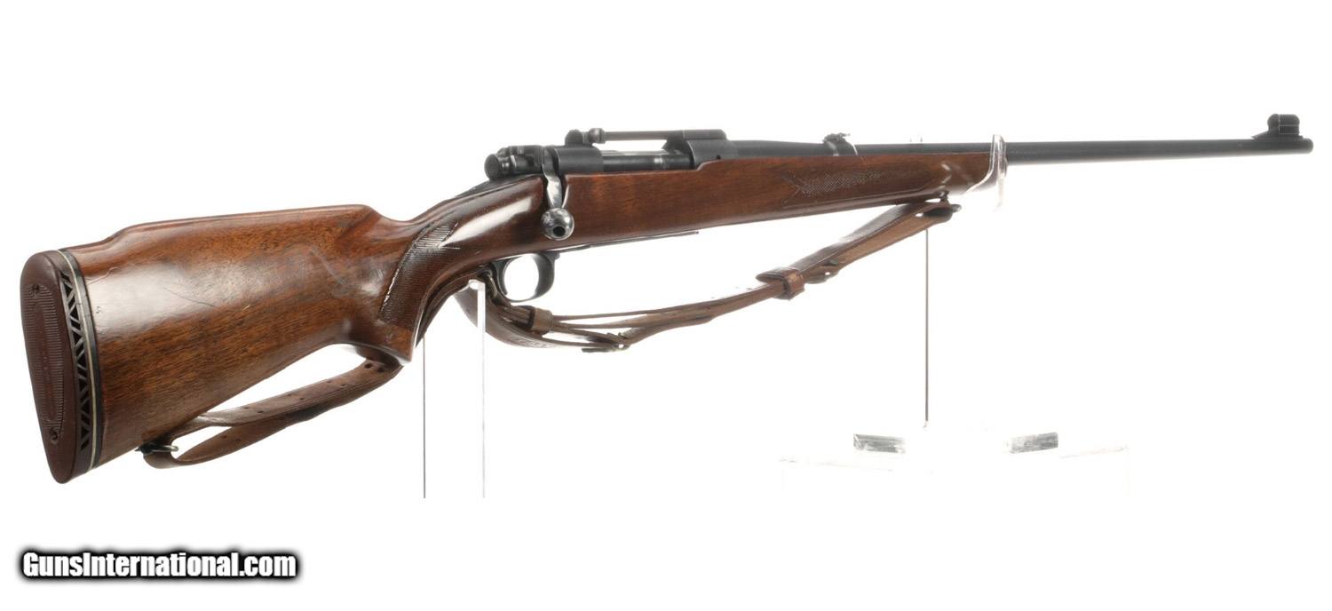 Description: Good metal, 95% blue, sights intact, strong bore, 26" barrel, stock has been sanded and refinished (appears to be Tru Oil) with finish in the checkering. PM white line pad fitted, 13 1/8" LOP, also one piece Redfield scope base. Yes the number on the bolt matches the number on the receiver. Bolt handle has been shaved a tad to clear a scope. SOLD |