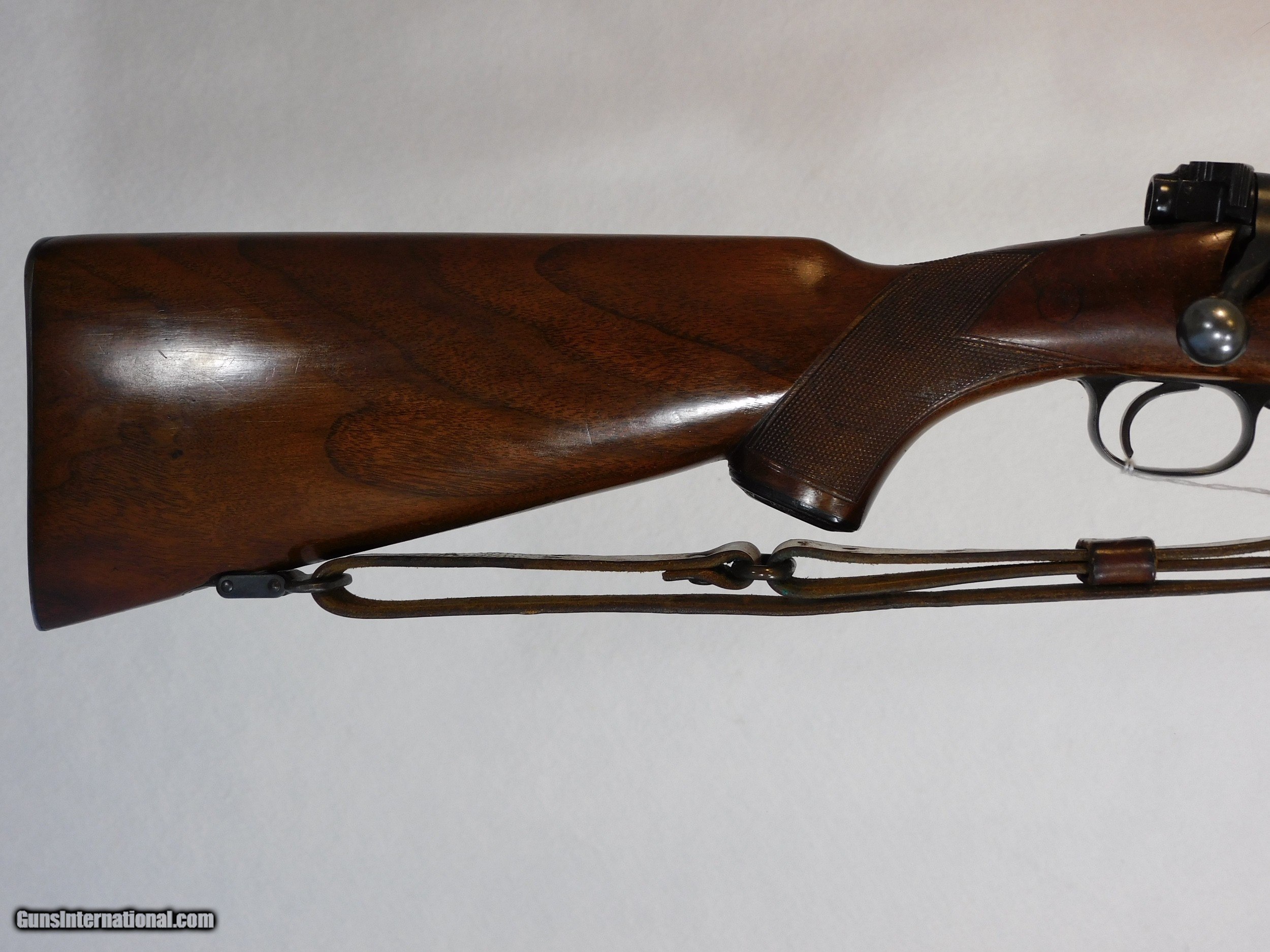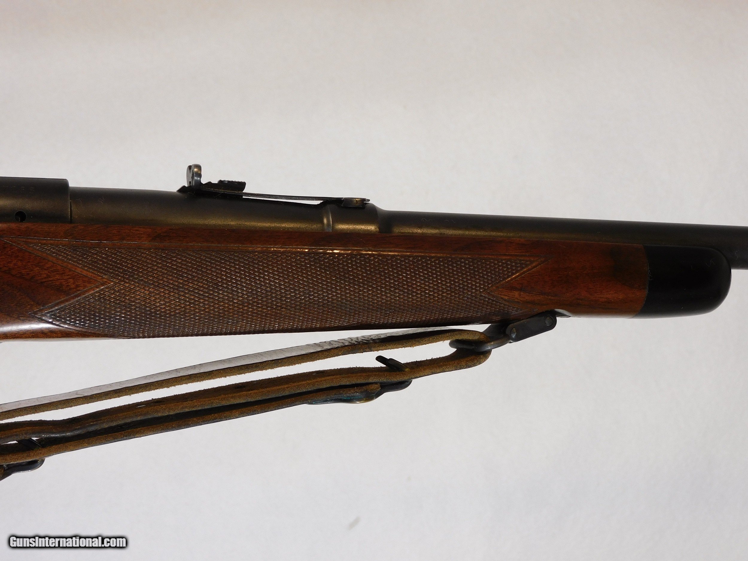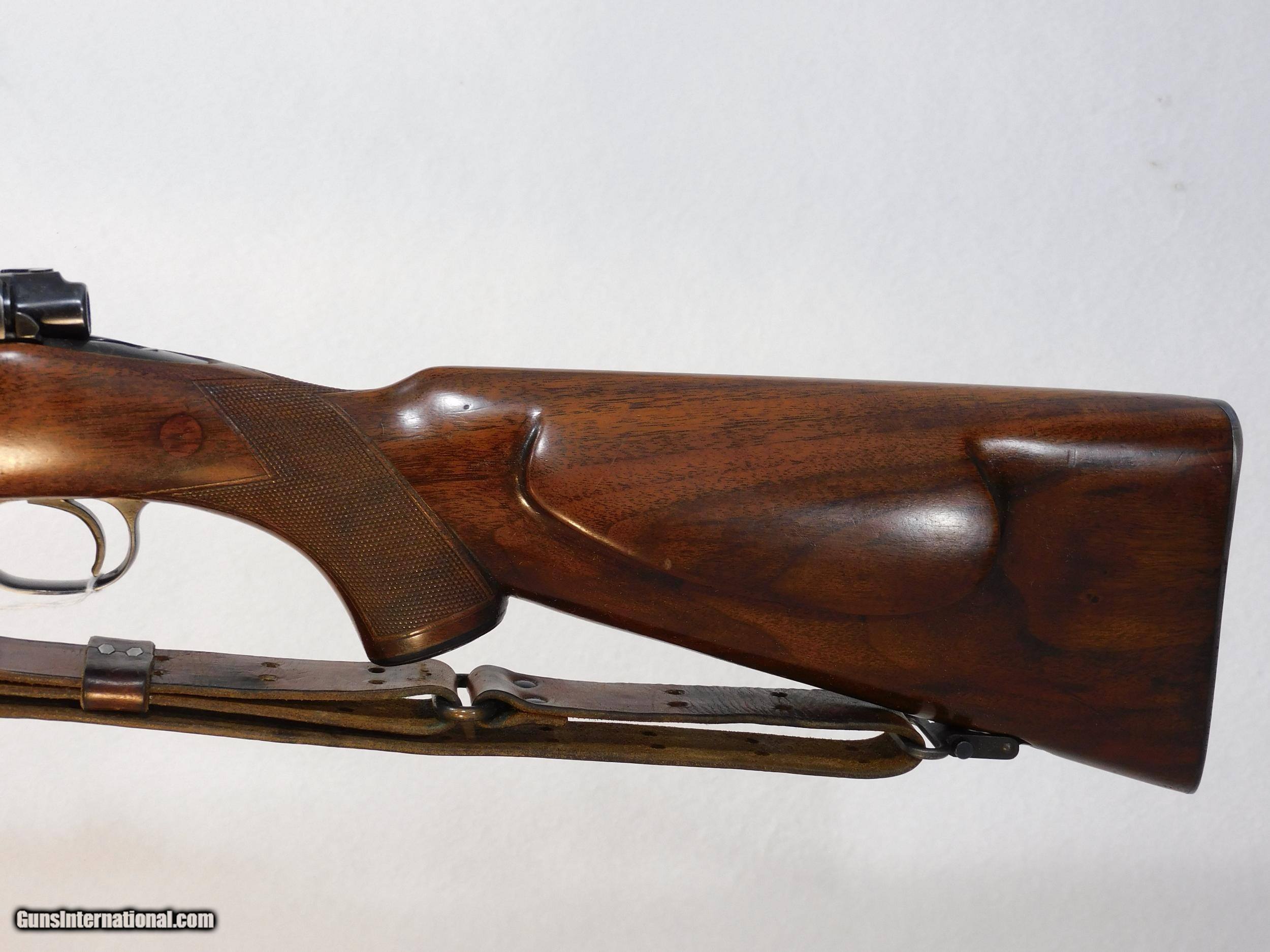 Description: #989 WIN. MODEL 70 SUPER GRADE, 220 Swift, SN 1372XX, 26” stainless steel bbl., made in Jan. 1950, exc. bore, checkered fine grain wood, cheekrest, horn forend tip, marked “Super Grade” on bottom of floor plate, leather sling, reinforced grip area, ramp hooded front sight, original open rear sight, 97% blue. $3950 FFL required SOLD Curio/Relic: Yes |