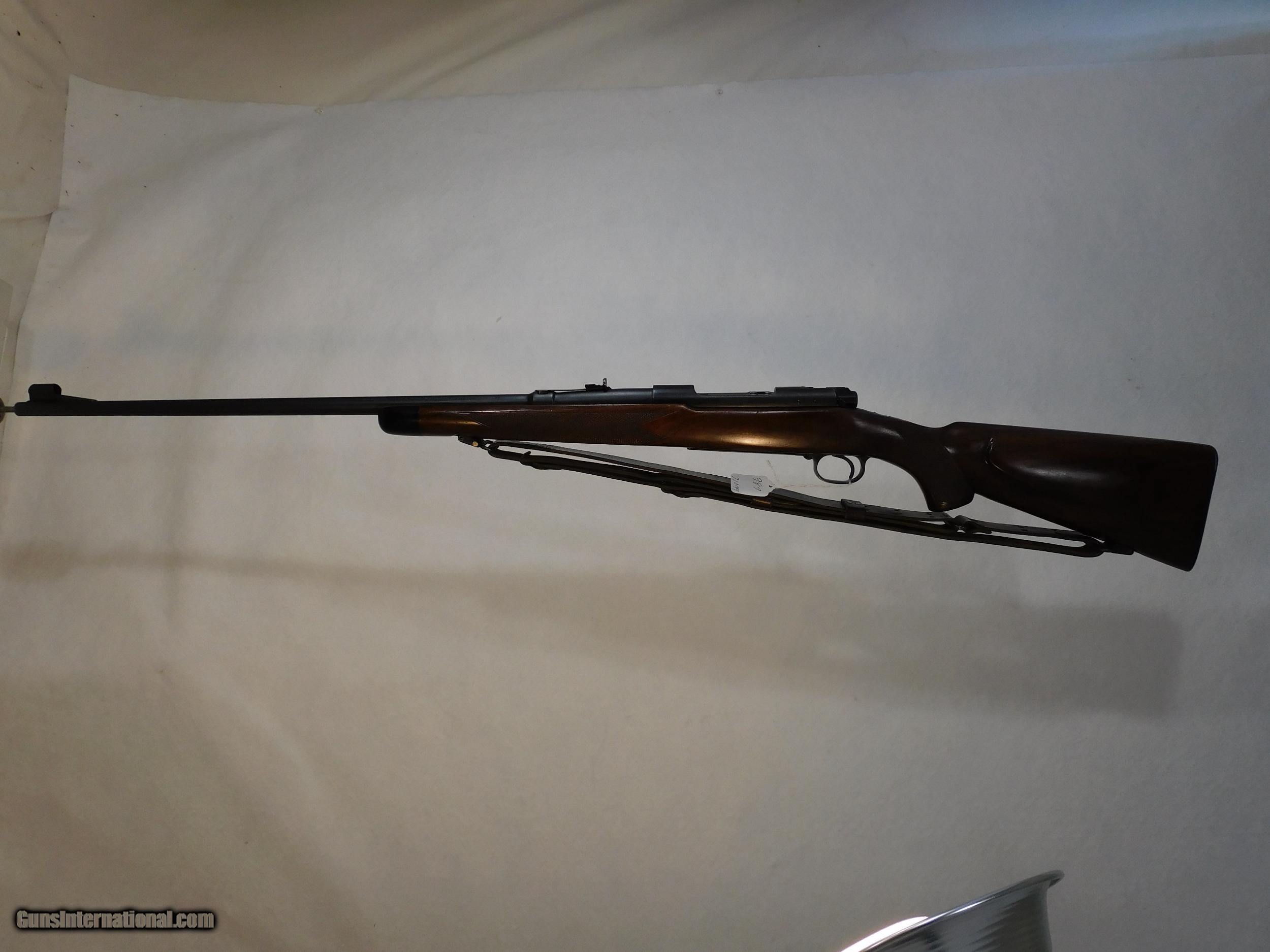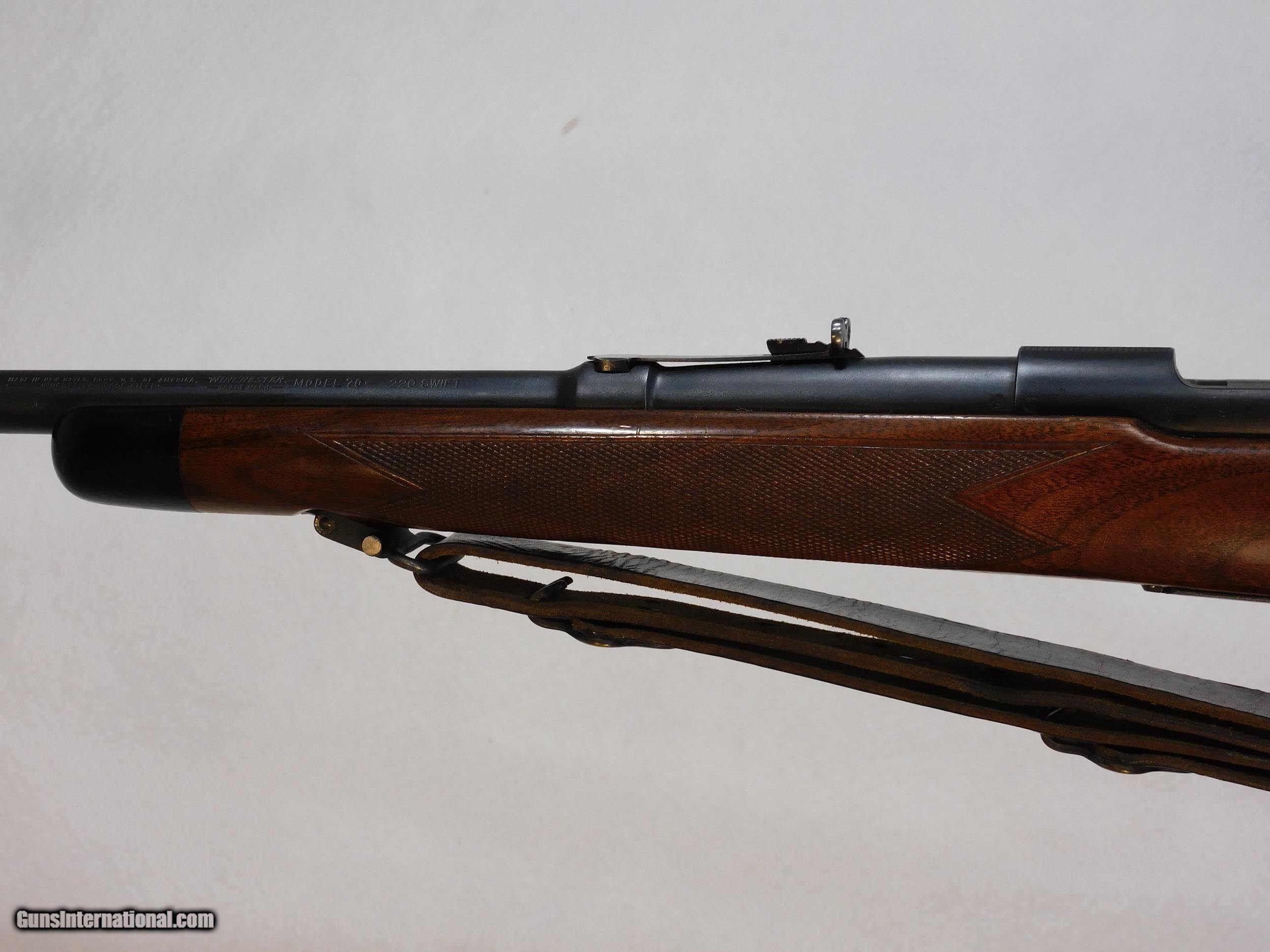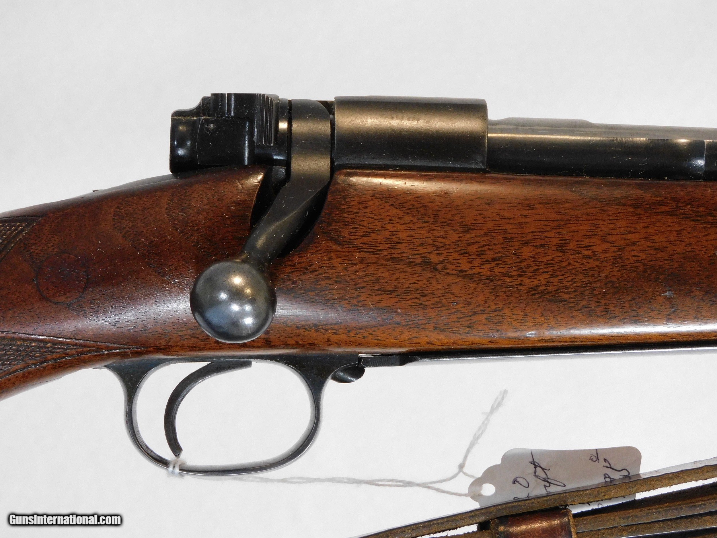 Description: #989 WIN. MODEL 70 SUPER GRADE, 220 Swift, SN 1372XX, 26” stainless steel bbl., made in Jan. 1950, exc. bore, checkered fine grain wood, cheekrest, horn forend tip, marked “Super Grade” on bottom of floor plate, leather sling, reinforced grip area, ramp hooded front sight, original open rear sight, 97% blue. $3950 FFL required SOLD Curio/Relic: Yes |