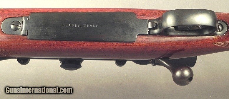 Description: #225948, Winchester 270 Win. Model 70 Pre-64 Super Grade, Made in 1952, This piece was completely refinished on both the metal and stock, 24" barrel without any open sights, I am not sure it ever had open sights as the typical dog knot on Model 70 barrels had a dovetail cut and this barrel has no sign of ever having it cut, The barrel has all of the proper Winchester script, Leupold 3.5 x 10, 2 piece scope bases with each having a lever release,, Standard 3 position safety, Standard Model 70 hinged floorplate, Monte Carlo comb stock, Super Grade wrap around point pattern checkering, Super Grade double screw sling eyes and Super Grade swivels, Cheekpiece, Forend tip, Proper WRAC grip cap, 13 11/16" LOP over the correct steel buttplate, 9 lbs. 10 oz. with the Leupold installed, The blue now is 99%, The renewed wood finish now at 98%, The checkering was not re-cut and remains at 98%, The bore is excellent plus. SOLD Curio/Relic: Yes Rifle Caliber: .270 Winchester |