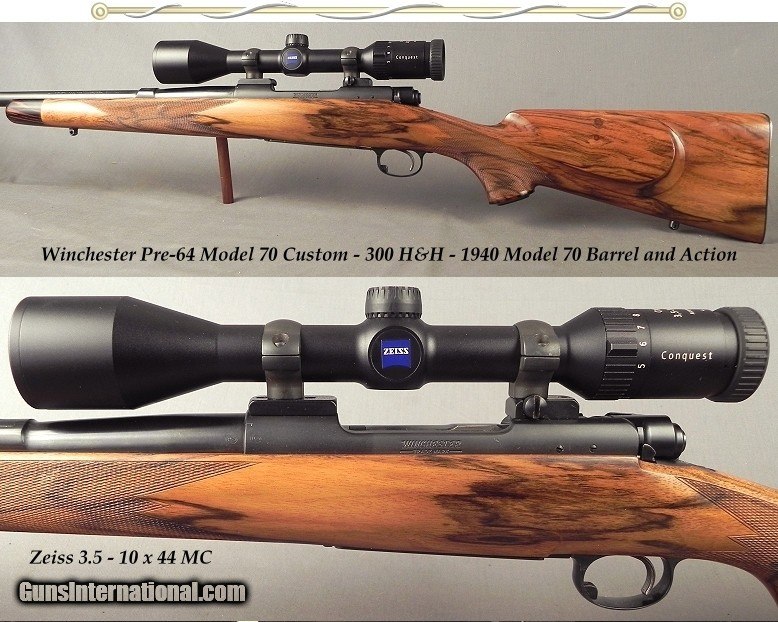 WINCHESTER 300 H&H- PRE-64 MOD 70 Bbld. ACTION CUSTOM- VERY NICE CUSTOM ENGLISH WALNUT- ZEISS 3.5 x 10- 26" FACTORY Bbl.- 1940 MOD 70- NICE RIFLE