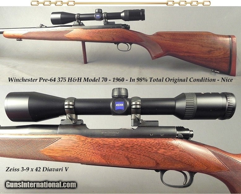 WINCHESTER 375 H&H MOD 70 PRE-64- 98% ORIG. COND.- LIKE BUYING it NEW 61 YEARS AGO- 98-99% ORIG. BLUE- 98% WOOD- BORE as NEW- $4100 WITH the ZEISS