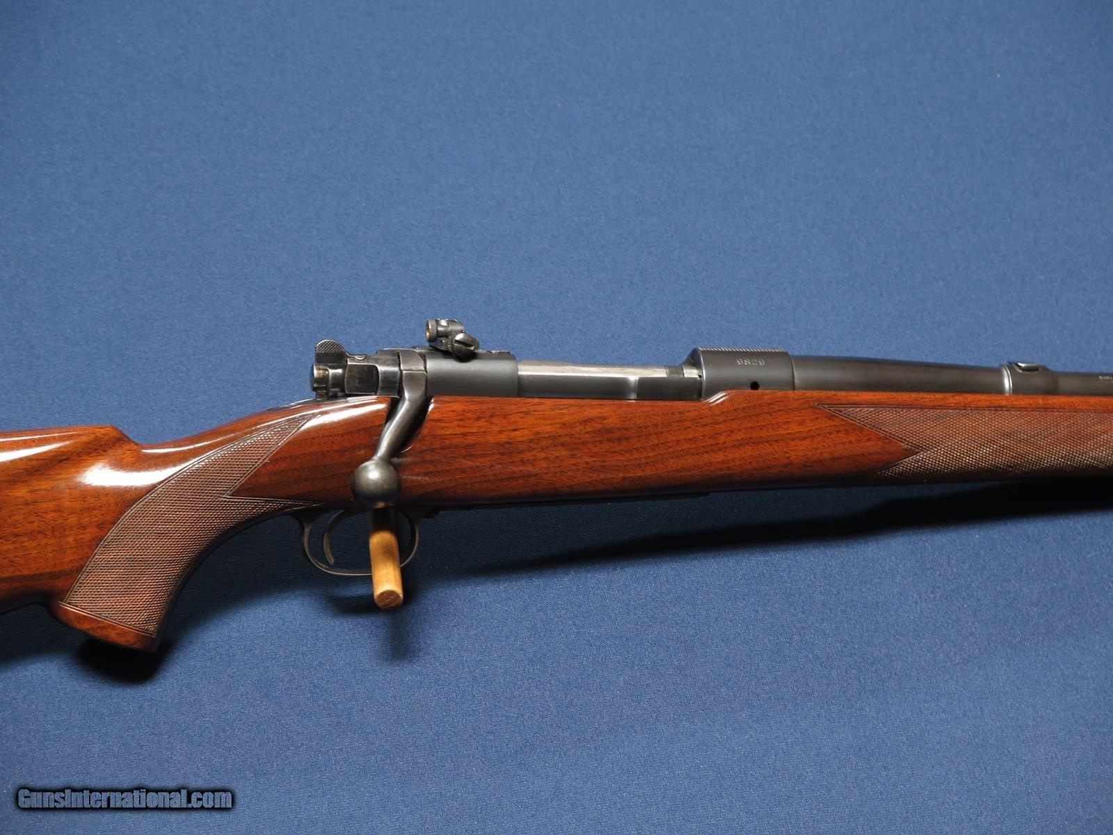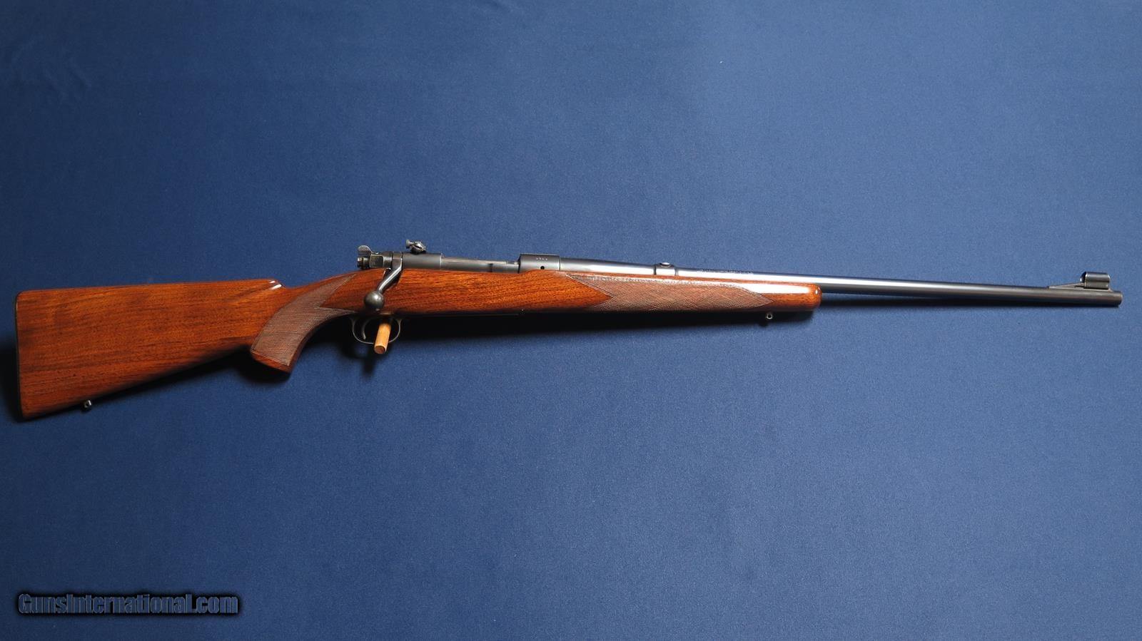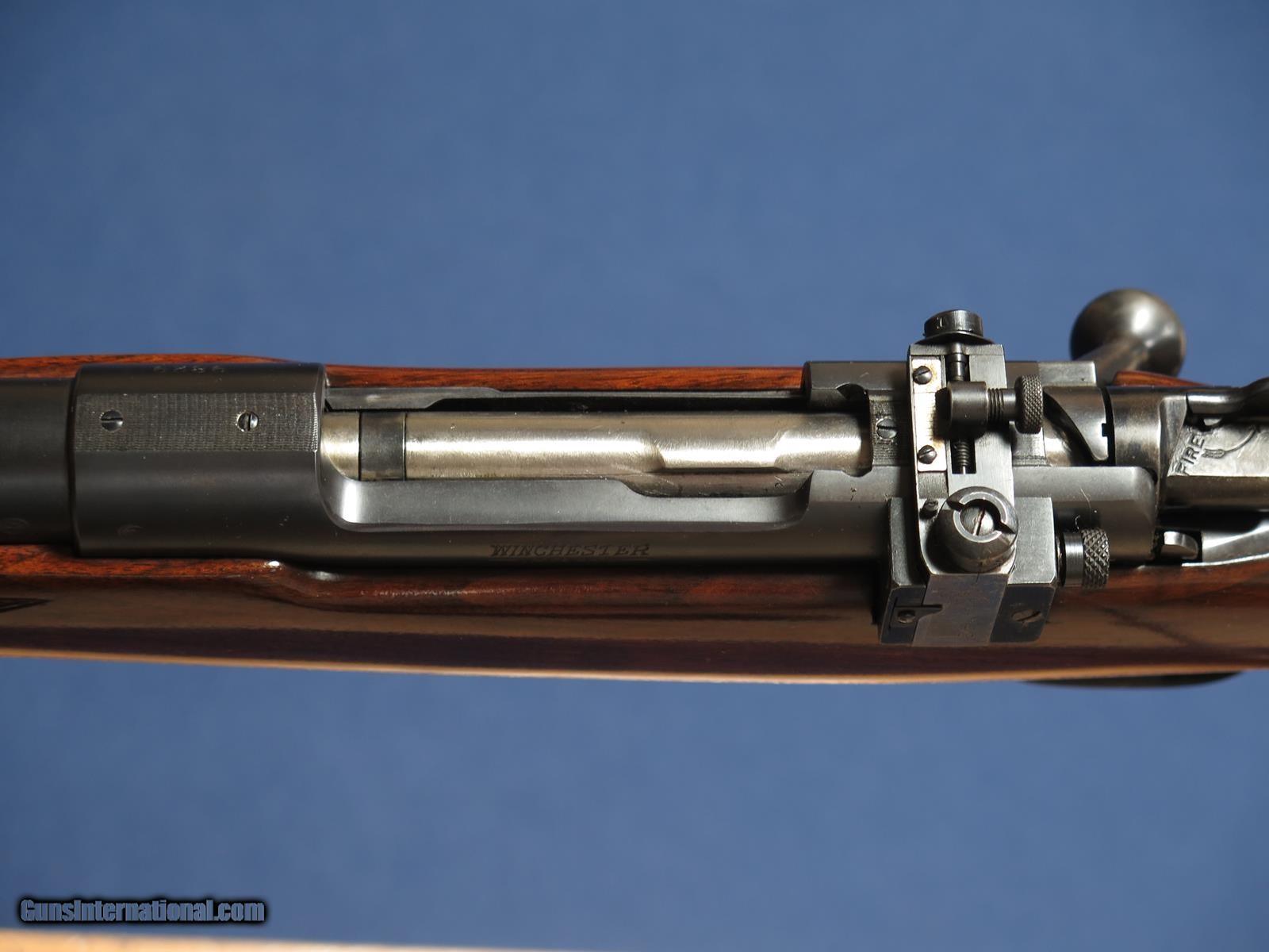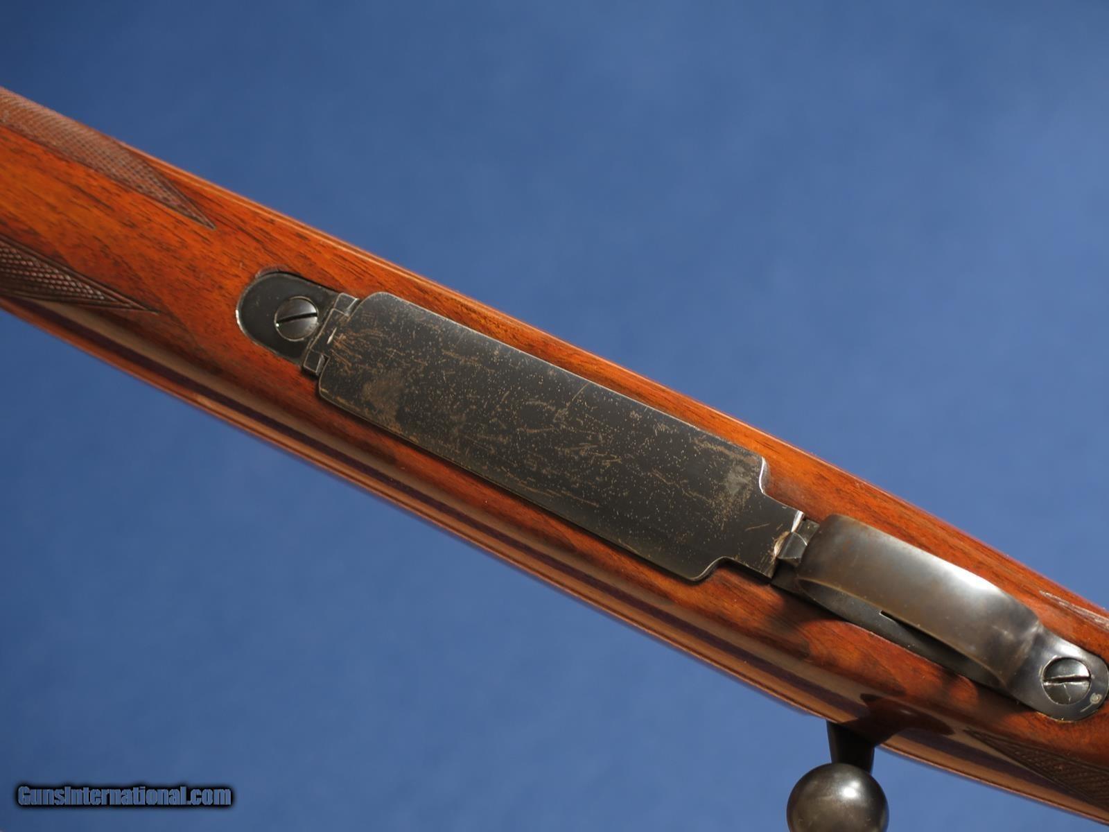 Description: Winchester 70 pre 64 22 Hornet. 4 digit serial number Pre war 1937 mfg. Clover leaf top tang. 24 inch barrel. Lyman WJS rear sight. Has one scope mount hole in top of receiver rear bridge. Steel butt plate. Very nice condition, excellent bore. SOLD Curio/Relic: Yes Rifle Caliber: .22 Hornet |