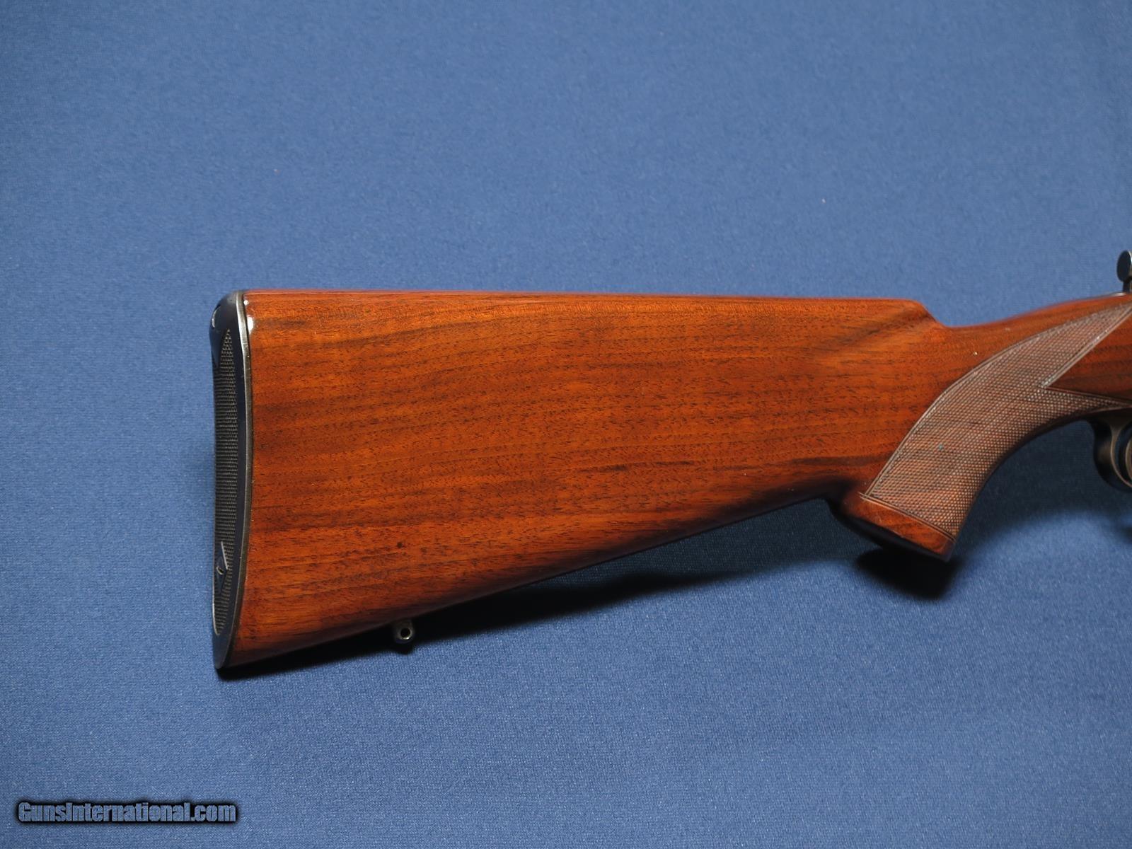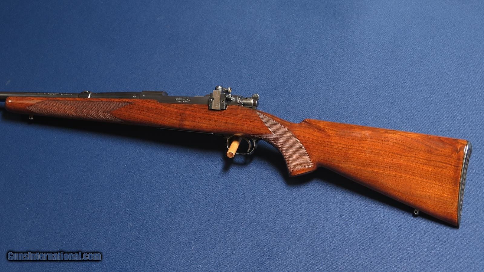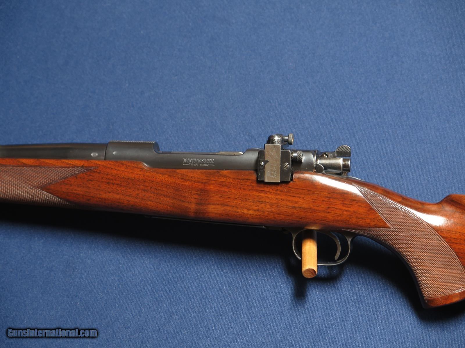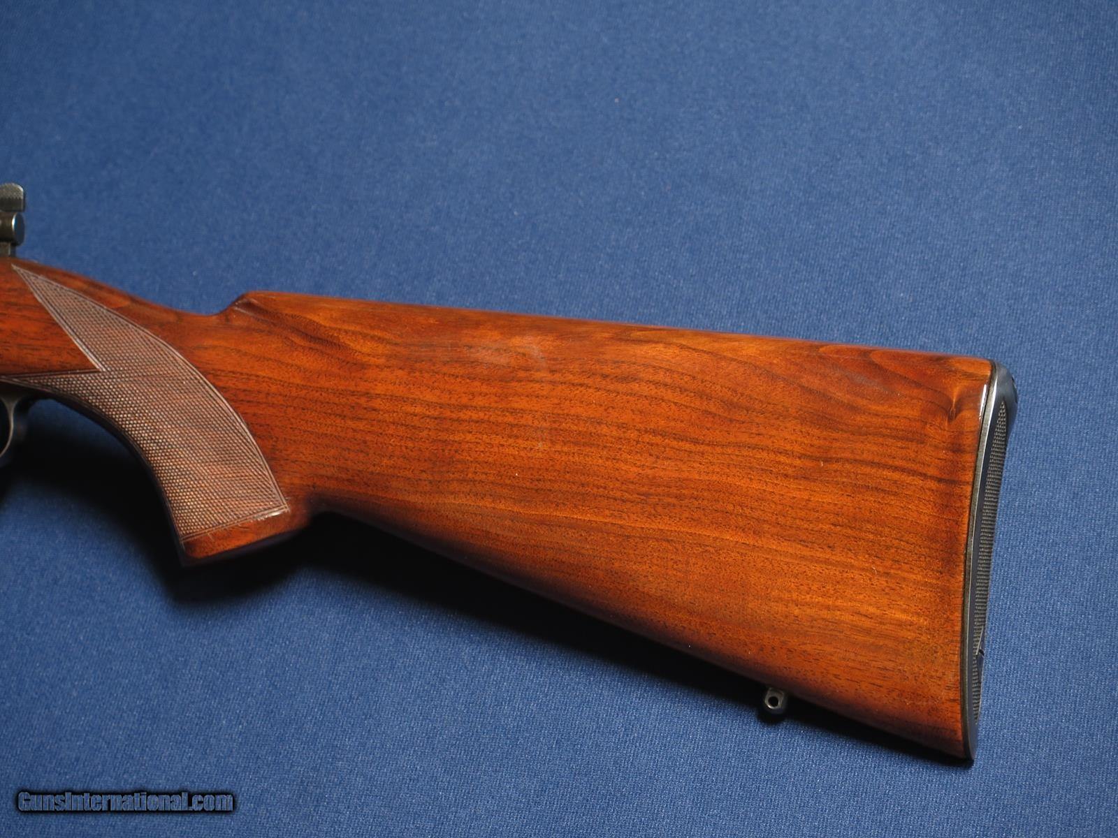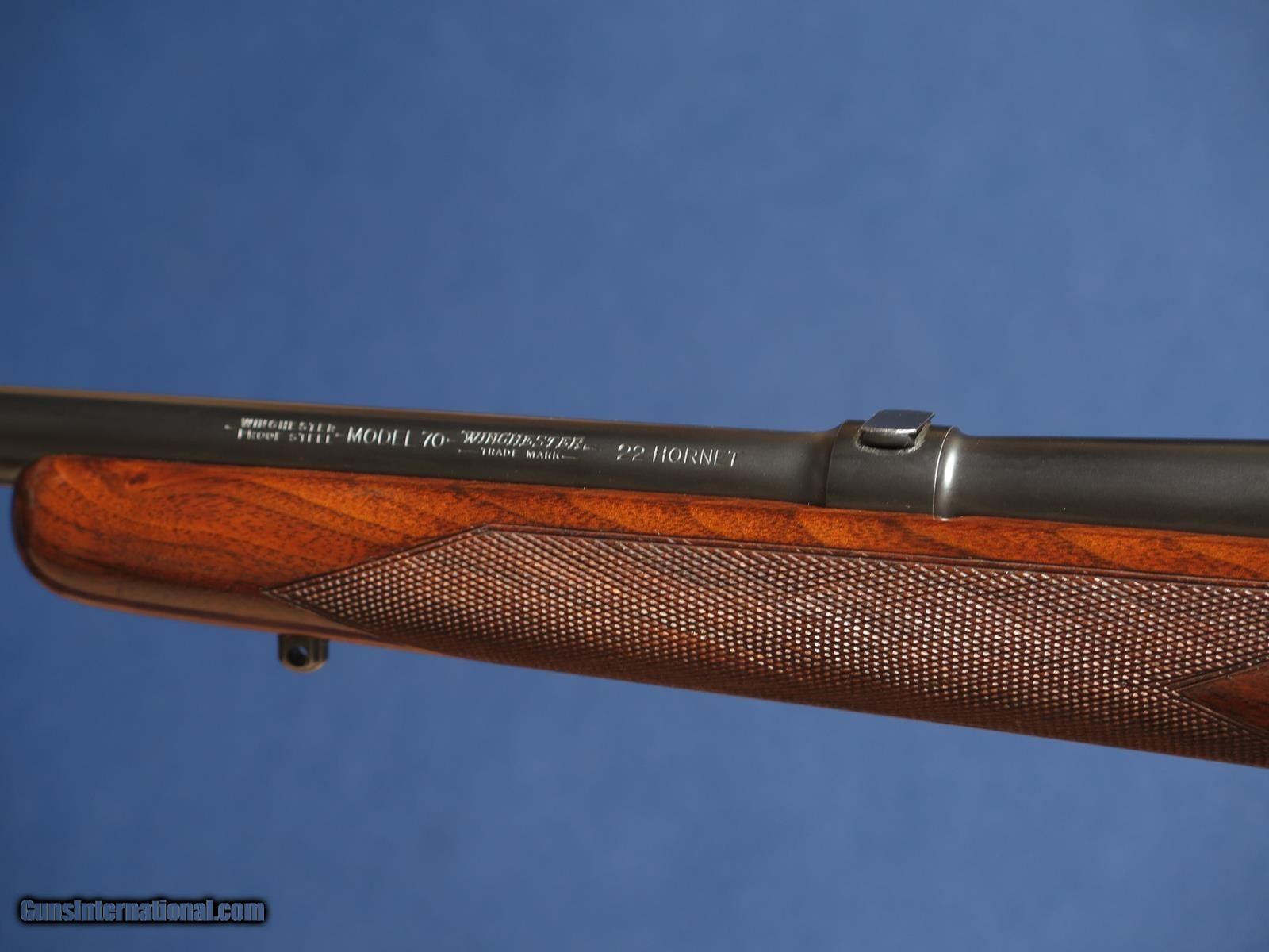 Description: Winchester 70 pre 64 22 Hornet. 4 digit serial number Pre war 1937 mfg. Clover leaf top tang. 24 inch barrel. Lyman WJS rear sight. Has one scope mount hole in top of receiver rear bridge. Steel butt plate. Very nice condition, excellent bore. SOLD Curio/Relic: Yes Rifle Caliber: .22 Hornet |