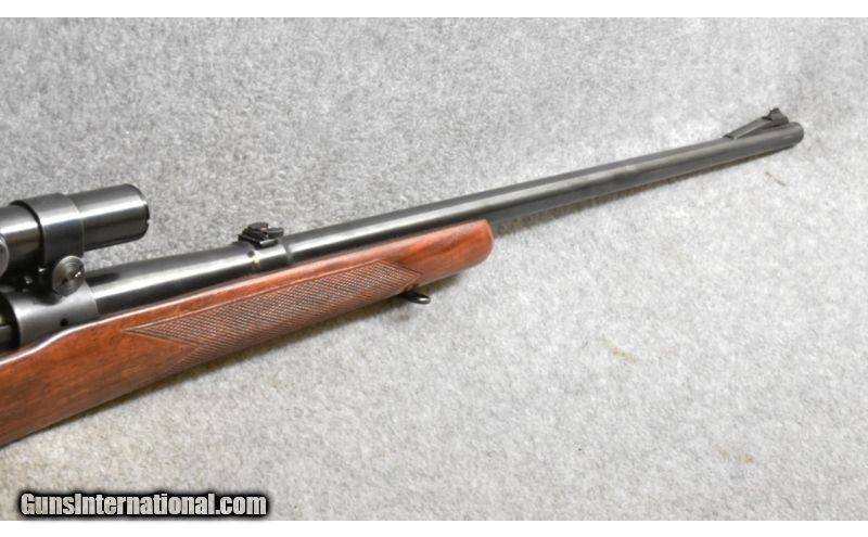 Description: Winchester 70 in .270 Win. 1952 Production. Weaver K25 60-B scope and Weaver scope rings. SOLD Curio/Relic: Yes Manufacturer: 1952 Caliber Info: .270 Win. Metal Condition: Very good, a few scratches. Wood Condition: Very good, a few scratches and dings. Bore Condition: Dull, strong rifling. Barrels: 24 inch. Triggers: Single curved trigger. Stock: Checkered, Prince of Wales style, wood. Stock Dimensions: 13 1/2 inch LOP. Fore End: Straight, checkered, wood. Butt Pad: Metal plate. Weight: 9 lbs. Sights: Weaver K25 60-B scope, fixed partridge front, buckhorn U-notch rear. Item Location: Kansas City, KS |