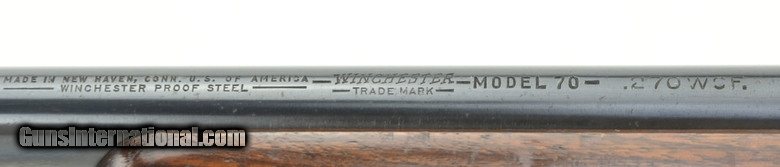 Winchester 70 .270 Win caliber rifle. Pre-’64 Winchester model 70 made in 1947. Has a 24” barrel, with a Lyman peep sight, and original metal butt plate. The stock shows signs of honest field wear. Original blue is approximately 96%. An early Winchester model 70 at an attractive price!