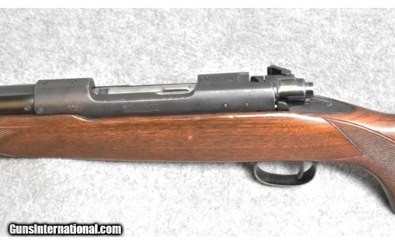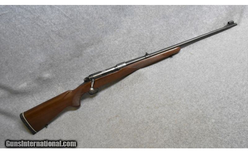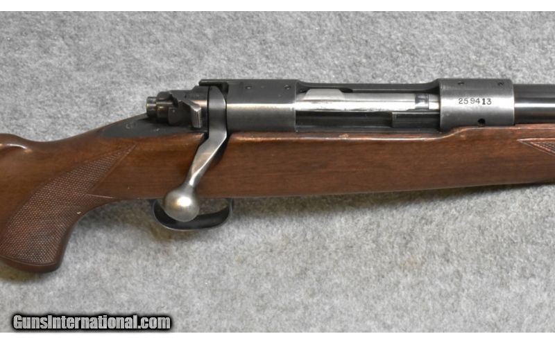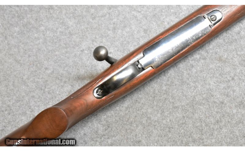 Description: Winchester 70, 1953 Production, bolt body is numbered to rifle. SOLD Curio/Relic: Yes Manufacturer: 1953 Caliber Info: .30-06 Spg. Metal Condition: Very good, light faded blue showing edge wear on action, floorplate has light pitting and blue loss along left side. Wood Condition: Very good, added coat of varnish over orginal, scattered scratches and marks. Bore Condition: Bright bore, strong rifling. Barrels: 24 inch. Triggers: Single curved trigger. Stock: Straight comb walnut, hand checkering. Stock Dimensions: 13 7/8 inch LOP. Fore End: Hand checkering, straight, walnut. Butt Pad: Aftermarket black ventilated White Line pad. Weight: 8 lbs. Sights: Hooded ramp bead front, folding leaf rear. Item Location: Kansas City, KS |