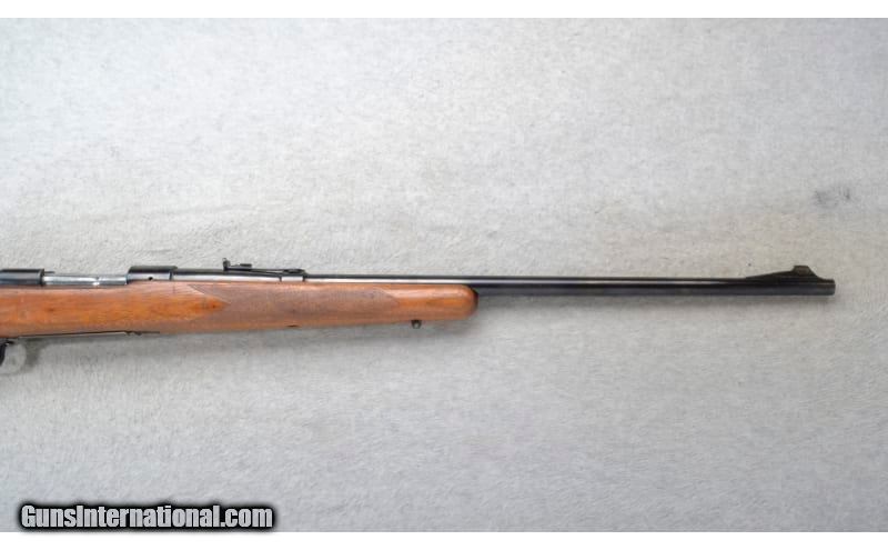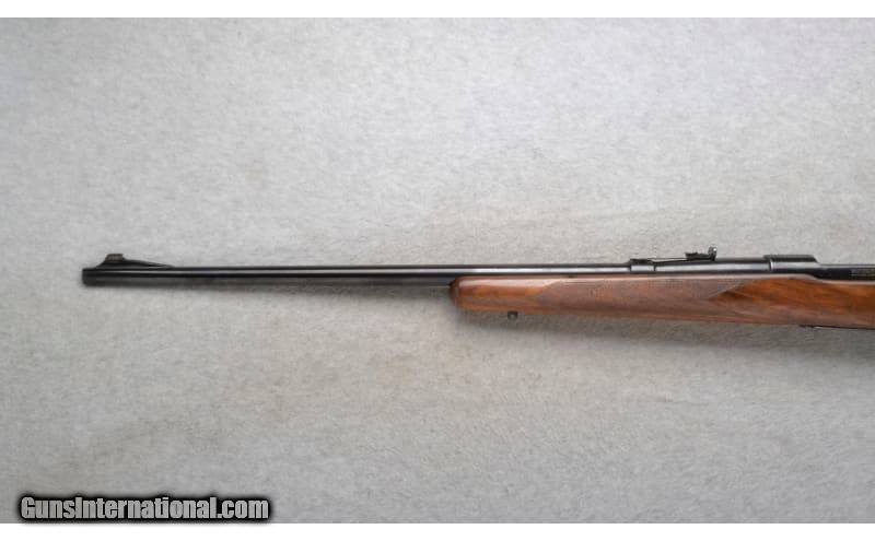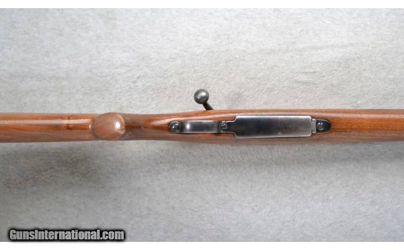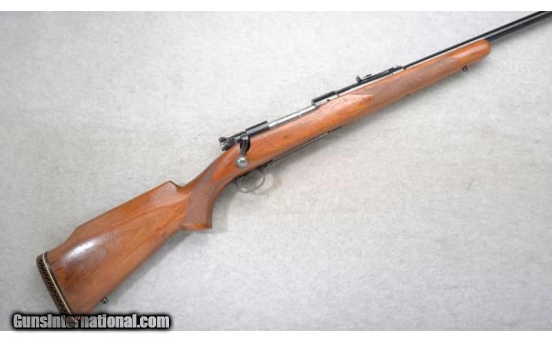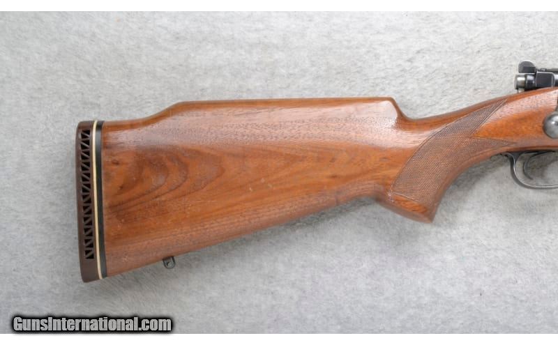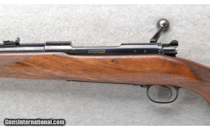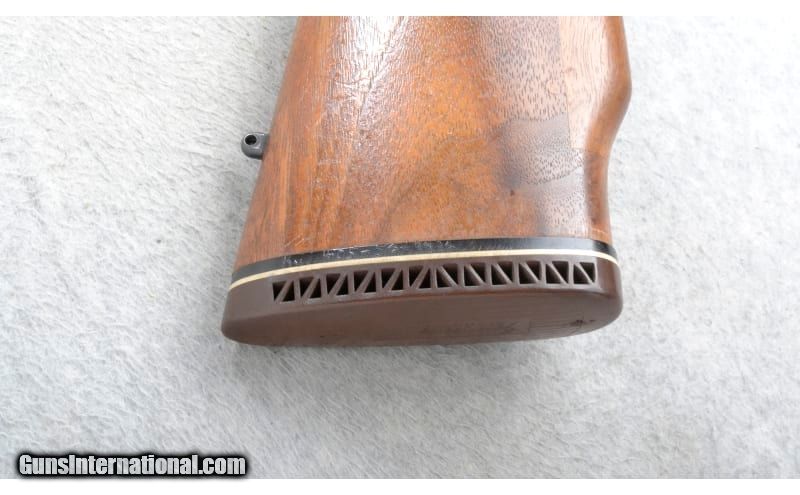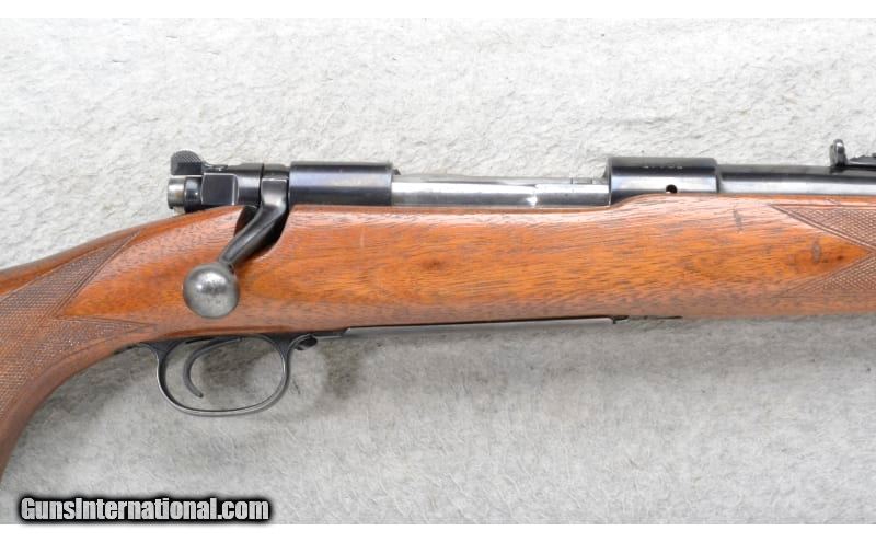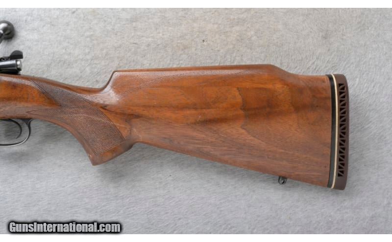 Description: This Winchester Model 70 is a right hand bolt action rifle in .30-06 Sprg. Cal. It has a 24 inch barrel. A raised blade front sight, Adjustable notch middle sight and is drilled and tapped for a scope mount. The butt stock is a checkered grip walnut pistol grip. The forearm is a checkered grip walnut. .30-06 Springfield SOLD Chambers: Internal magazine with a hinged floorplate. Metal Condition: Good. Some light handling/use marks and surface finish blemishes. Wood Condition: Good. Handling and use marks. Chip in the pistol grip cap. Bore Condition: Excellent. Barrels: 24 inch. Stock Dimensions: LOP 13 3/4 inches. Fore End: Checkered grip walnut. Butt Pad: Pachmayr brown rubber recoil pad. Weight: 8 lb. 2 oz. Sights: Raised blade front. Adjustable notch middle. Drilled and tapped. Item Location: Richfield, WI |