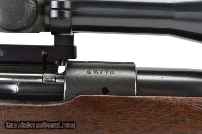 Winchester 70 .30-06 caliber rifle. Made in 1942. Rifle has a Paul Jaeger quick detachable scope mount and a Weaver Vq-W 3-9X scope. Very good condition with some field wear.