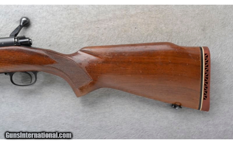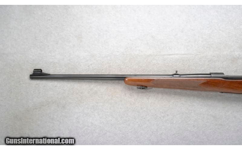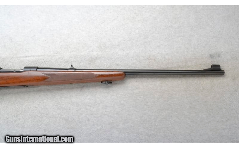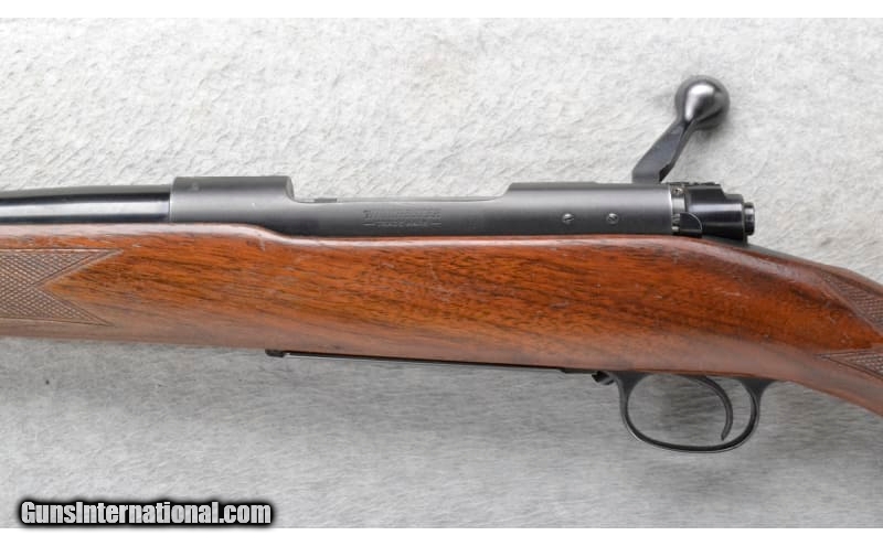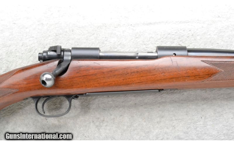 Description: This Winchester Model 70 is a right hand bolt action rifle in .300 Win. Mag. Cal. It has a 24 inch barrel. A hooded front blade sight, folding adjustable notch middle sight and is drilled and tapped. The butt stock is a checkered grip walnut pistol grip. The forearm is a checkered grip walnut. Pre 1964. .300 Winchester Magnum SOLD Curio/Relic: Yes Chambers: Internal magazine with a hinged floorplate. Metal Condition: Very Good. Wood Condition: Fair. Handling marks and a little finish wear. Bore Condition: Excellent. Barrels: 24 inch. Stock Dimensions: LOP 13 1/2 inches. Fore End: Checkered grip walnut. Butt Pad: Winchester red rubber recoil pad. Weight: 8 lb. 2 oz. Sights: Hooded front blade. Folding adjustable notch middle. Drilled and tapped. Item Location: Richfield, WI |