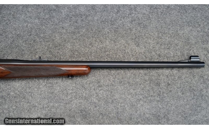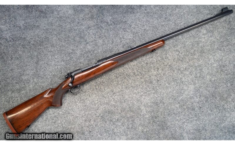 Description: For your consideration, a Winchester model 70 chambered in .375 H&H Magnum. Sighting consists of a hooded front and 2x folding rear leaves. This piece dates to 1950. .375 H&H Magnum SOLD Metal Condition: Excellent Wood Condition: Very Good+ Bore Condition: Excellent Barrels: 24 Triggers: Serrated Face Stock Dimensions: 13.5" LOP Fore End: Checkered Butt Pad: Rubber Weight: 8.5 lbs Sights: Iron Sights Item Location: Hamburg, PA |