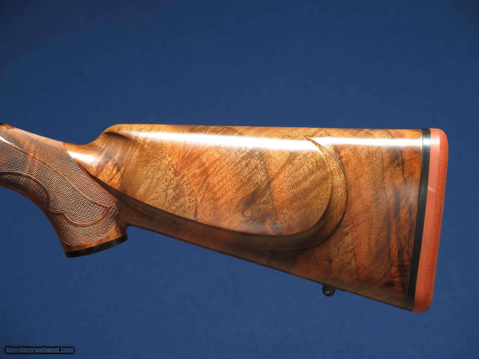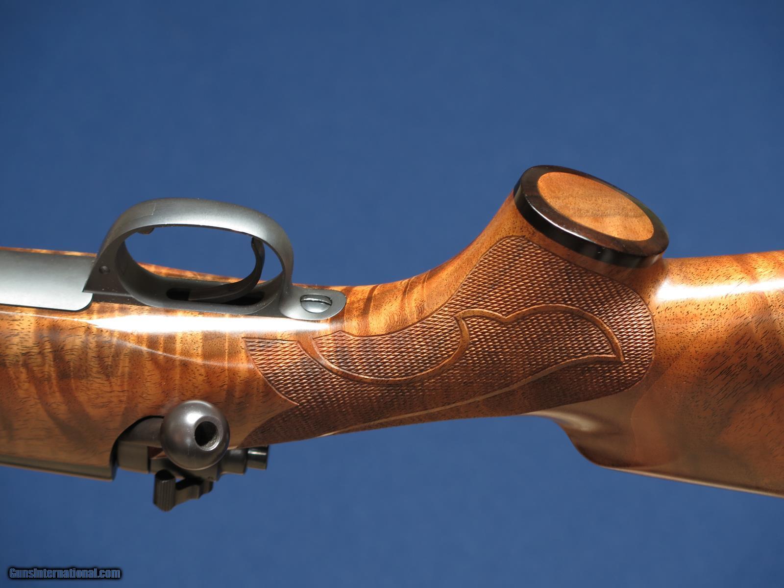 Description: Winchester 70 Custom Pre 64 220 Swift Varmint rifle. Beautiful custom stocked. Rosewood fore end and pistol grip cap. Kimber style swivels. Side cheek. Old English 3/4 pad. Trigger guard and floor plate replaced with inside trigger floor plate release. 98%. Excellent bore. SOLD |