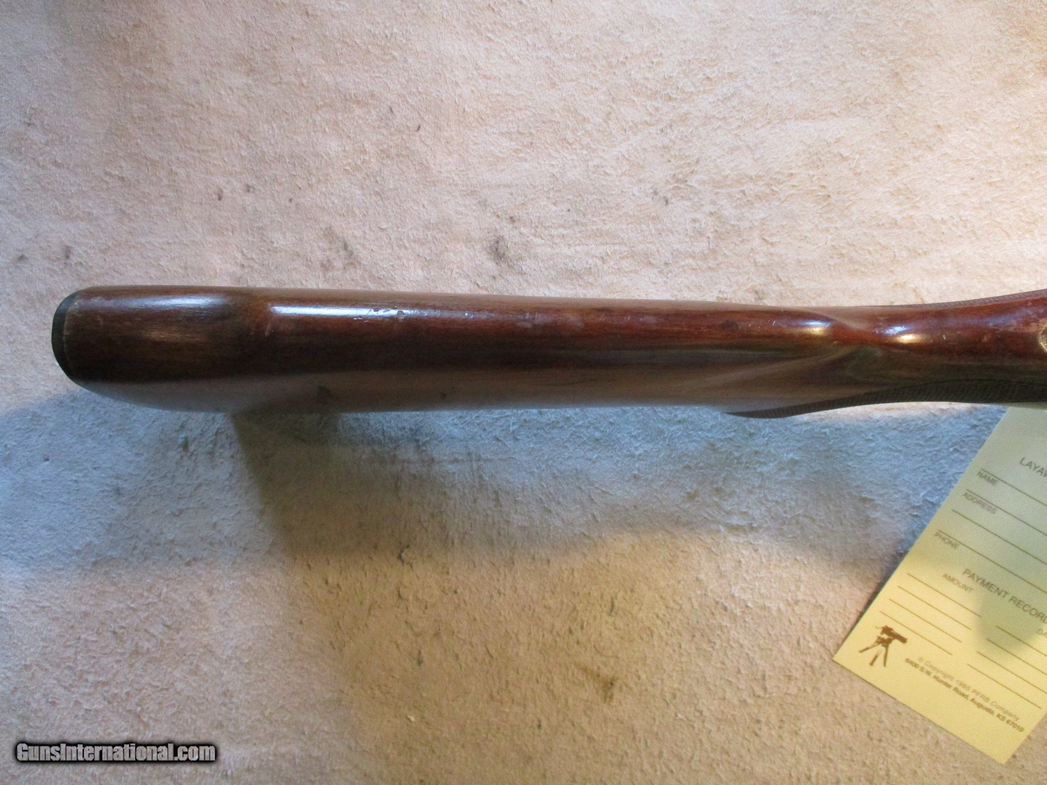 Description: Winchester model 70, pre 1964, made in 1959. SN is 4608xx. Factory finish on both wood and metal, clean all original gun. We will trade for silver and gold. We accept personal check, any certified funds, Venmo or Zelle. We can also take your credit card, +3%. has now started collecting tax for states that mandate it, if applicable they will add it to your total. Email me if you would like these pictures sent to you, they will come through bigger and better than on the listing page here. We do offer Layaway. Our standard terms are 25% down, 90 days. Initial deposit is not refundable. Email me with any questions. Please check your local laws to confirm it is legal to own in your state! Buyer pays $25 shipping and insurance to your FFL in the lower 48. AK, HI or PR is extra. I will ship to California, NO PROBLEM! All my guns come with a non-firing, 3 day unconditional return privilege, from the day UPS delivers to your dealer. Buyer pays shipping both ways if the gun comes back. We can add a new hard case by PLANO for secure shipping for $25 if the buyer wishes (highly recommended, cheap insurance, really helps keep the UPS monster from eating my guns!). I am a licensed FFL, and will include a copy of my FFL with the gun for your dealer’s records. I will ship to a C&R if the gun is eligible. I will ship to California, but you need to confirm the gun is legal where you are, California or other. WE BUY AND CONSIGN GUNS AND GUN COLLECTIONS! We will travel to pick up collections! I am always looking for good clean, old original Winchesters to buy, consign, or trade, especially Pre '64's model 70's and model 54's. WE ALSO TRADE FOR CLASSIC CARS AND TRUCKS! We also trade for gold and silver. SOLD Rifle Caliber: .30-06 Springfield Manufacturer: Winchester Model: 70 Featherweight Barrel Length: 22 Condition: Used |