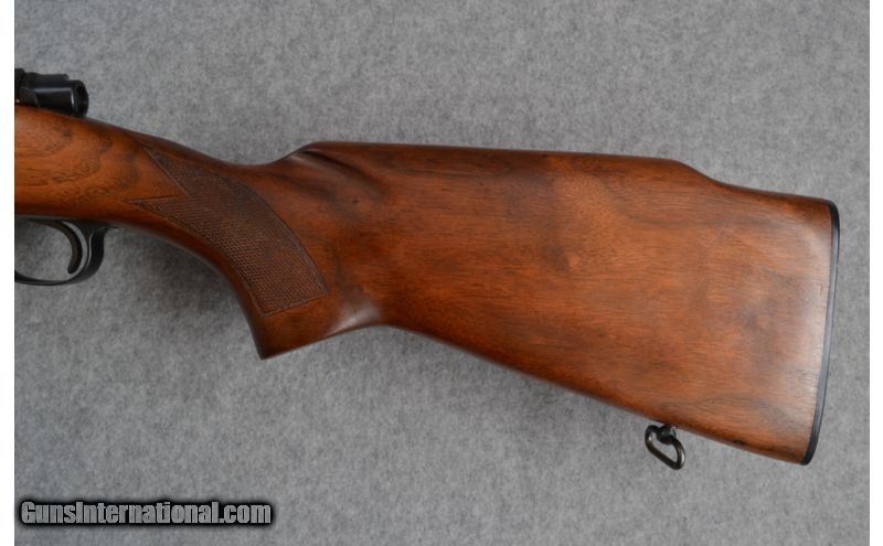 Description: SOLD Manufacturer: S/N 529852 Caliber Info: .30-06 SPRG Metal Condition: Good condition for age with normal use and handling marks present. Some bluing wear and minor scratches present. Wood Condition: Good condition with some light scratches and handling marks noted. Bore Condition: Good condition for age, good rifling. Bore is generally bright. Barrels: 22 Inches. Triggers: LOP - 13 3/4 Inches. Stock: Figured checkered walnut. Butt Pad: Black plastic butt plate. Weight: 6 Lbs 14 Oz as shown. Sights: Fixed front / rear adjustable folding leaf. Item Location: Billings, MT |