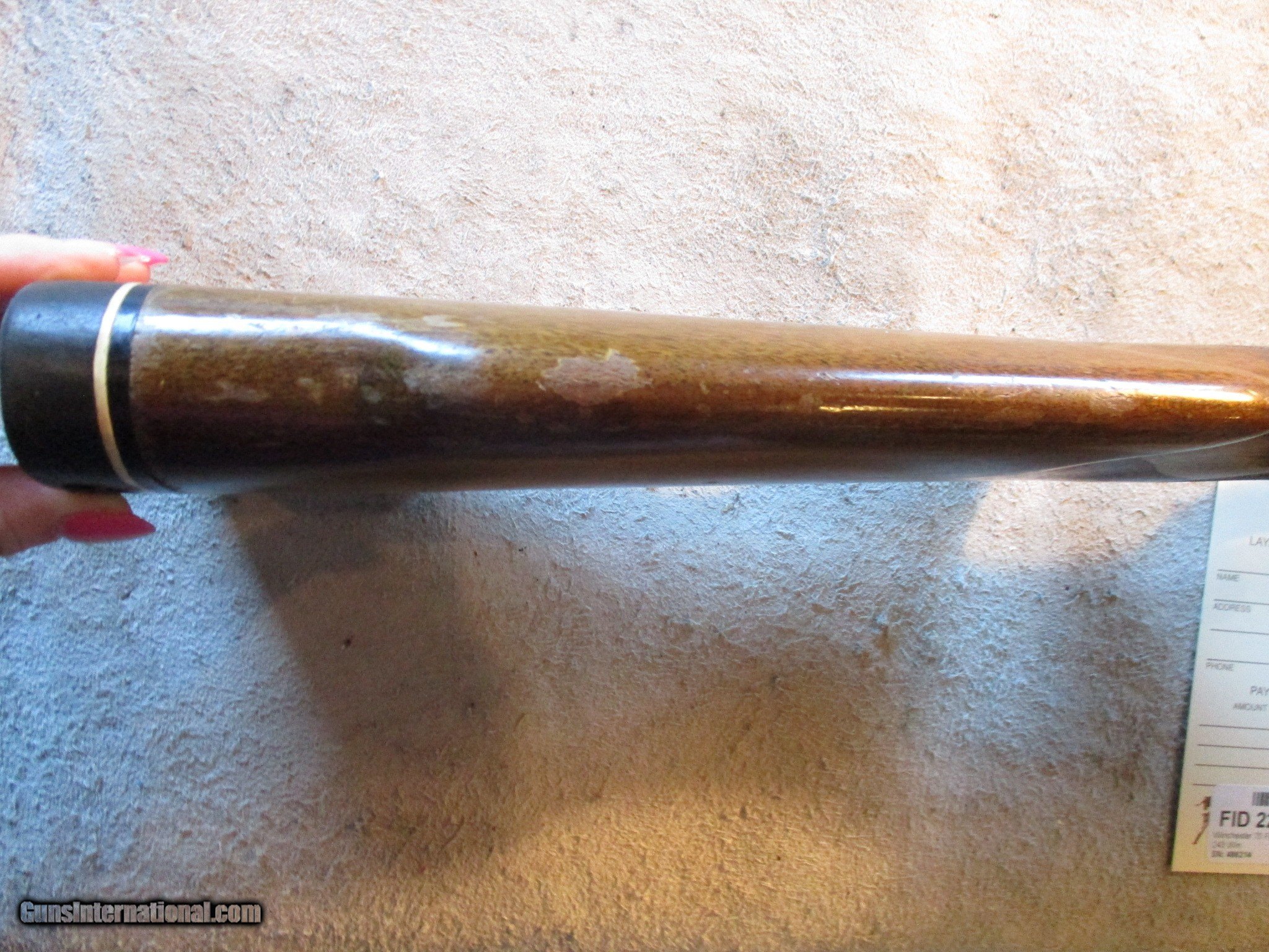 Description: Winchester Model 70 Featherweight, pre 1964, made in 1960. SN is 4862xx. Factory finihsh on both wood and metal. LOP is 13 3/4". Perfect bore, perfect working order, no rust, no cracks. Nice classic shooter! We will trade for silver and gold. We accept personal check, any certified funds, Venmo or Zelle. We can also take your credit card, +3%. Email me if you would like these pictures sent to you, they will come through bigger and better than on the listing page here. We do offer Layaway. Our standard terms are 25% down, 90 days. Initial deposit is not refundable. Email me with any questions. Please check your local laws to confirm it is legal to own in your state! Buyer pays $60 shipping and insurance in a brand new PLANO hard case to your FFL in the lower 48. AK, HI or PR is extra. I will ship to California, as long as it is legal, NO PROBLEM! All my guns come with a non-firing, 3 day unconditional return privilege, from the day UPS delivers to your dealer. Buyer pays shipping both ways if the gun comes back. Please make sure to make it to your FFL to inspect within the 3 days. I am a licensed FFL, and will include a copy of my FFL with the gun for your dealer’s records. I will ship to a C&R if the gun is eligible. I will ship to California, but you need to confirm the gun is legal where you are, California or other. WE BUY AND CONSIGN GUNS AND GUN COLLECTIONS! We will travel to pick up collections! I am always looking for good clean, old original Winchesters to buy, consign, or trade, especially Pre '64's model 70's and model 54's. WE ALSO TRADE FOR CLASSIC CARS AND TRUCKS! We also trade for gold and silver. SOLD Rifle Caliber: .243 Winchester Manufacturer: Winchester Model: 70 Featherweight Barrel Length: 22 Condition: Used |