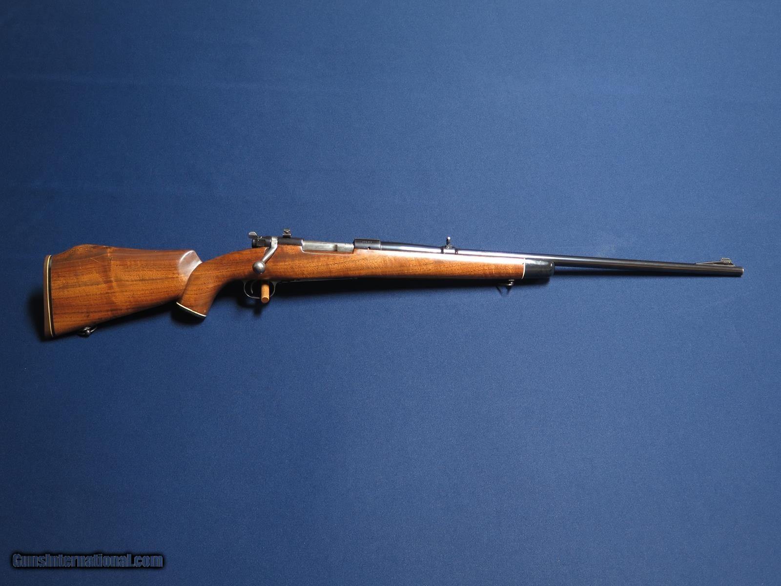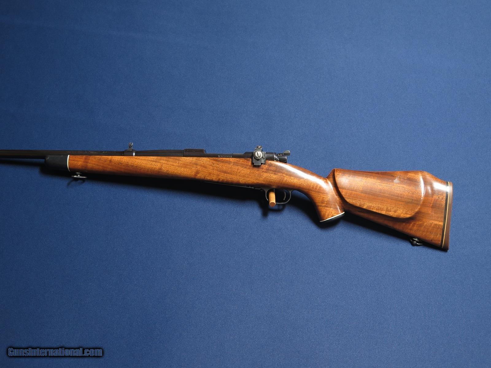 Description: Winchester 70 pre 64 257 Roberts. SN 27,1XX. Clover leaf top tang. Redfield peep. Custom stock. Extra hole in rear bridge. Metal reblued. Very nice bore. SOLD |