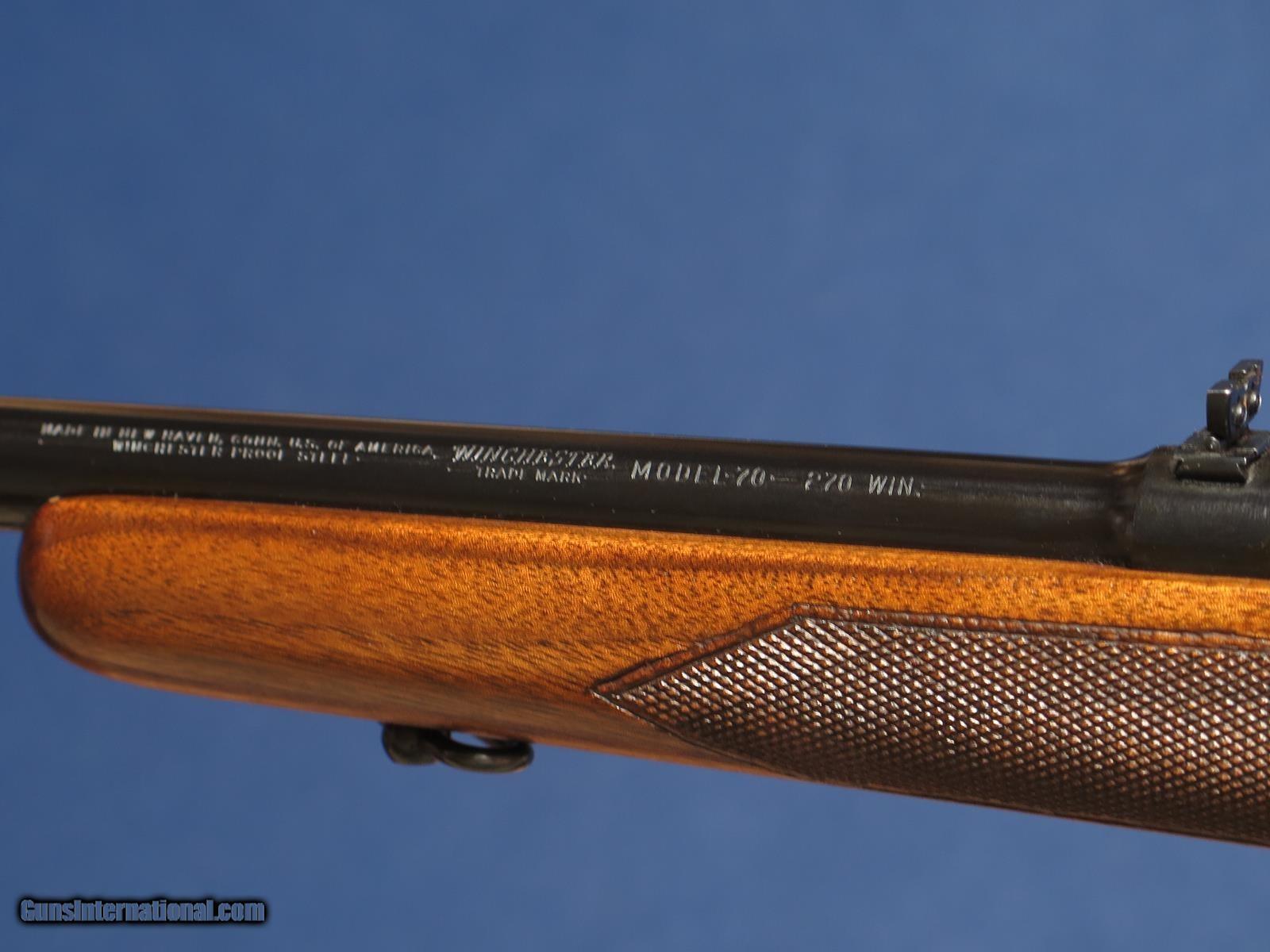 Description: Winchester 70 standard 270 Win. Pre 64 1957 mfg. 24 inch barrel. High comb. Steel butt plate. Original finish. 96% condition. Excellent bore. Has plug hole repair under pistol grip. SOLD Curio/Relic: Yes |