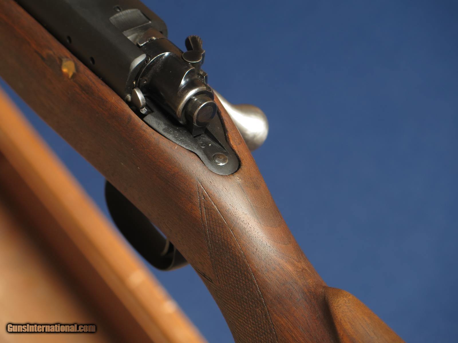 Description: Winchester 70 30-06. 1948 mfg. 21 inch barrel. Metal has been cerakoted. Varnish stripped from wood. Leupold scope base and rings. Pachmayr recoil pad. Rear sight removed. Lyman front sight. Excellent bore. SOLD Curio/Relic: Yes Rifle Caliber: .30-06 Springfield |