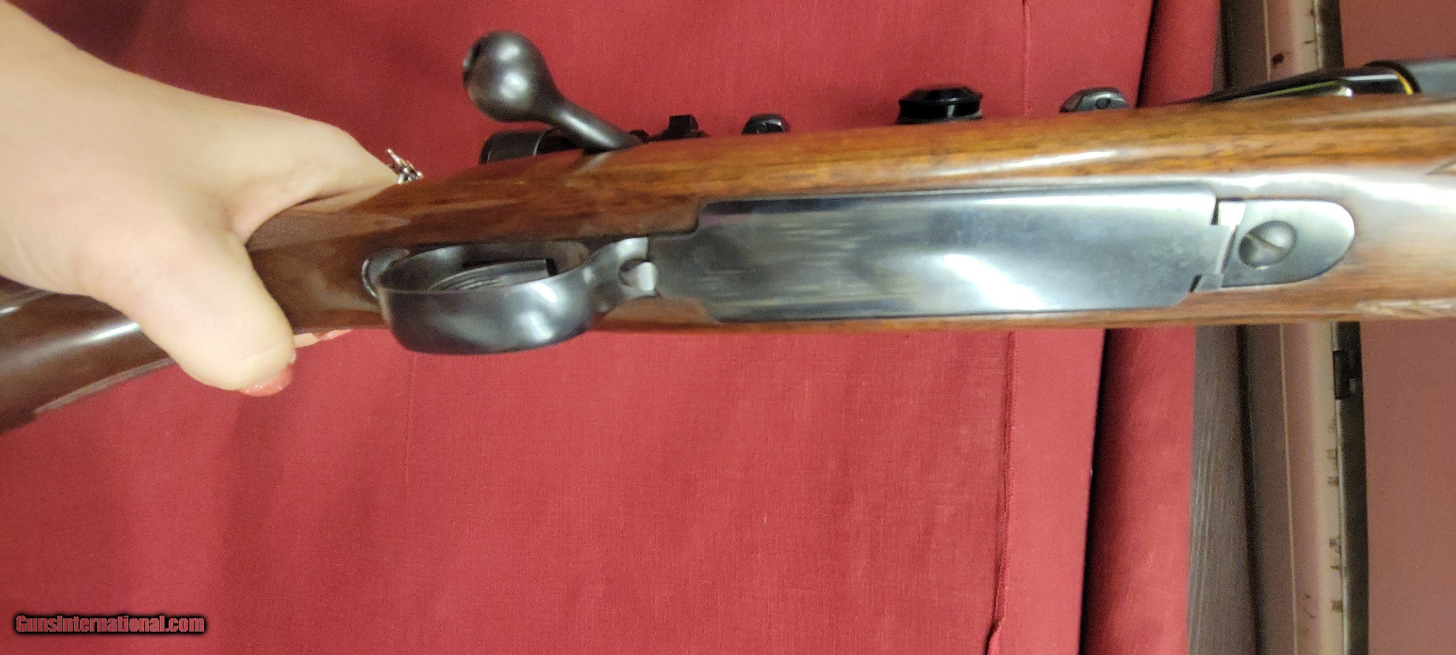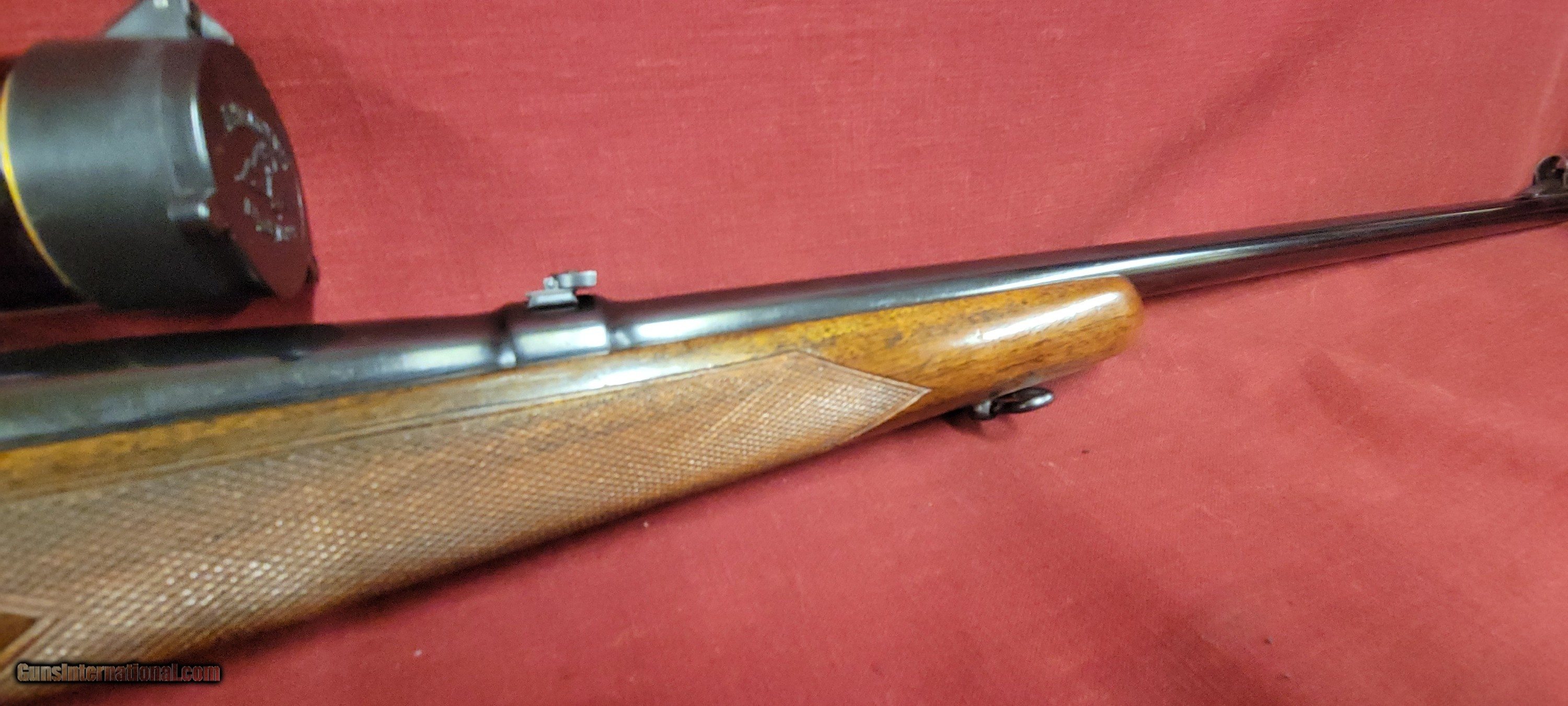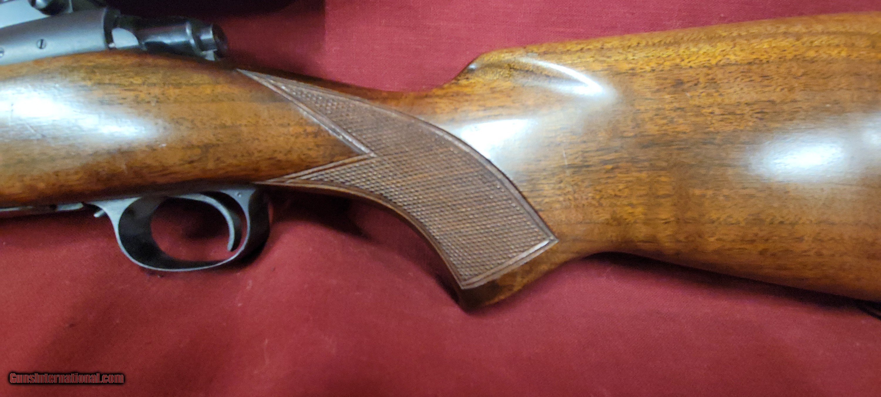 Description: Up for sale is this lovely Pre-64 Winchester 70 338. Mag -It has a Leupold Vary-XIII 2.5X3.8 scope -25" BBL -Hold four rounds -All original, Checkered American Walnut Stock. -Includes Factory swing swivels, original iron sight, and front sight hood -Factory Red Winchester Recoil Pad SOLD Rifle Caliber: .338 Winchester Magnum Manufacturer: Winchester Model: 70 Bore: bright Condition: 95% Wood Condition: 95% Manufacture Date: 1957 |