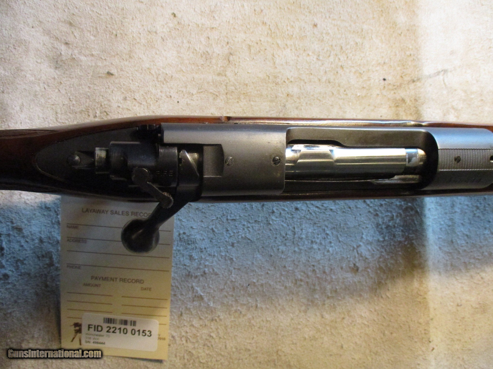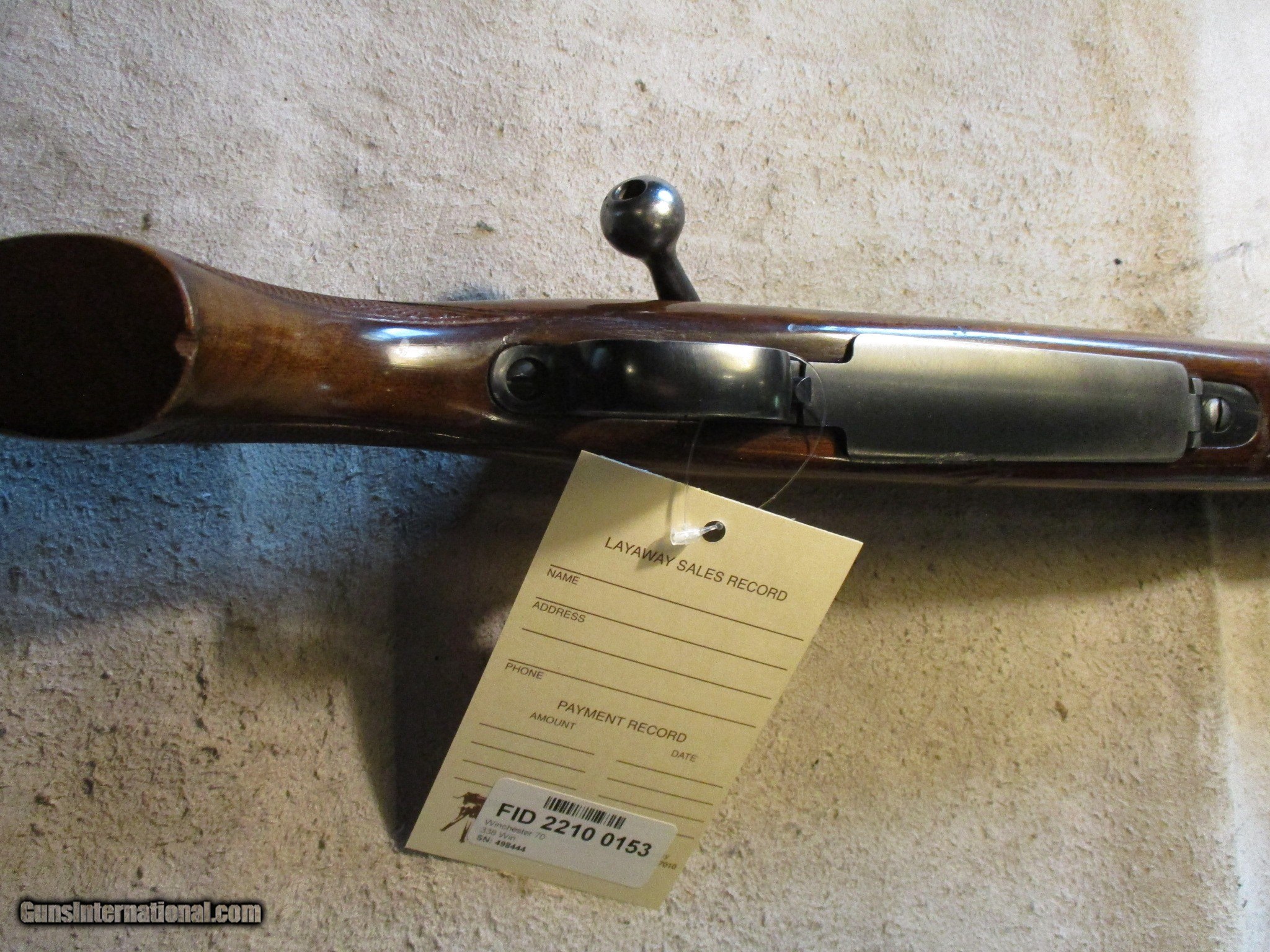 Description: Winchester 70 Alaskan, 338 Win mag. SN is 4984xx, made in 1960. Factory finish on both wood and metal, factory winchester recoil pad (not a REPO). Perfect bore, perfect working order, bolt is numbered to the gun. Nice clean classic rifle! Factory open sights, factory drilled and tapped for a modern scope. We will trade for silver and gold. We accept personal check, any certified funds, Venmo or Zelle. We can also take your credit card, +3%. Email me if you would like these pictures sent to you, they will come through bigger and better than on the listing page here. We do offer Layaway. Our standard terms are 25% down, 90 days. Initial deposit is not refundable. Email me with any questions. Please check your local laws to confirm it is legal to own in your state! Buyer pays $55 shipping and insurance in a brand new PLANO hard case to your FFL in the lower 48. AK, HI or PR is extra. I will ship to California, as long as it is legal, NO PROBLEM! All my guns come with a non-firing, 3 day unconditional return privilege, from the day UPS delivers to your dealer. Buyer pays shipping both ways if the gun comes I am a licensed FFL, and will include a copy of my FFL with the gun for your dealer’s records. I will ship to a C&R if the gun is eligible. I will ship to California, but you need to confirm the gun is legal where you are, California or other. WE BUY AND CONSIGN GUNS AND GUN COLLECTIONS! We will travel to pick up collections! I am always looking for good clean, old original Winchesters to buy, consign, or trade, especially Pre '64's model 70's and model 54's. WE ALSO TRADE FOR CLASSIC CARS AND TRUCKS! We also trade for gold and silver. SOLD Rifle Caliber: .338 Winchester Magnum Manufacturer: Winchester Model: 70 Barrel Length: 25 Condition: Used |