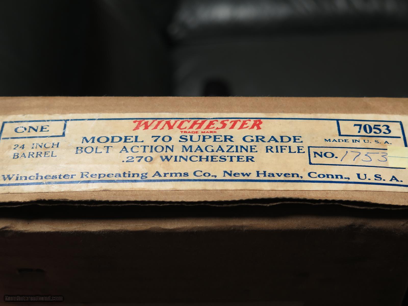 Description: Winchester 70 Pre 64 Supergrade 270. SN 175,XXX. 99% in original box with booklet and hanging tag. SOLD |